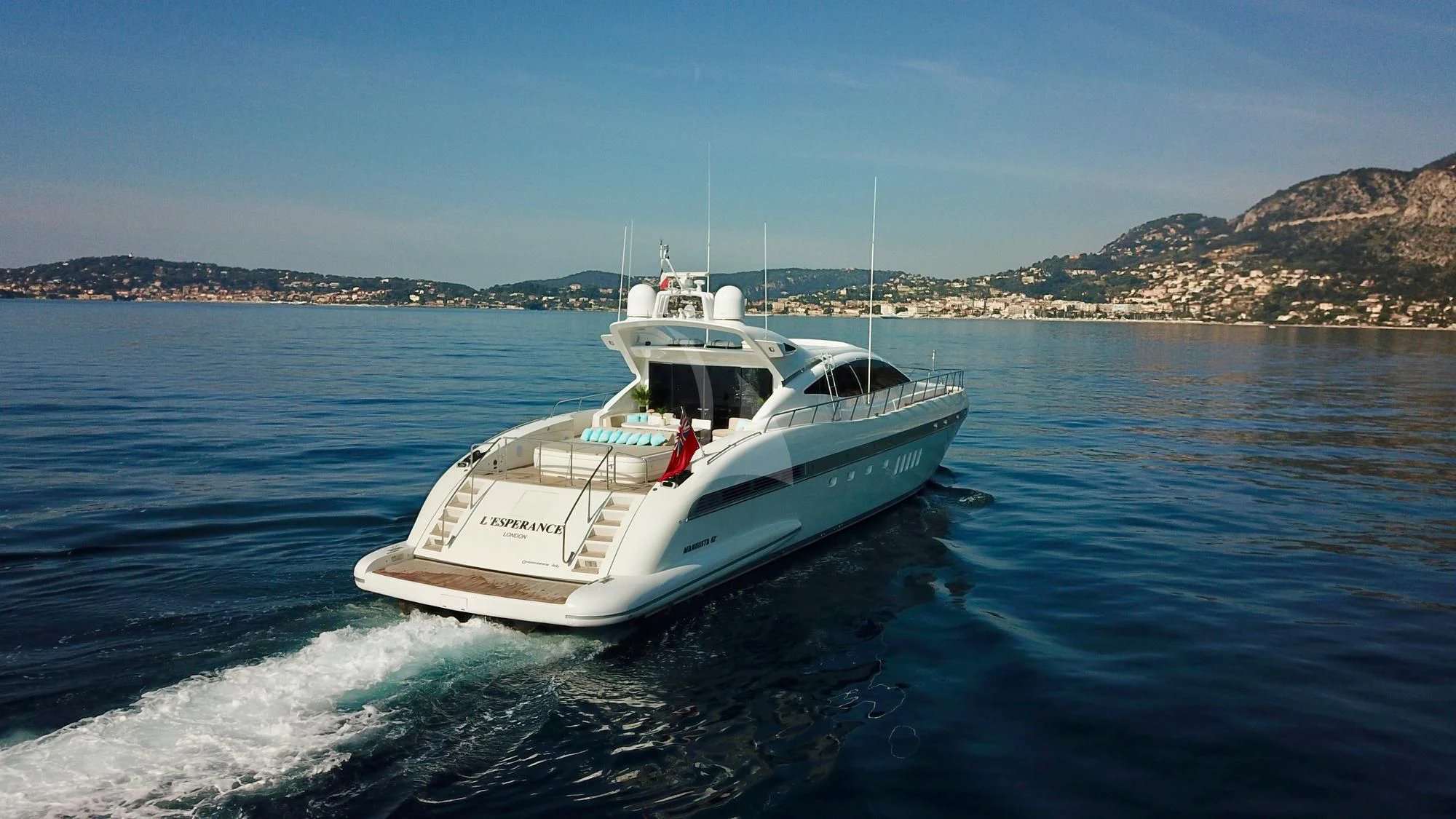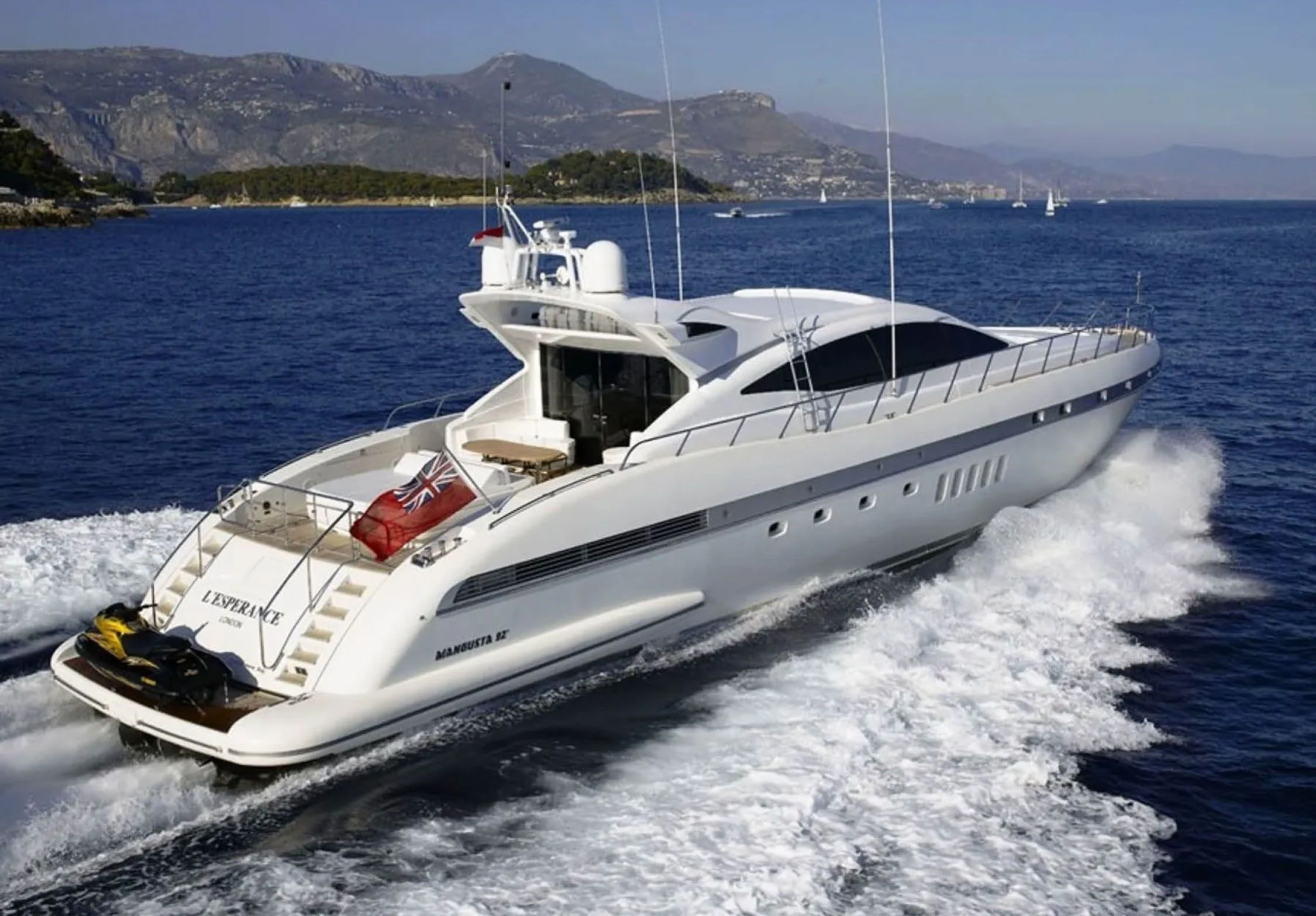 L'ESPERANCE is a distinguished example of the Mangusta Open 92, built by Overmarine and designed by Stefano Righini, embodying the unmistakable spirit of Italian performance yachting. Delivered in 2004 and extensively refitted in 2021, she combines sleek, dynamic exterior lines with impressive speed, refined interiors, and a proven pedigree within one of Overmarine’s most successful series. Measuring 28.27 metres in length, she offers a compelling balance of open-style living and high-performance capability.