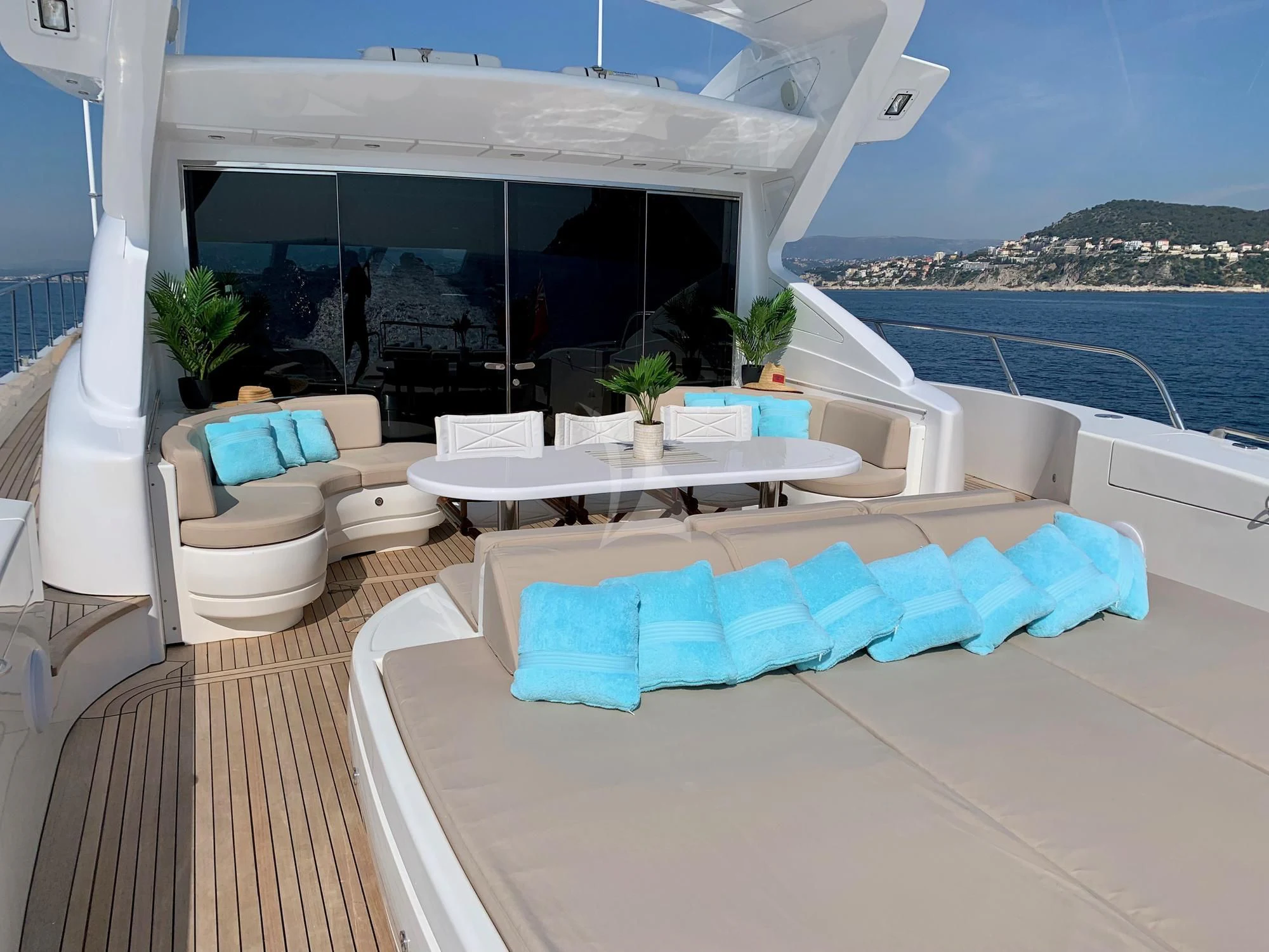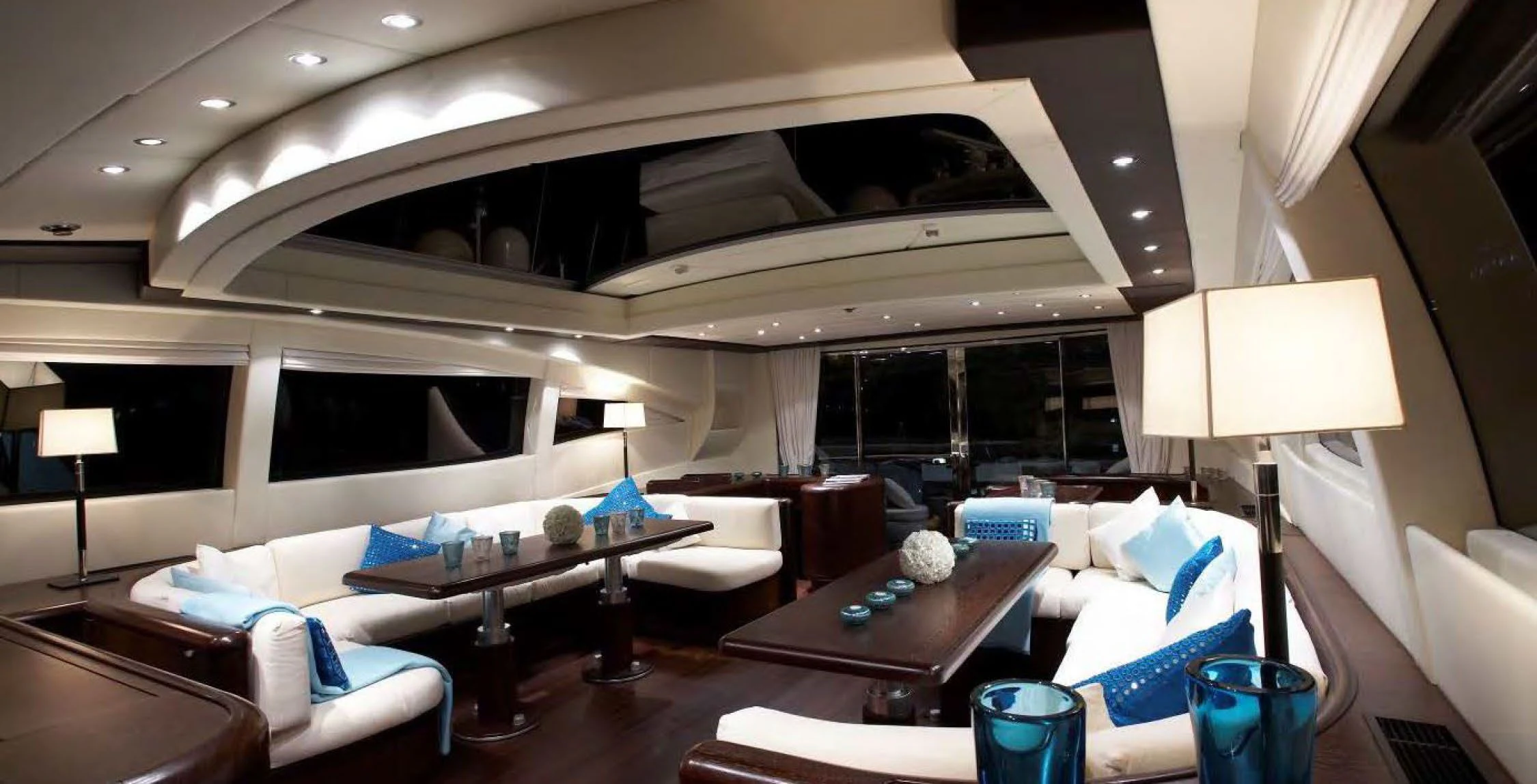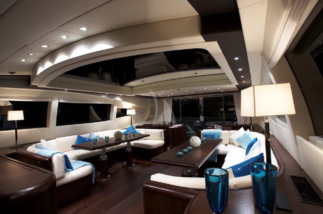 The interior presents a contemporary yet welcoming atmosphere, thoughtfully arranged to maximise comfort and usability. Large windows flood the salon with natural light, while carefully selected materials and finishes create an elegant environment for relaxing or entertaining. The layout is efficient and intuitive, ensuring smooth circulation throughout the main deck and guest areas.