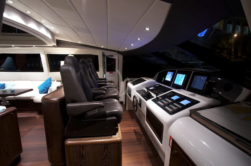 Powered by twin MTU 16V2000 M91 engines, the yacht delivers impressive performance with a cruising speed of approximately 27 knots and a top speed of around 34 knots. Waterjet propulsion ensures responsive handling and a shallow draft, allowing access to anchorages that may be unavailable to deeper-drafted vessels. With a range of approximately 380 nautical miles at cruising speed, she is ideally suited for fast island hopping and coastal cruising.