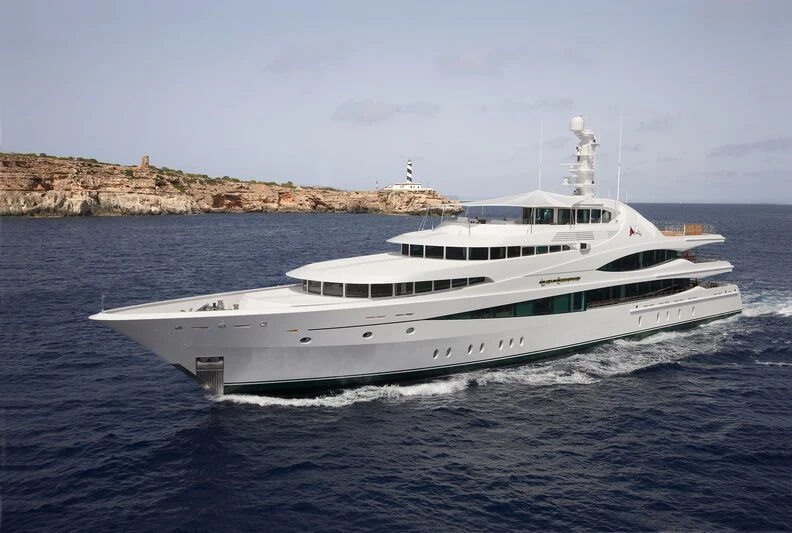 Welcome aboard the majestic LADY CHRISTINE, a testament to opulence and grandeur, crafted by the esteemed Dutch shipbuilder Feadship. Unveiled in 2010, this custom model superyacht exudes an air of timeless elegance that captivates every eye. With a gross tonnage of 1608 and a steel hull that stretches to an impressive length overall (LOA) of 68 meters or 223 feet, LADY CHRISTINE stands as a magnificent behemoth on water. The yacht's beam measures at an expansive 12.5 meters or approximately 39 feet and five inches, ensuring ample space for luxury living and entertainment.