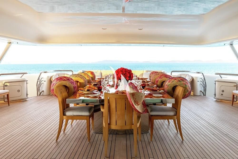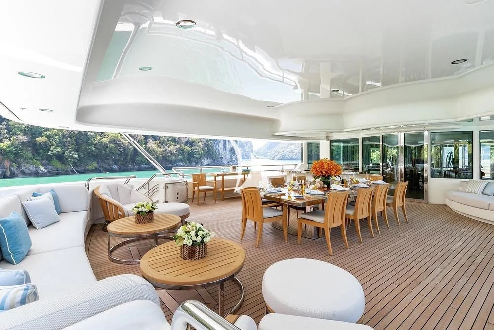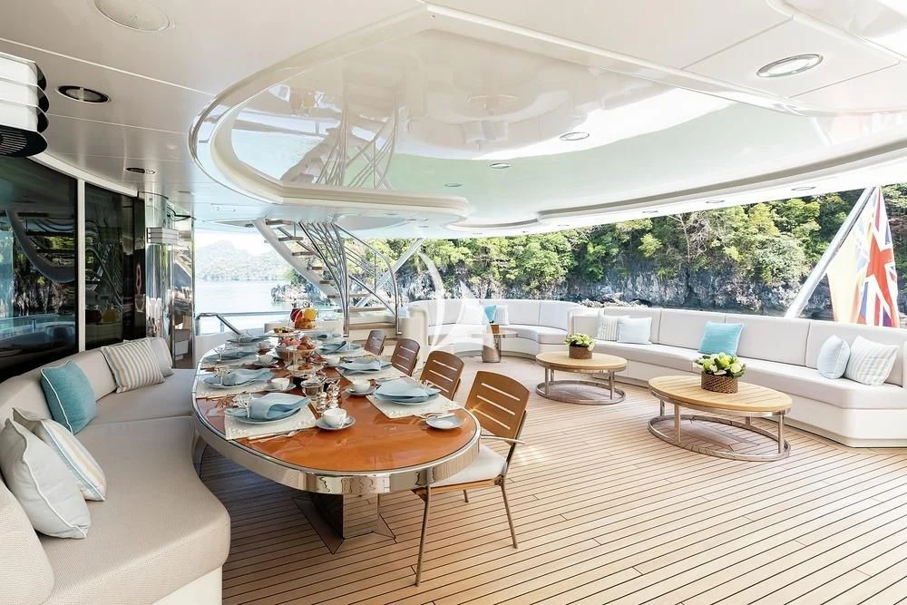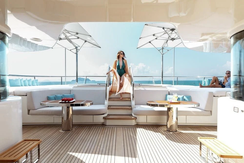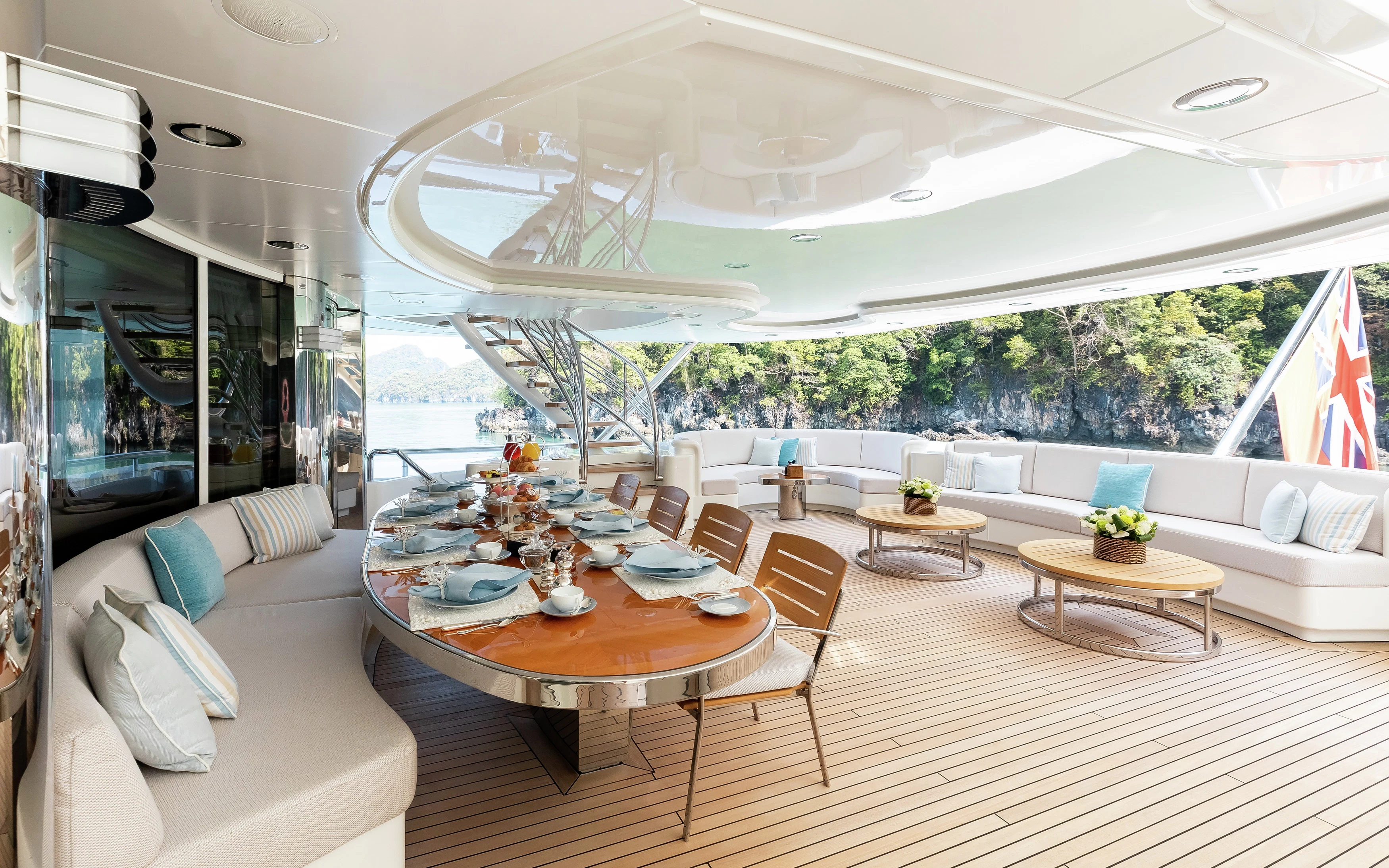 FELIX's exterior design is as commanding as it is elegant. The broad sundecks offer plenty of room for sunbathing or hosting alfresco dinners under the stars. One cannot overlook her remarkable beach club, which provides direct access to the sea and houses an array of water toys for adventurous guests to indulge in. The crowning glory of her exterior spaces has to be the Jacuzzi, where one can unwind while taking in panoramic ocean views.