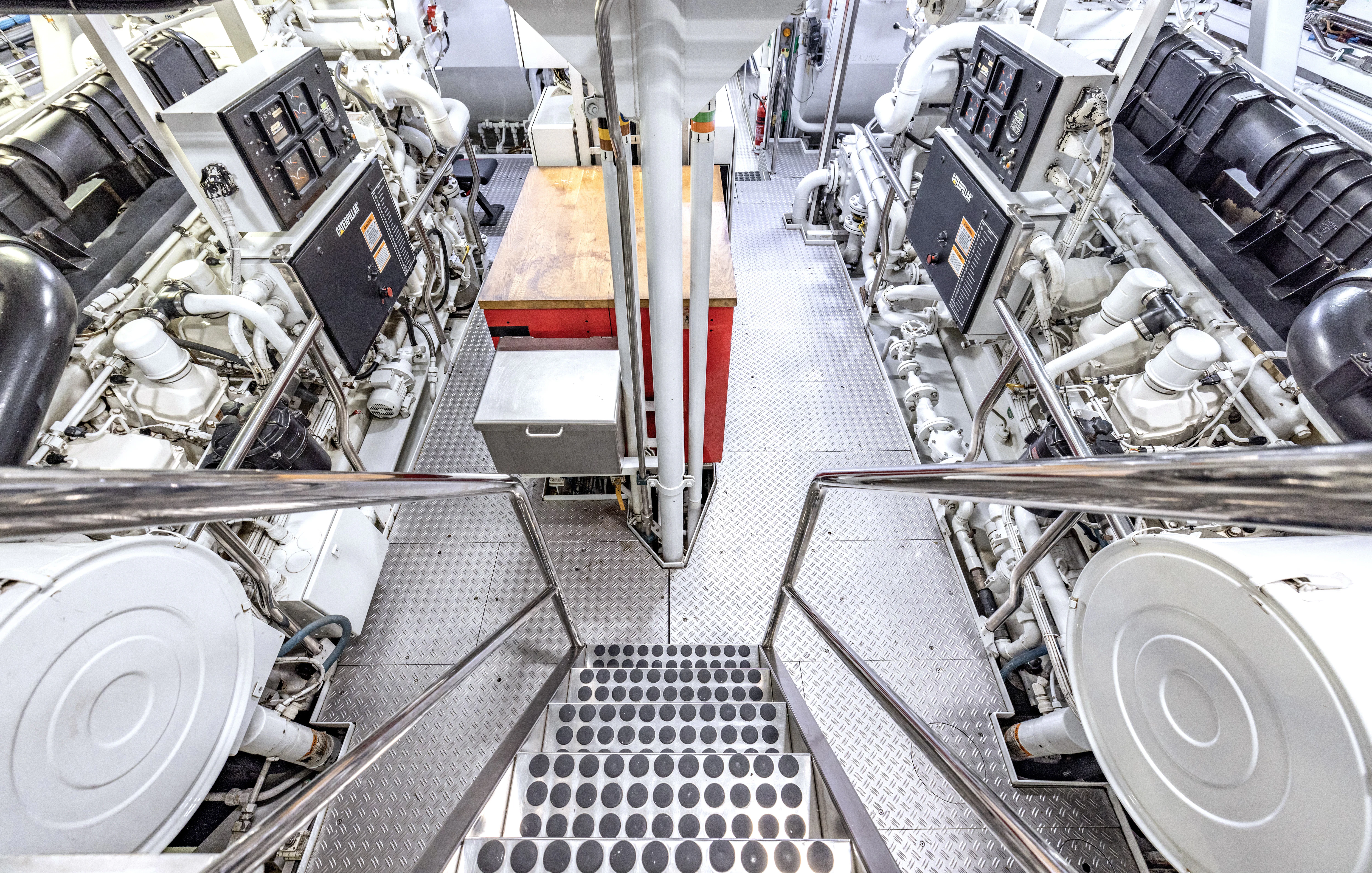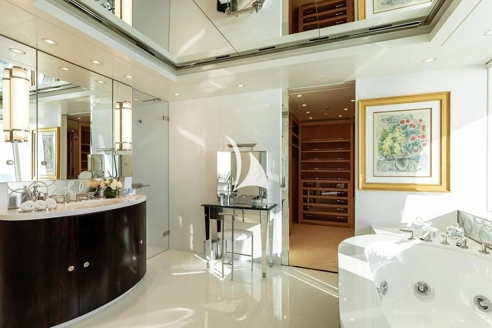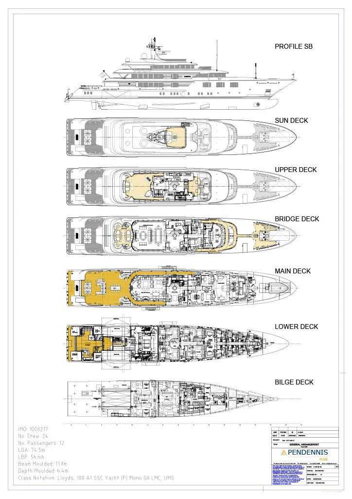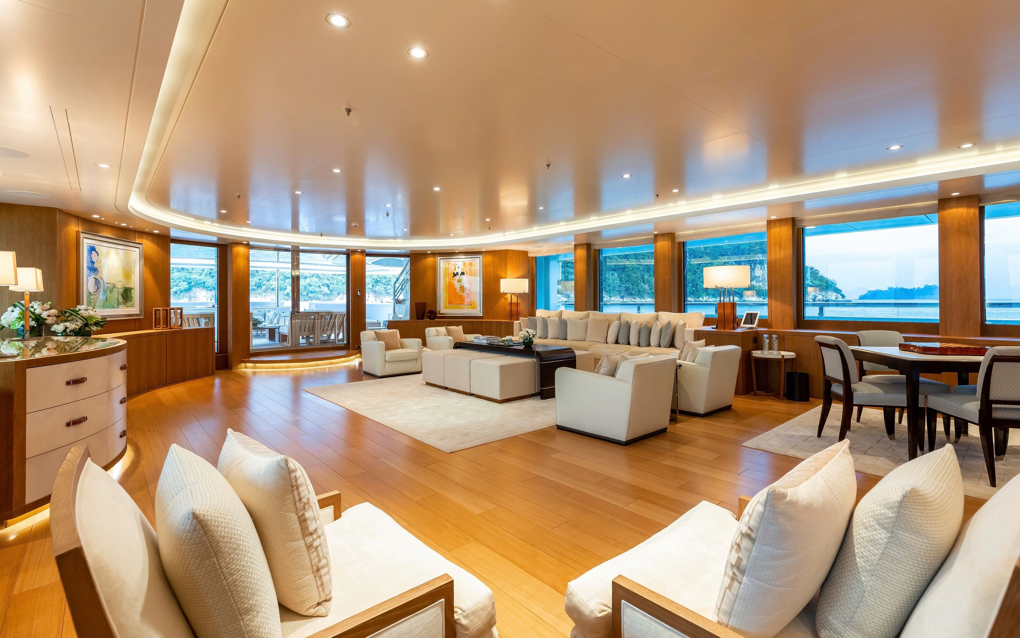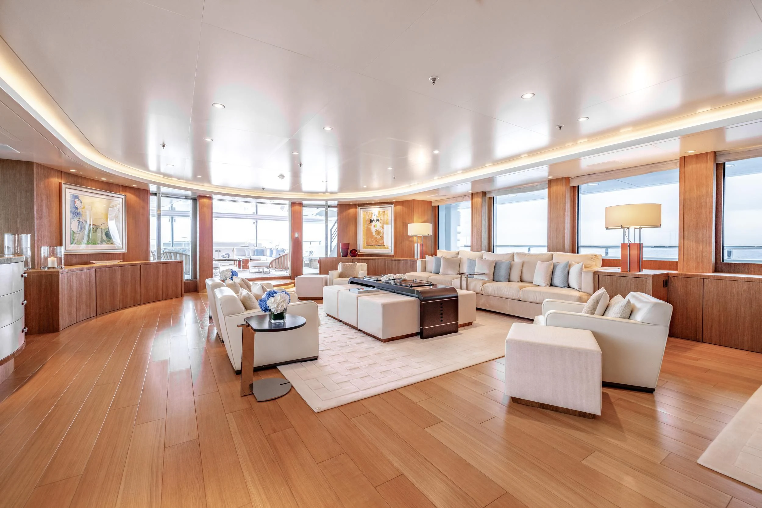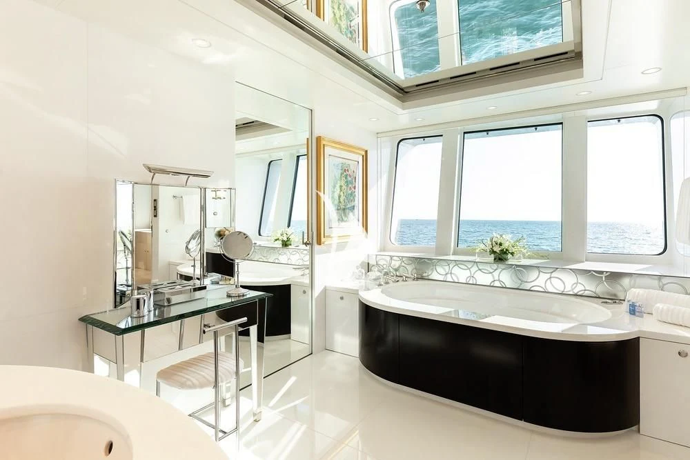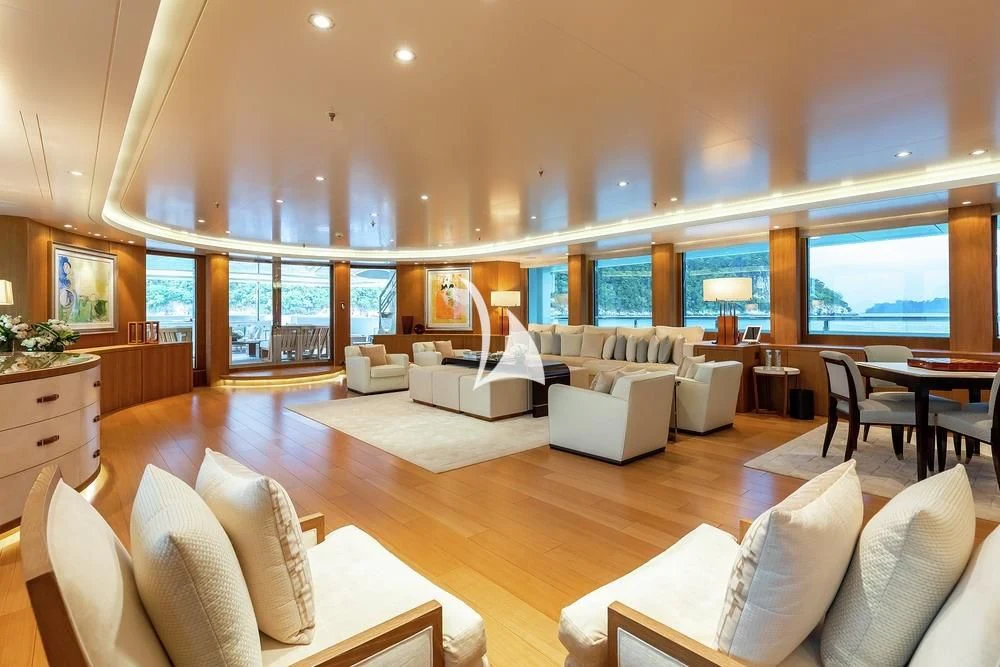 Powering this floating palace are twin Caterpillar 3516B DI-TA HD engines delivering combined horsepower of 4748 hp /3540 kW enabling her to cruise effortlessly at speeds up to 14 knots with top speeds reaching up to 17.4 knots.