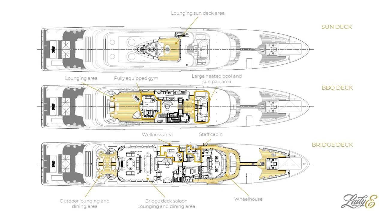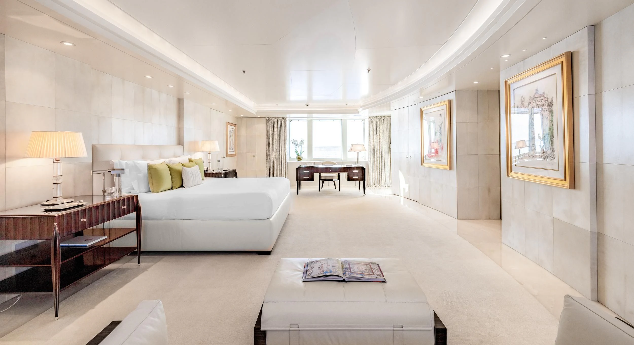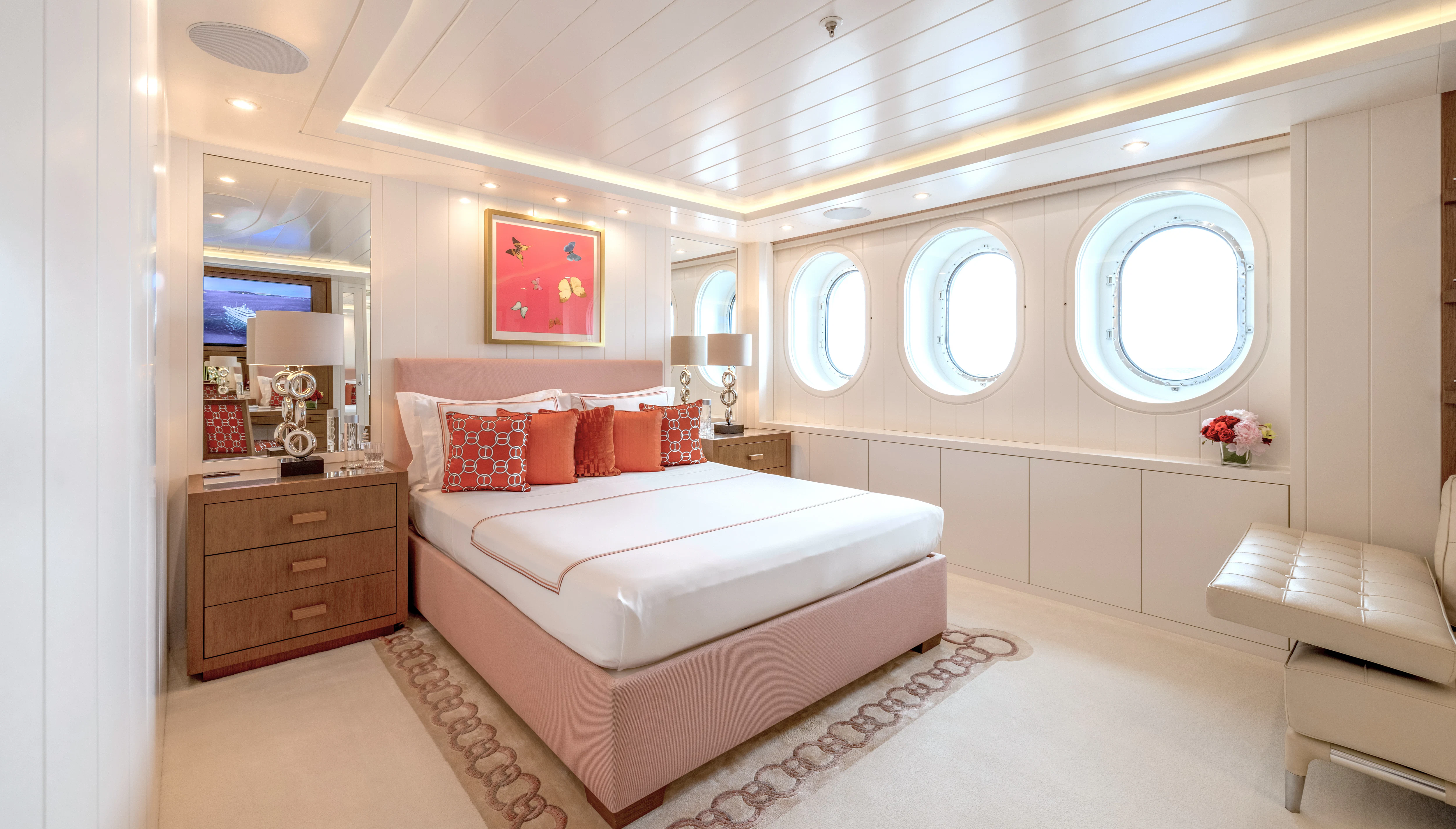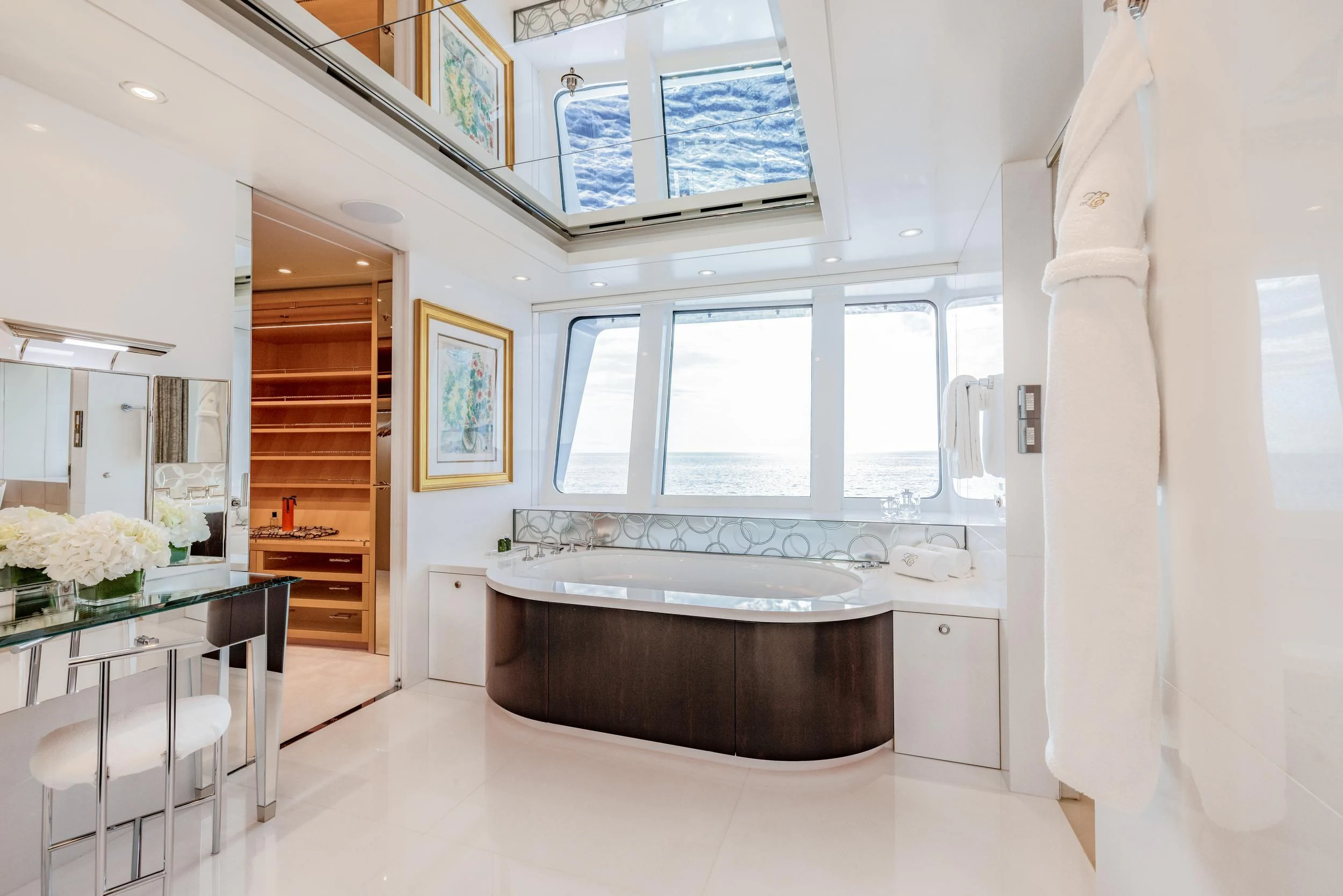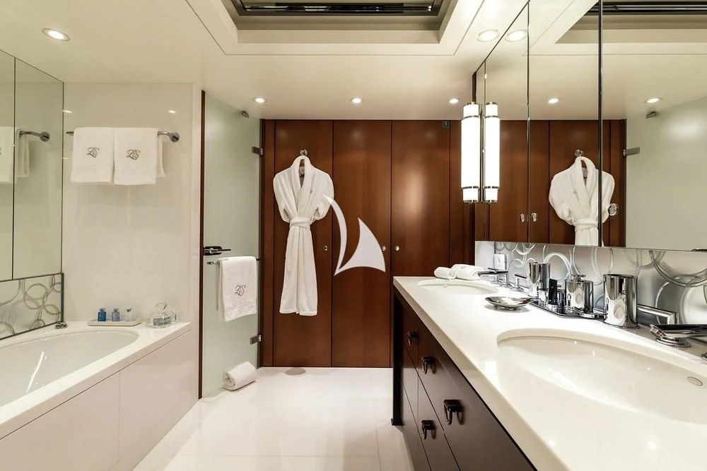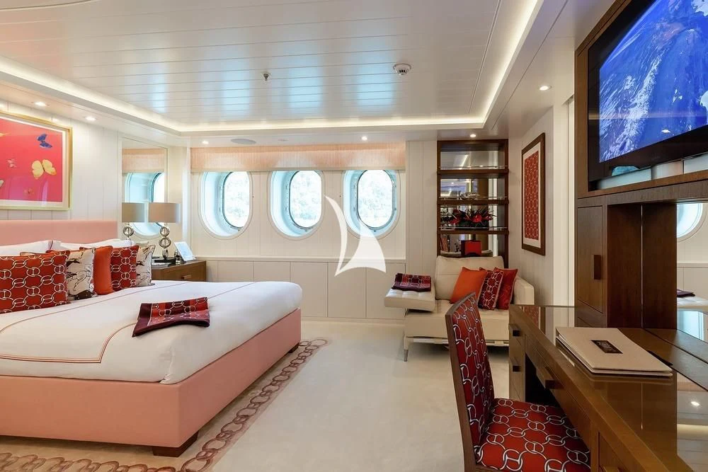 Powering this floating palace are twin Caterpillar 3516B DI-TA HD engines delivering combined horsepower of 4748 hp /3540 kW enabling her to cruise effortlessly at speeds up to 14 knots with top speeds reaching up to 17.4 knots.