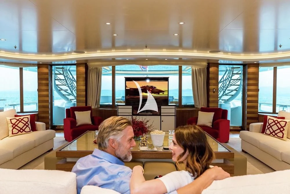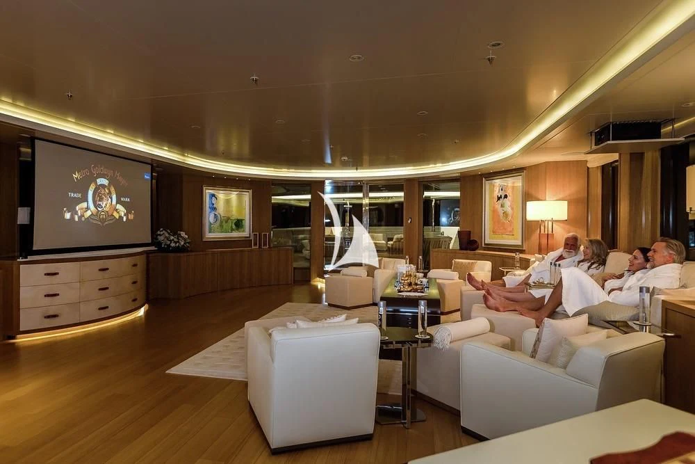 The main salon on FELIX serves as a social hub where guests can relax or entertain. With plush seating arrangements set around a state-of-the-art entertainment system complete with Kaleidescape movie server, it's perfect for cozy movie nights or cocktail parties alike. For those seeking wellness onboard, there's no shortage of options – from a fully-equipped gymnasium replete with modern fitness equipment to a soothing steam room and sauna where one can detoxify after an active day out at sea.