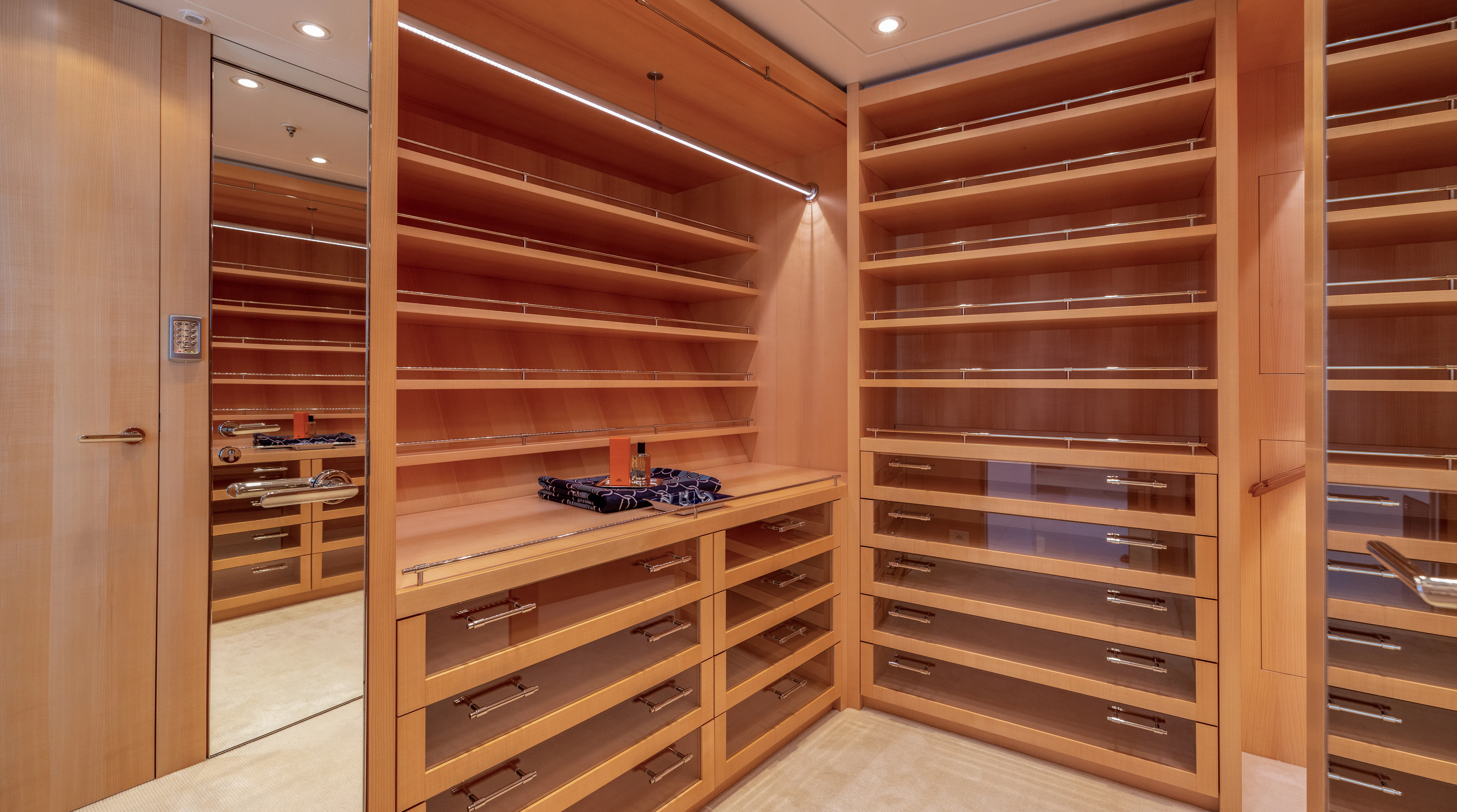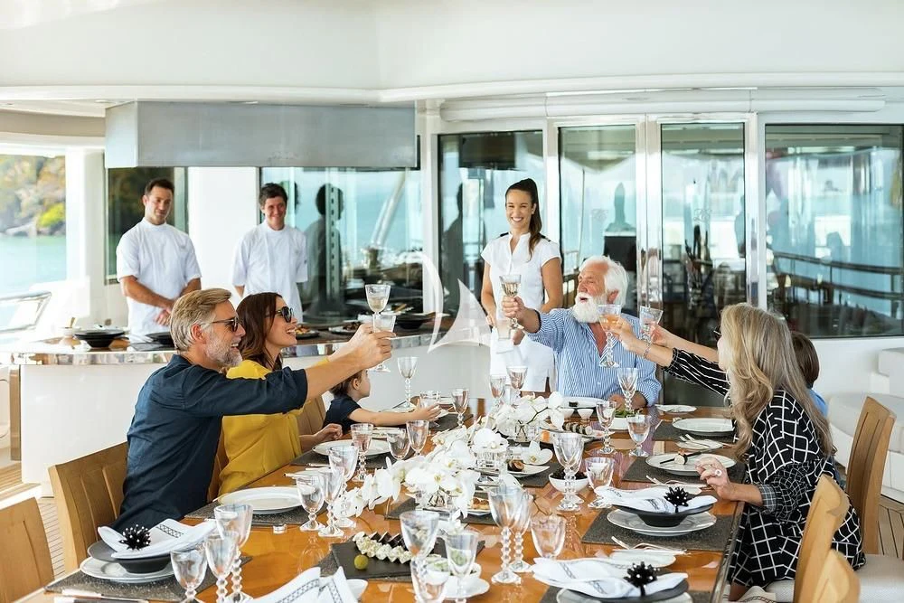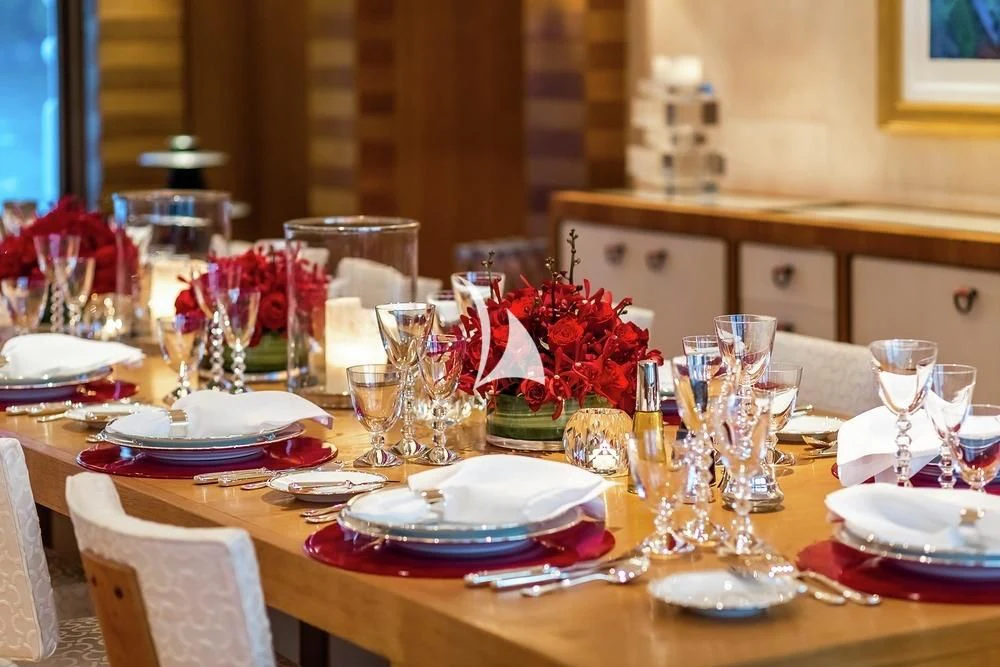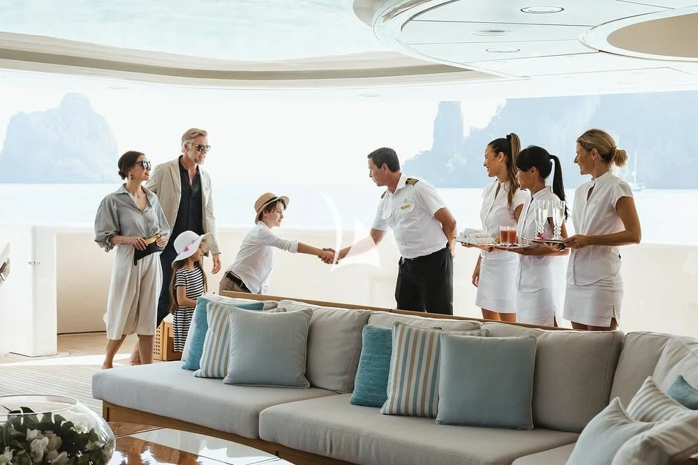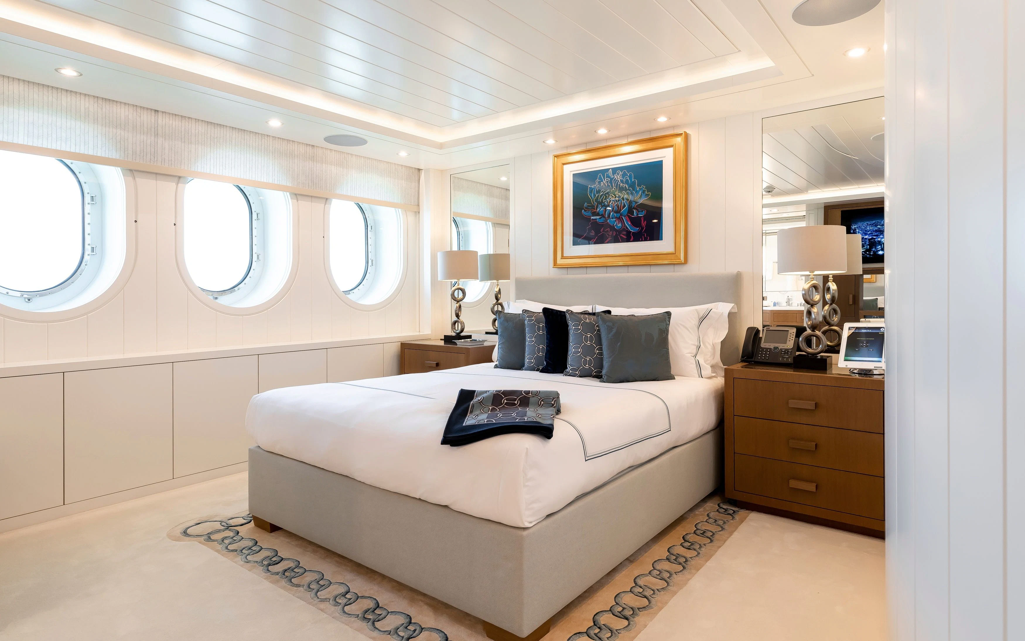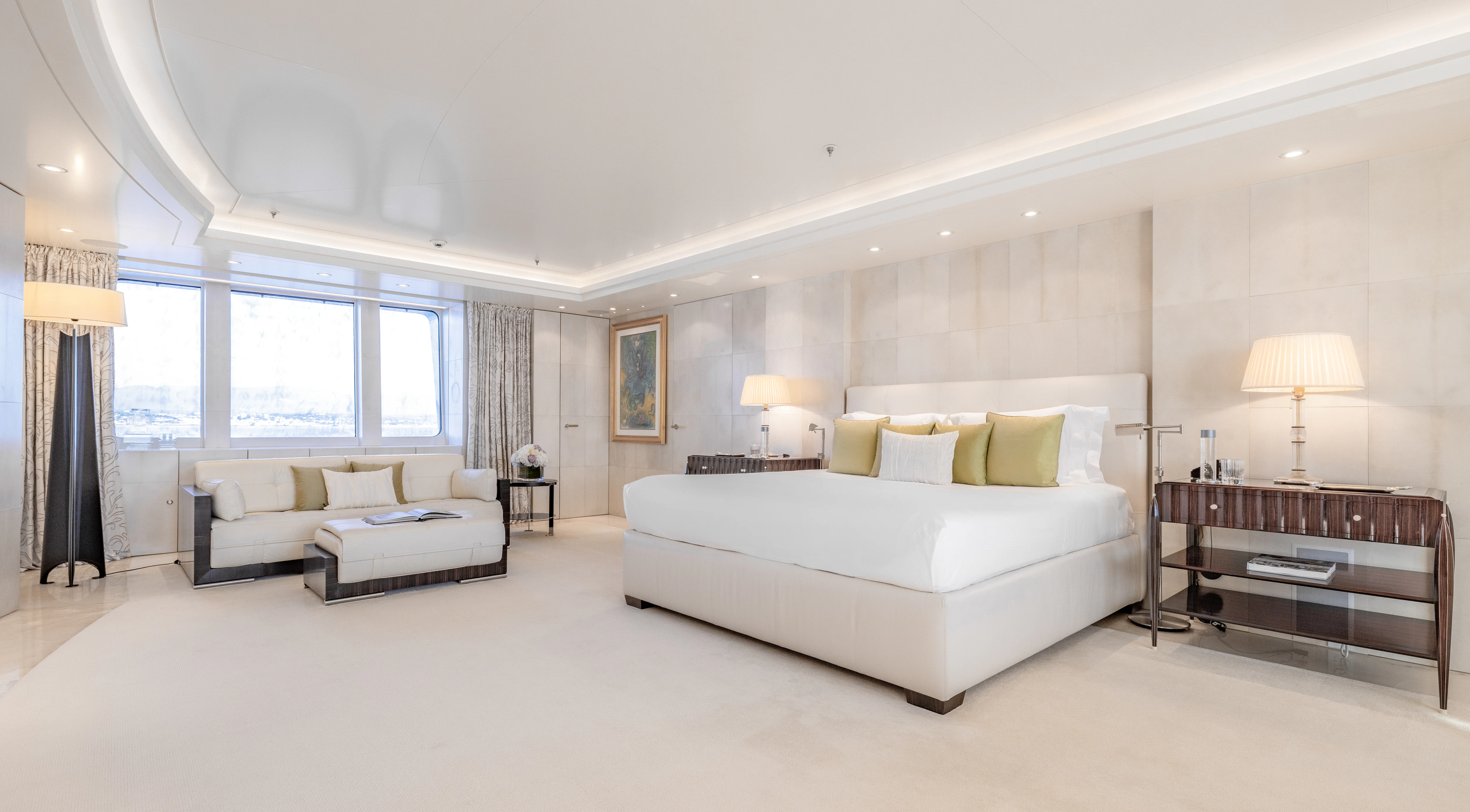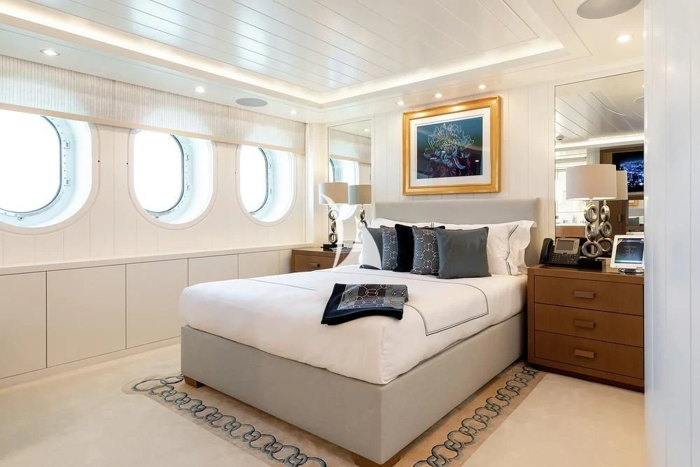Stepping inside FELIX reveals an interior that exudes sophistication and comfort. Capable of accommodating up to thirteen guests across six luxurious cabins, she ensures every journey is steeped in unparalleled comfort and style. Each stateroom boasts its own unique design aesthetic but all share a common thread – they are spacious, elegantly appointed with top-notch furnishings, and bathed in natural light thanks to large windows that also offer splendid sea views.