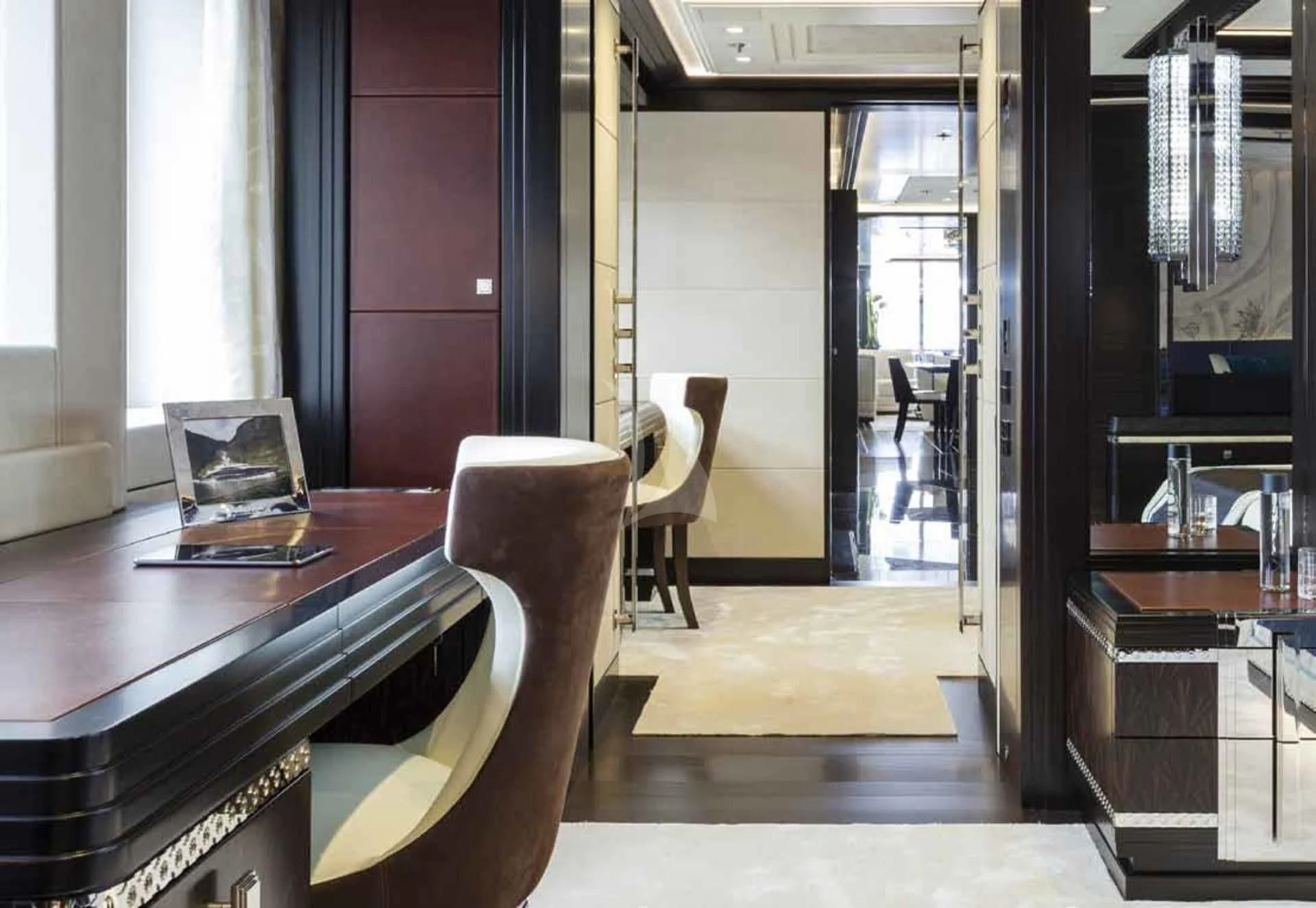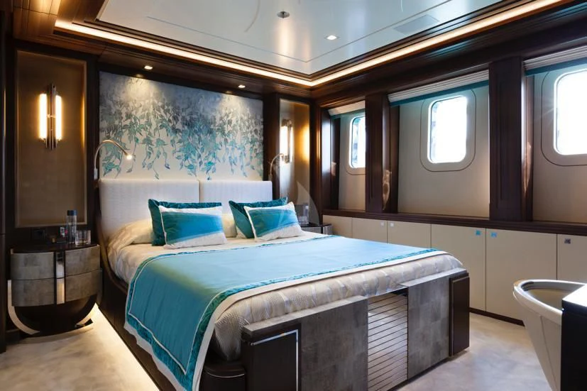 Aboard JULIA, you will find five lavish cabins designed with utmost care and precision for accommodating ten esteemed guests while maintaining their privacy. Each cabin exudes sophistication, reflecting the tasteful aesthetics employed by the interior designers. The master stateroom stands out with its plush furnishings, exquisite decor, and expansive space offering unrivaled comfort for the yacht's principal guests.