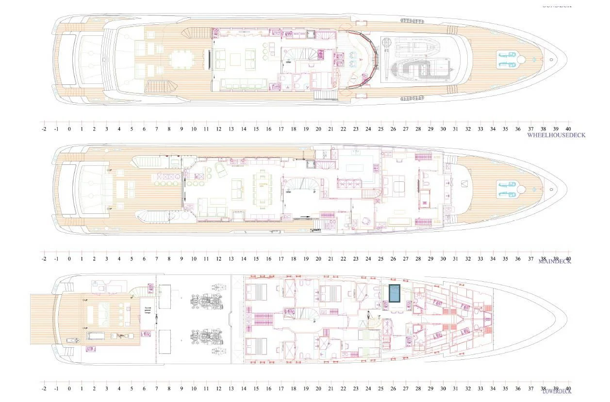 Powered by two MTU 8V4000 M63 engines, JULIA smoothly cruises at speeds up to 12 knots and can reach top speeds of 15 knots when required - ideal for those seeking thrill alongside luxury! Her machinery includes SPERRY MARINE SYSTEMS steering along with Zero Speed stabilizers ensuring optimal performance stability during voyages across vast expanses ocean waters; hydraulic bow thruster from ZF-Marine further enhances maneuverability making her easy handle even toughest marine conditions!