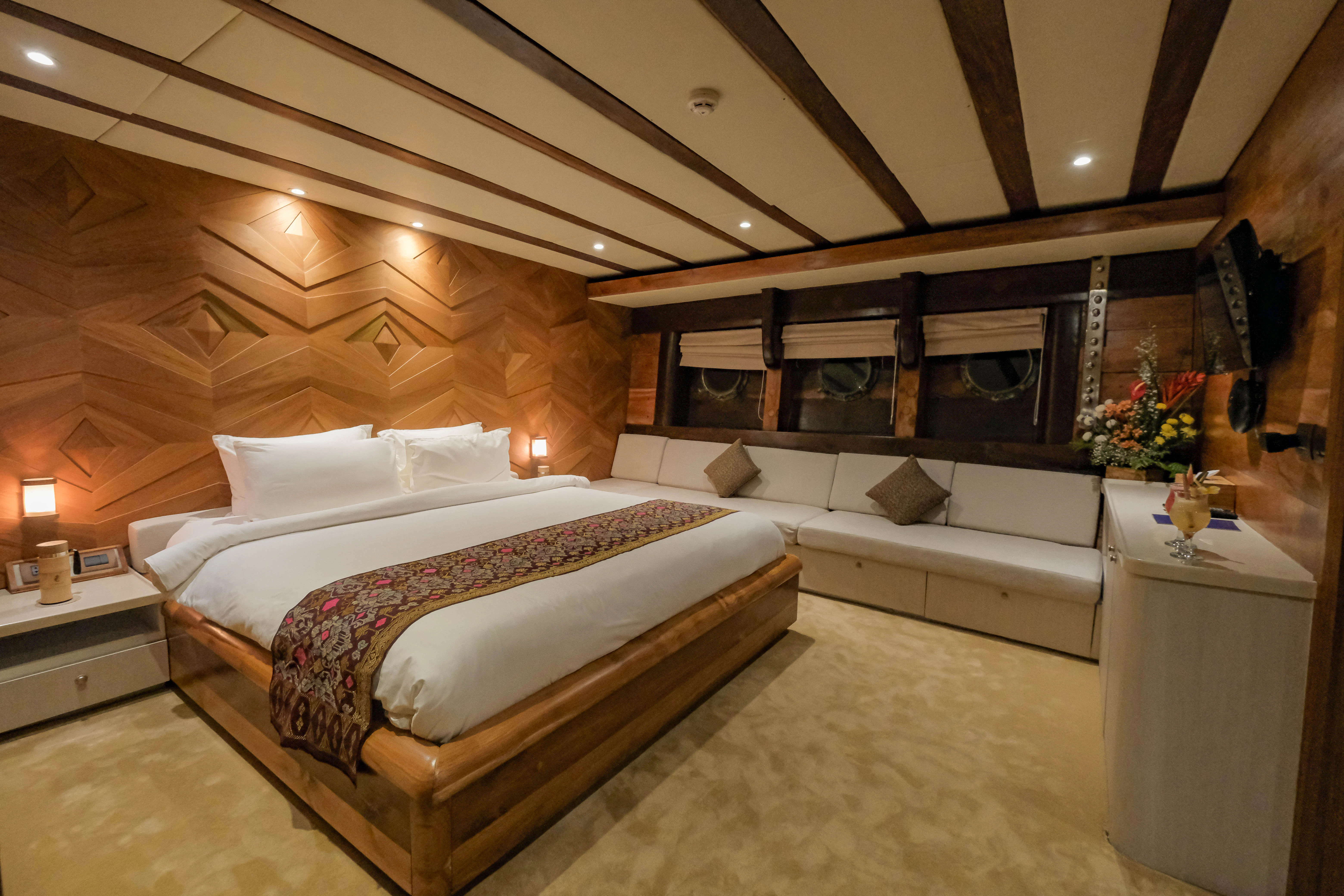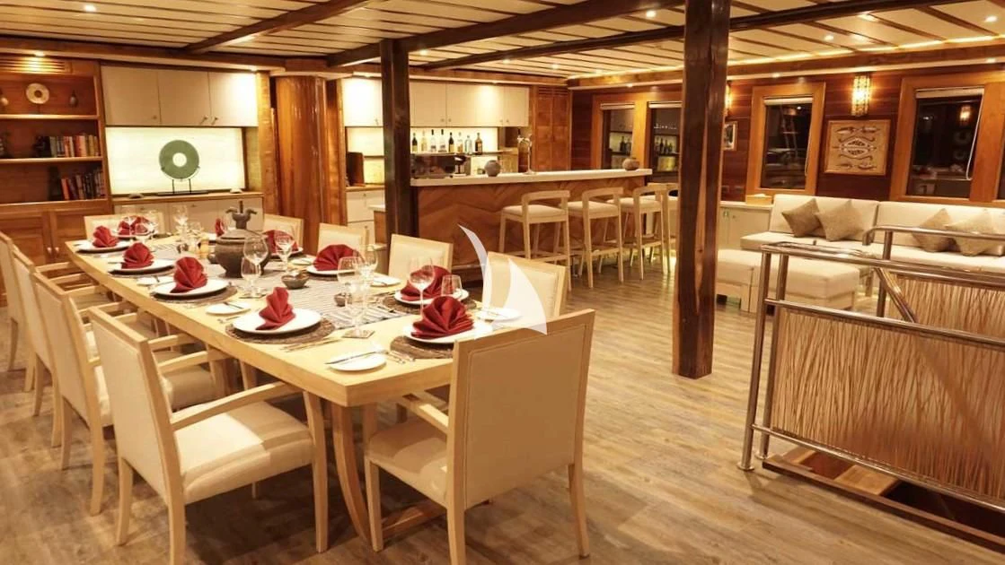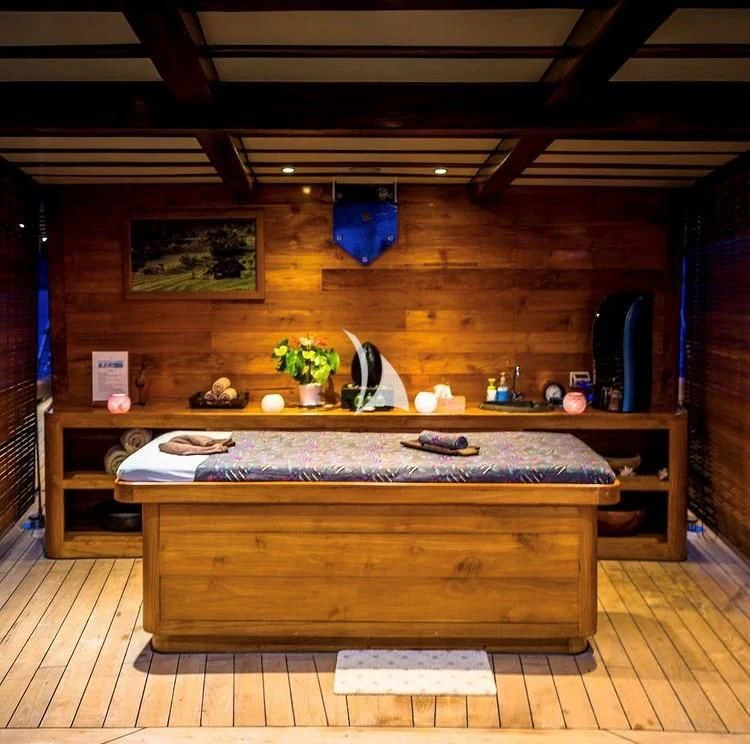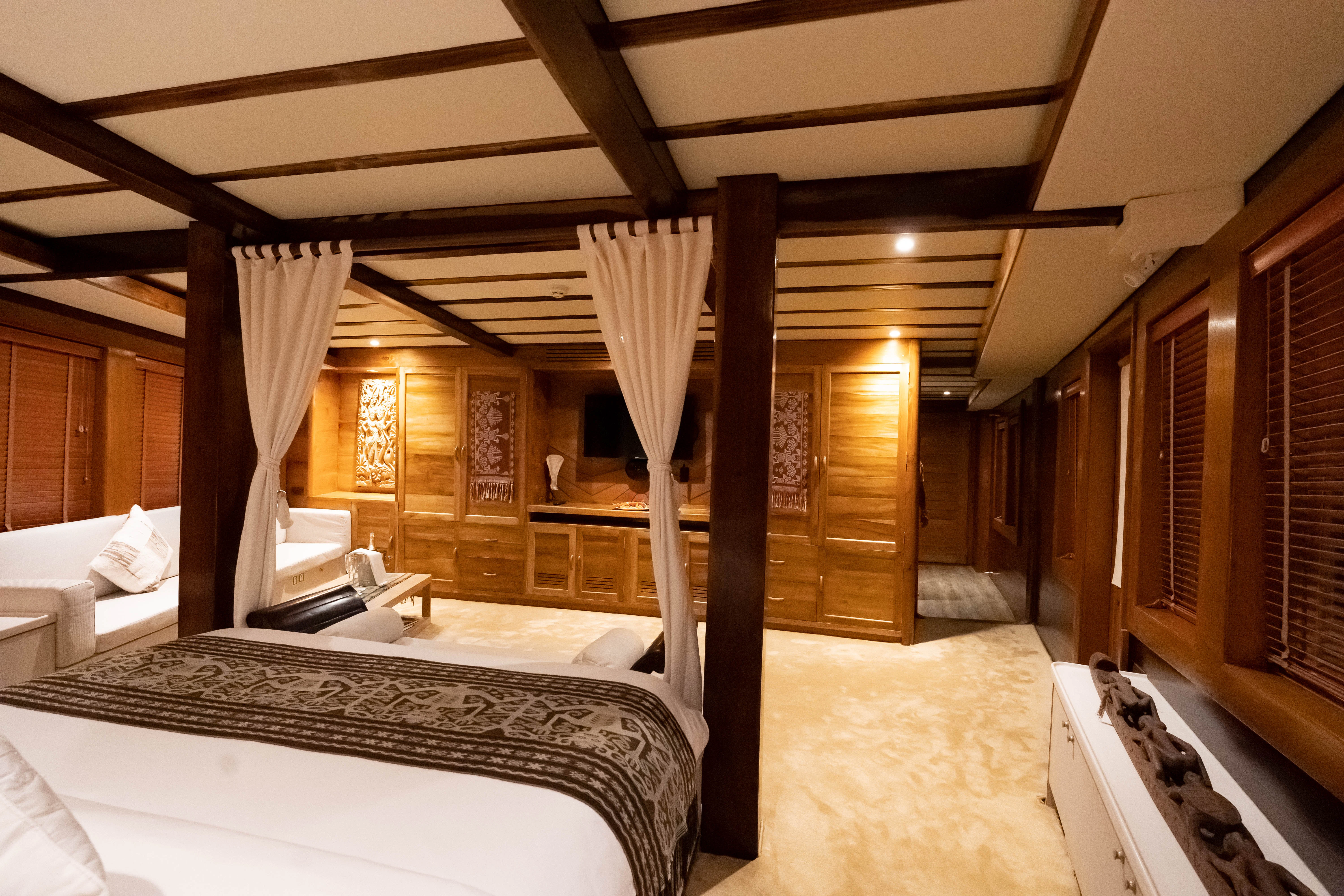 Stepping aboard LAMIMA transports you into another realm where luxury meets comfort seamlessly. The interior décor invokes warmth and tranquility with its harmonious color palette and unique design elements reminiscent of Southeast Asian aesthetics. Seven opulent cabins accommodate up to 14 guests, each offering unrivaled comfort and privacy. The master stateroom stands out with its lavish appointments, offering breathtaking views through expansive windows that let in abundant natural light.