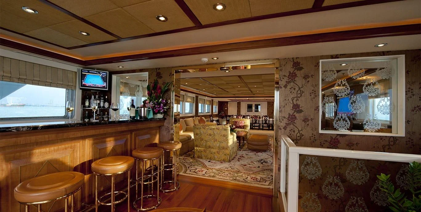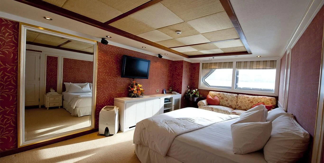 Step inside the LANGKAWI LADY and you will be greeted by an interior that exudes grandeur and sophistication. Accommodating up to 20 guests across eight luxurious cabins, each space has been thoughtfully designed to offer ultimate comfort and style. The master stateroom stands as a sanctuary of tranquillity featuring opulent décor harmonizing perfectly with its surroundings while additional staterooms offer equally impressive accommodation options for guests onboard.