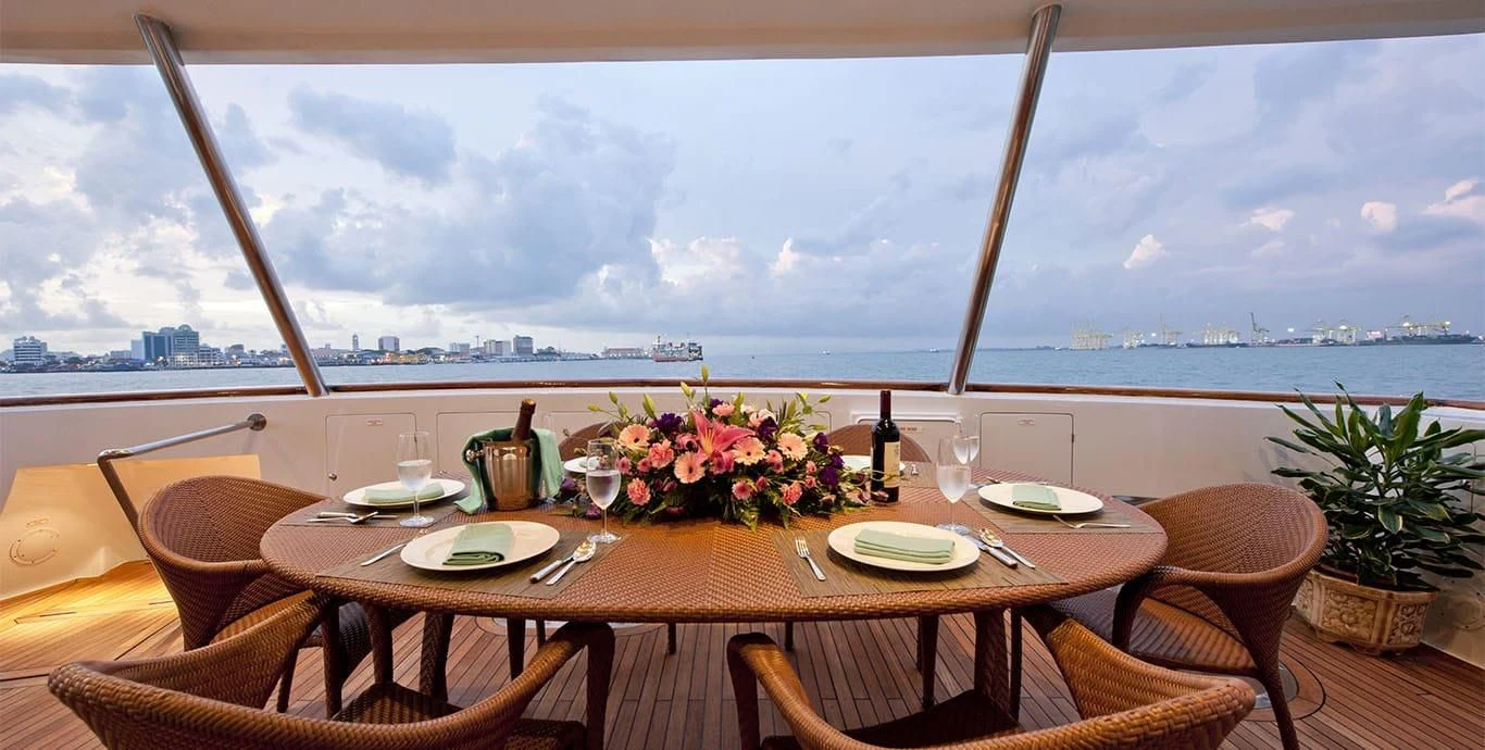 The exterior spaces of LANGKAWI LADY are nothing short of breathtaking. Her wide beam of 28 feet (8.23 meters) allows for expansive sundecks perfect for sunbathing or simply enjoying panoramic ocean views. Alfresco dining areas provide an exquisite setting for memorable meals under the stars while lounging areas are designed with utmost comfort in mind, offering plush furnishings where guests can unwind amidst sea breezes. With a top speed of 14 knots and cruising speed of 10 knots powered by twin Caterpillar engines each delivering 1040 horsepower, she ensures smooth voyages across seas.