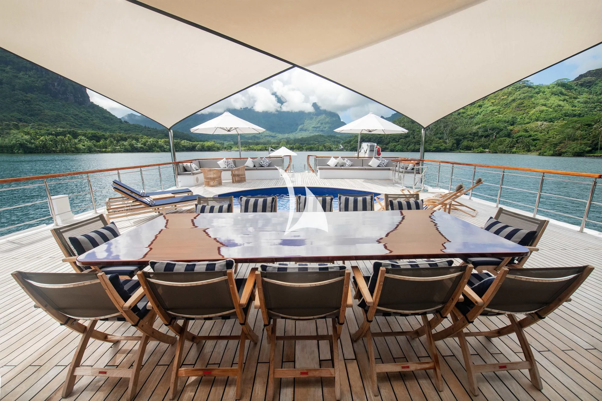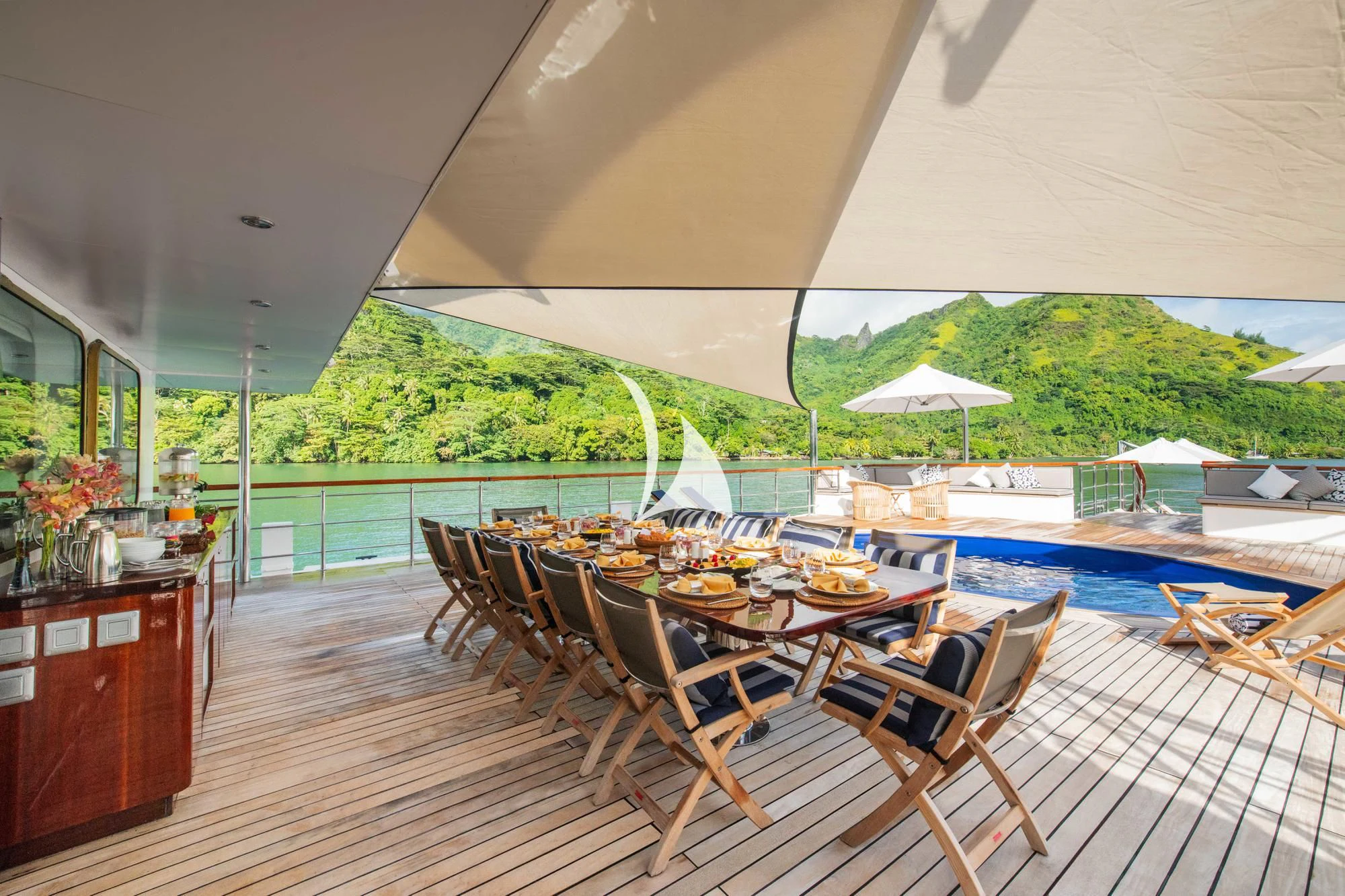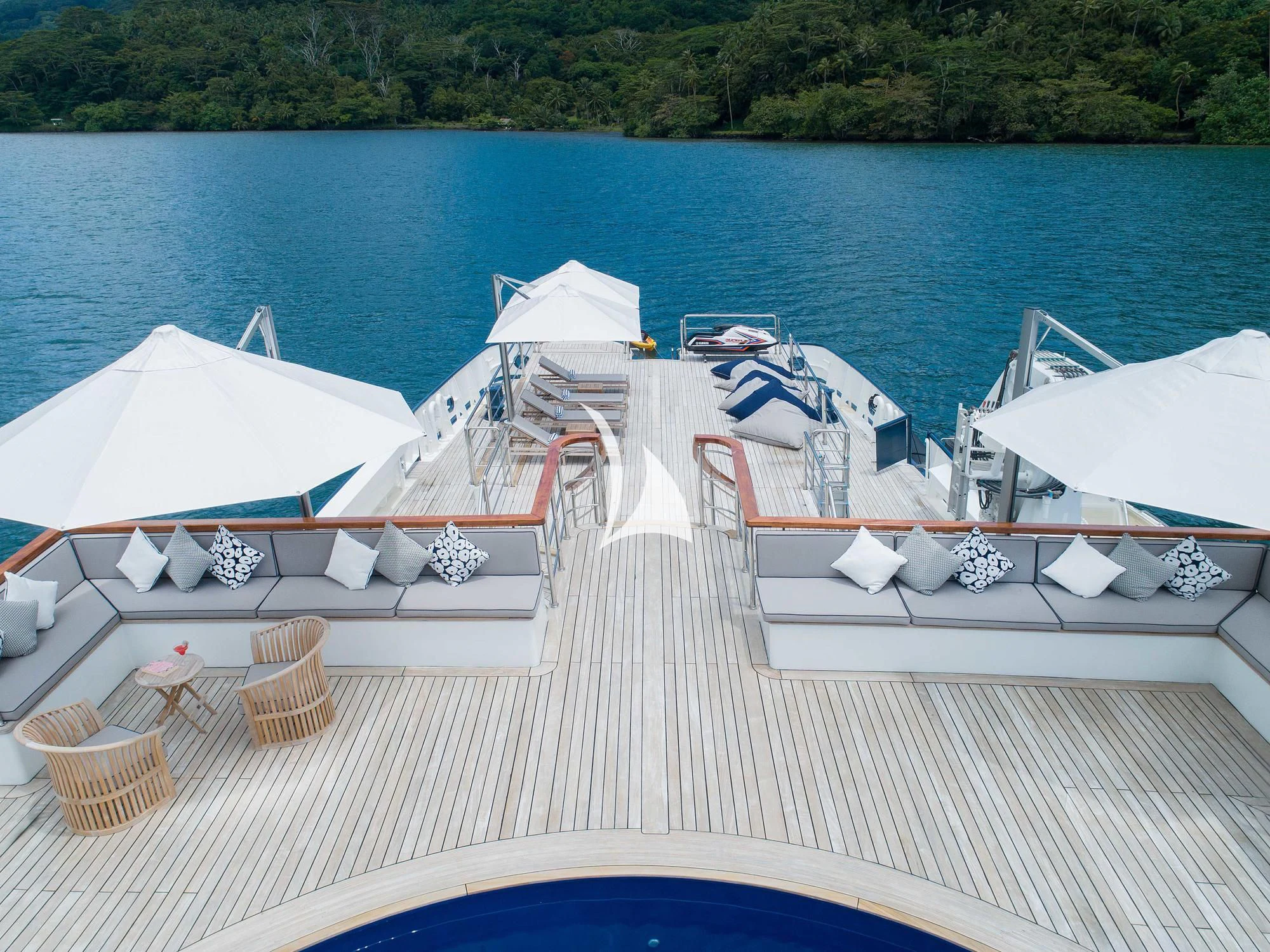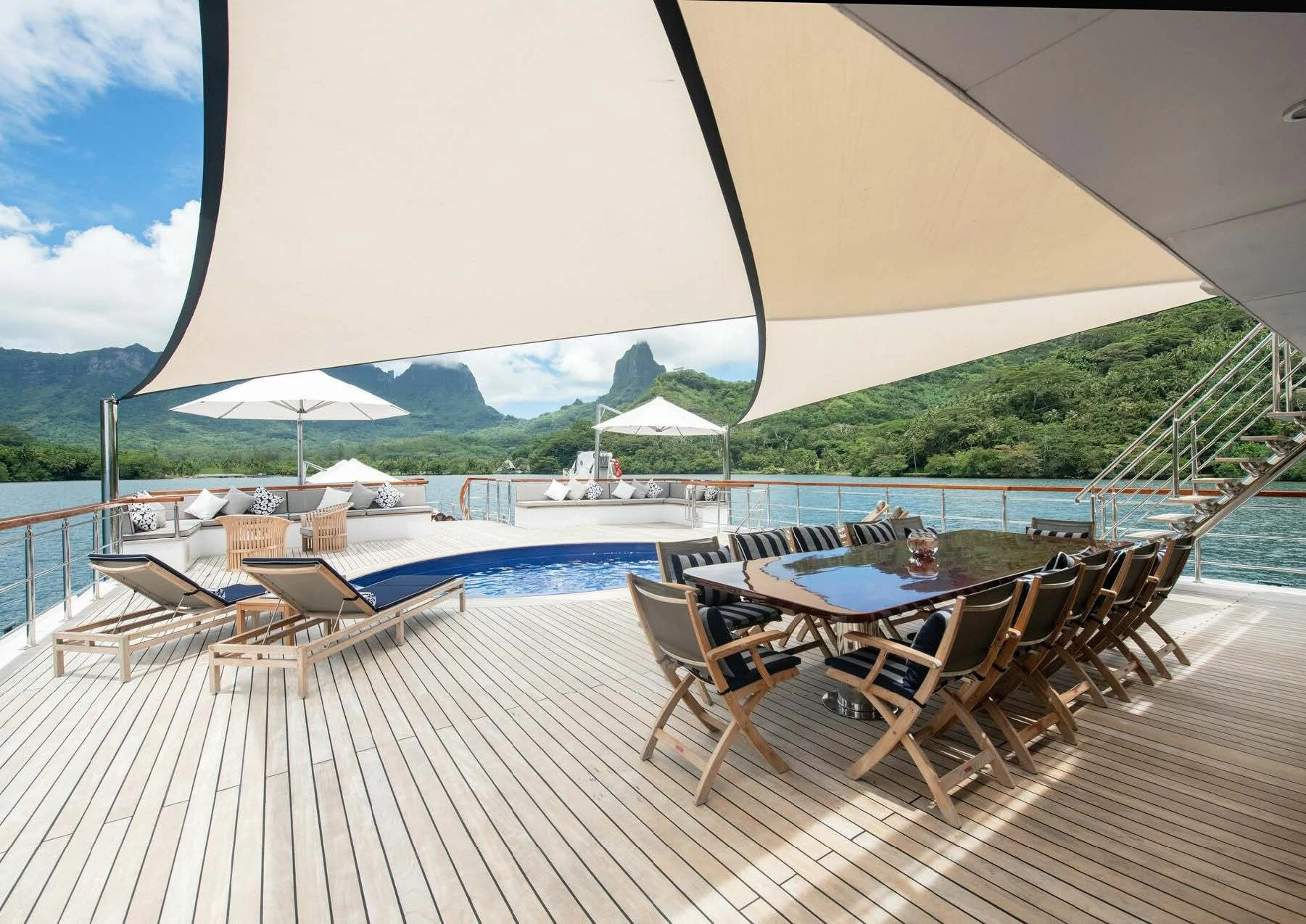 Furthermore, if you fancy cooling off during hot summer days or simply enjoy swimming under starlit skies - dive into our onboard swimming pool; it adds another layer of luxury experience aboard LATITUDE.