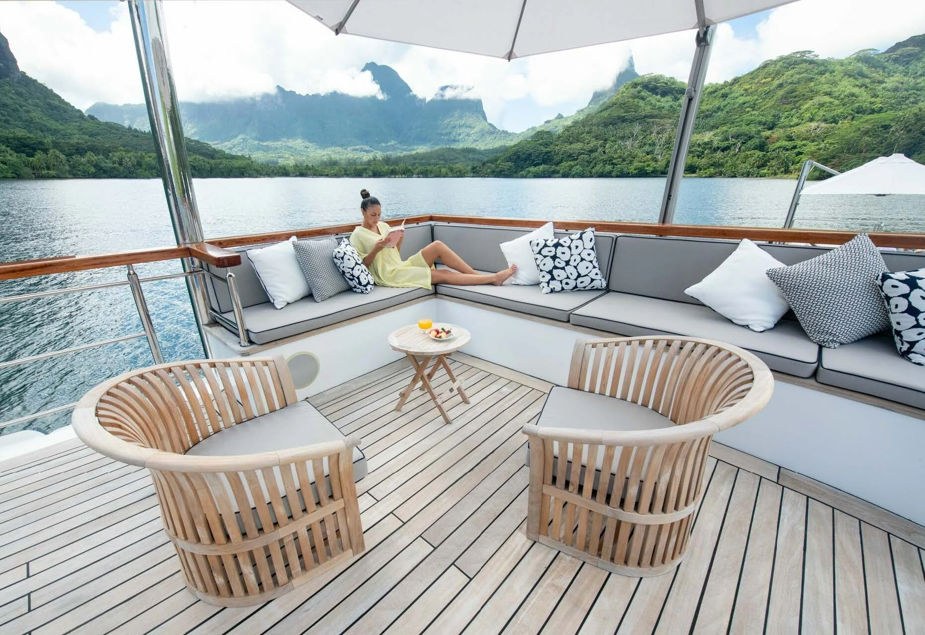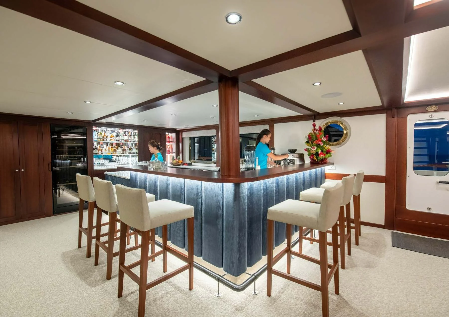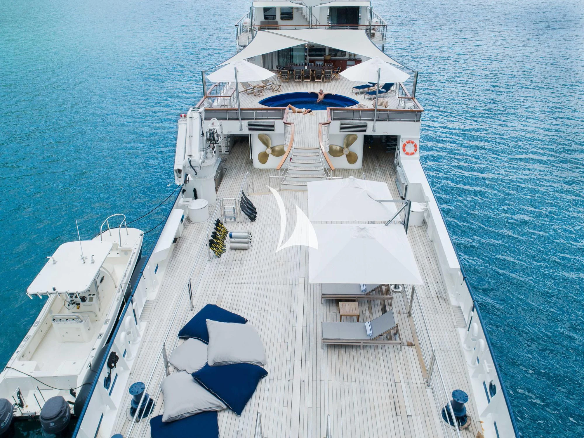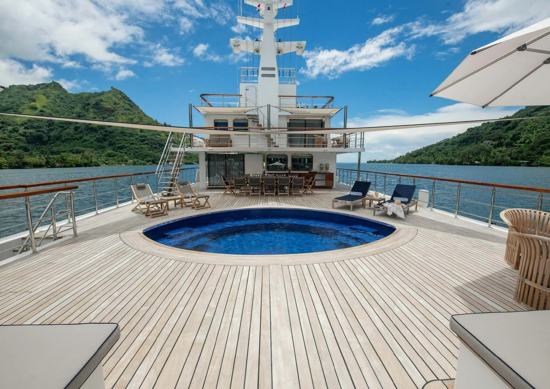 LATITUDE's amenities truly set her apart from other yachts in her class; they are thoughtfully curated to cater to every guest's needs - whether it's relaxation or exhilaration you seek on your journey across the seas. Indulge yourself with exclusive spa treatments from our skilled masseuse or unwind in our Jacuzzi after a long day at sea.