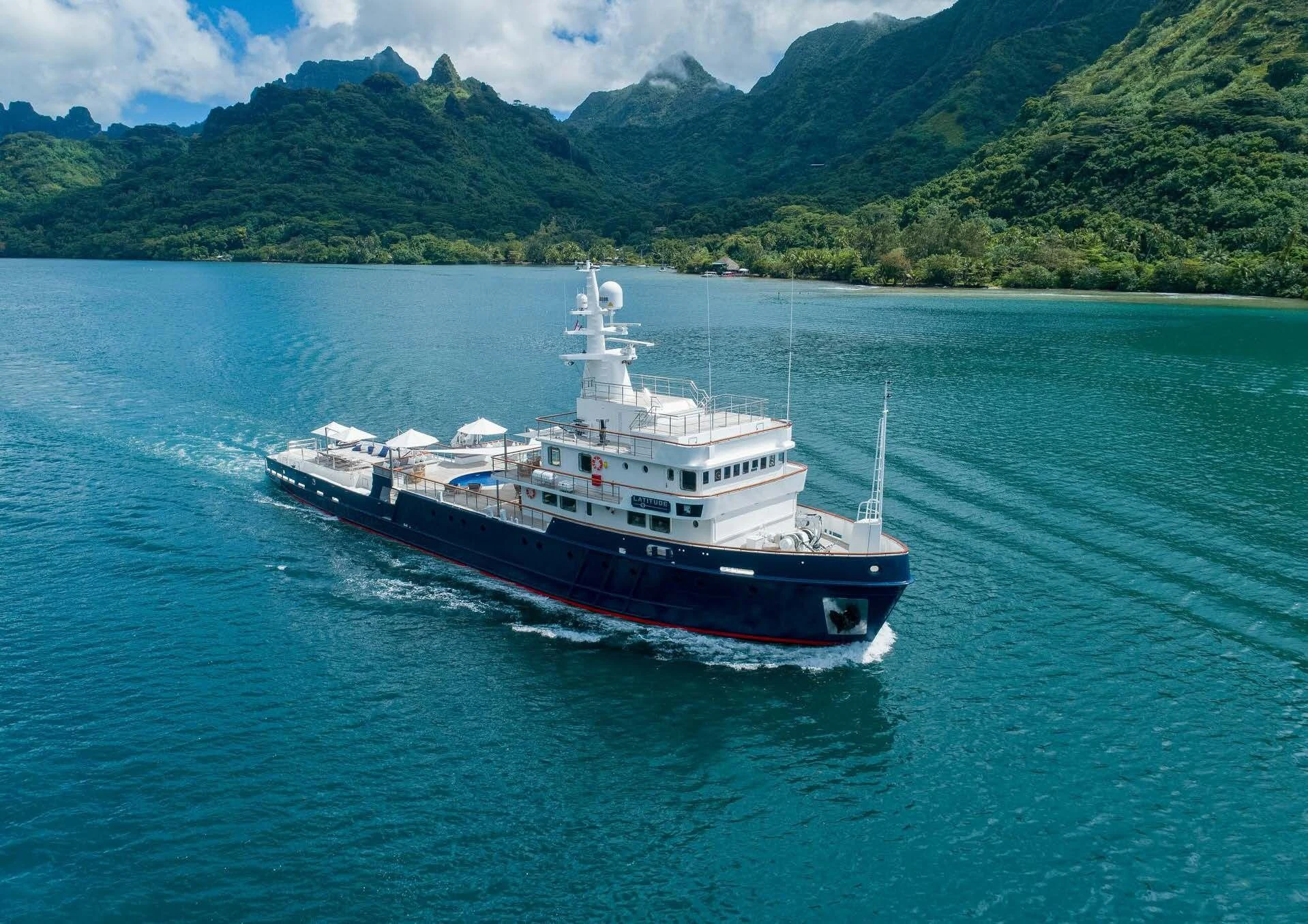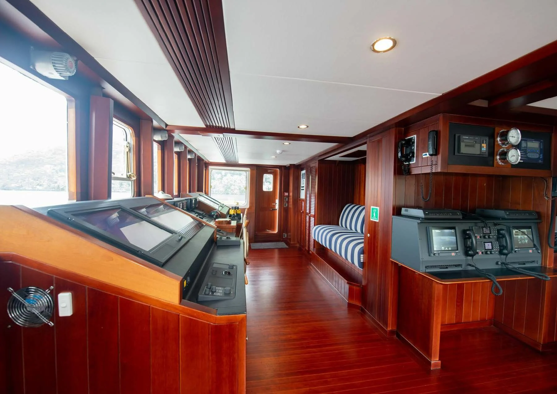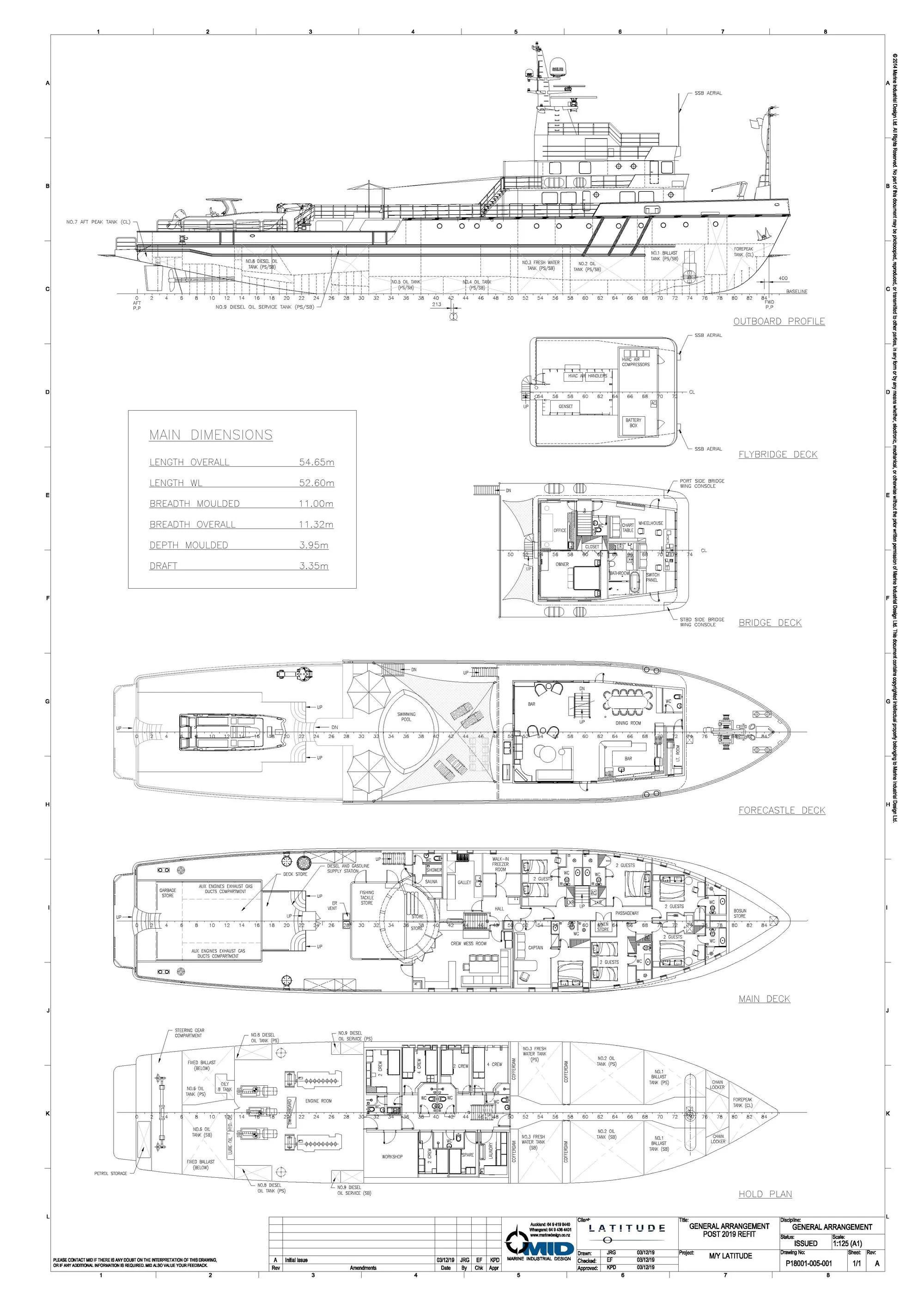 Behold the grandeur of LATITUDE, a majestic motor expedition yacht that embodies a harmonious blend of luxury and adventure. Constructed by the renowned German shipbuilder Hitzler in 1973, she underwent an extensive refit in 2003, transforming her into the epitome of opulence. With an impressive gross tonnage of 734, this custom model exudes elegance and strength from every angle. Her steel hull is both robust and sleek, stretching to a length overall (LOA) of 179 feet or 54.7 meters. The breadth (beam) measures at 36 feet or around 10.97 meters, providing ample space for relaxation and entertainment.