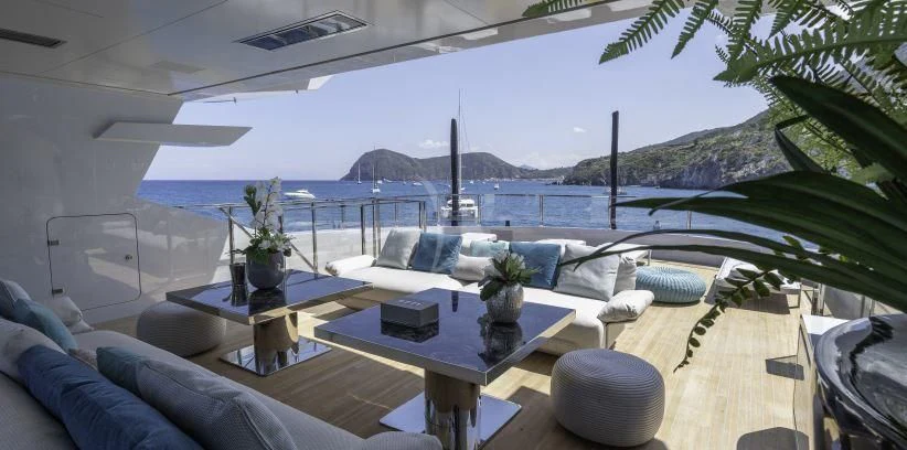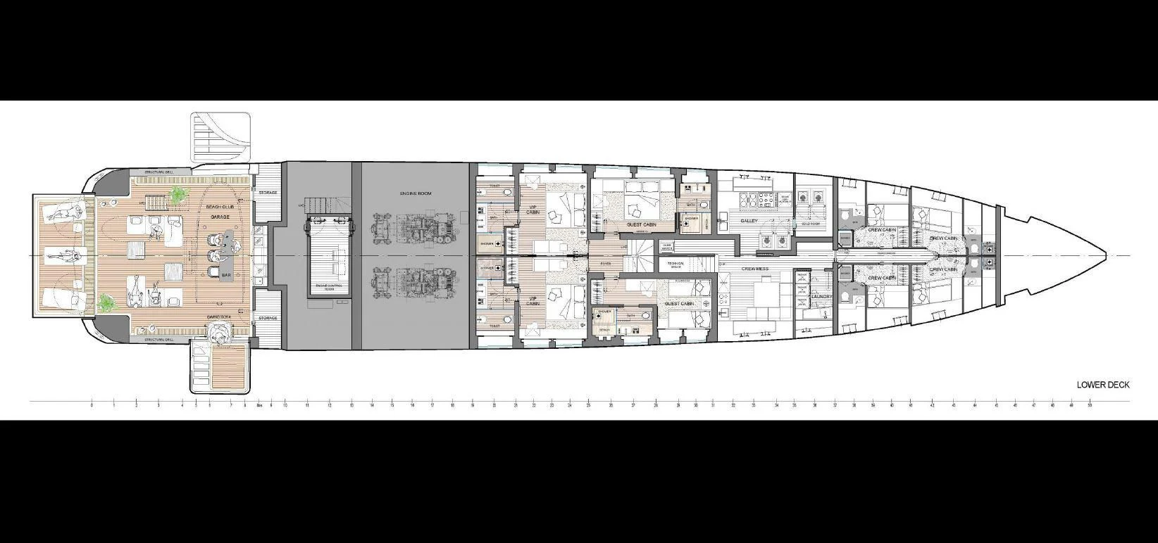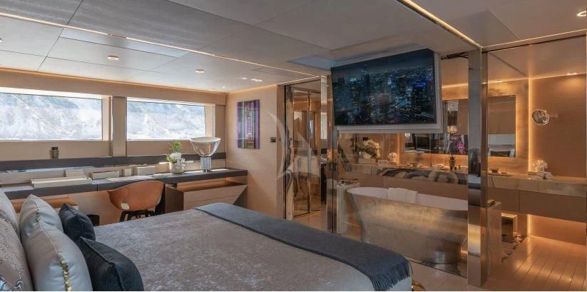 Step inside LEL and be prepared to be swept off your feet by her sumptuous interiors. The color palette is meticulously chosen to create a soothing ambiance that resonates with luxury and comfort throughout all six cabins accommodating up to thirteen privileged guests who can enjoy Wi-Fi connectivity throughout their journey. The master stateroom stands as an epitome of indulgence featuring lavish furnishings and state-of-the-art entertainment systems ensuring absolute privacy and tranquillity.