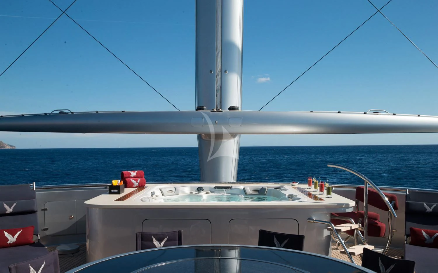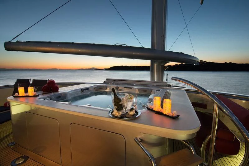 However, what truly sets MALTESE FALCON apart are her exclusive amenities that cater to every guest's needs and desires—from adventurous water-based activities like scuba diving facilitated by specialized crew members—to indulgent pampering sessions offered by onboard masseuse services—all available at your fingertips during your voyage aboard this remarkable yacht. Work out in style at our fully-equipped gym or unwind leisurely in our Jacuzzi while savoring panoramic sea views—the choice is yours! For those seeking connectivity even while at sea, Wi-Fi service ensures seamless communication with loved ones back home or prompt attention to any business matters that may arise.