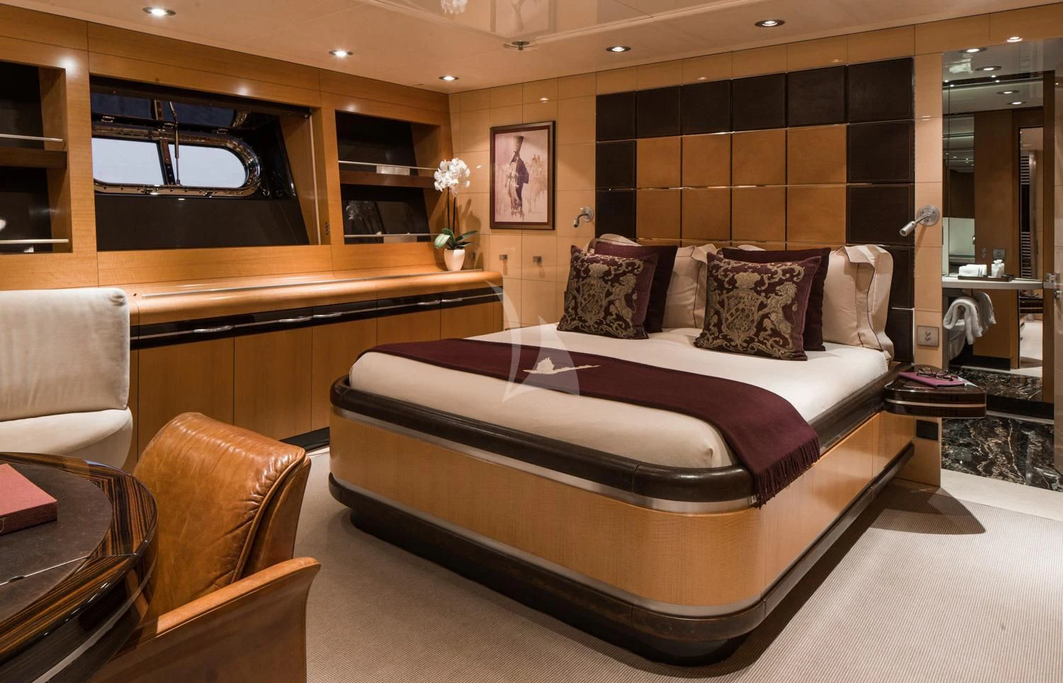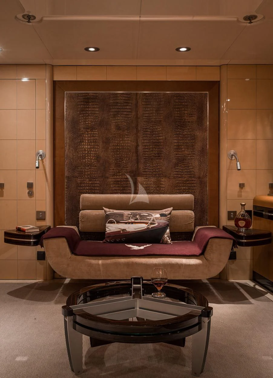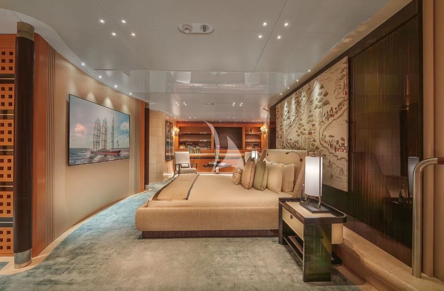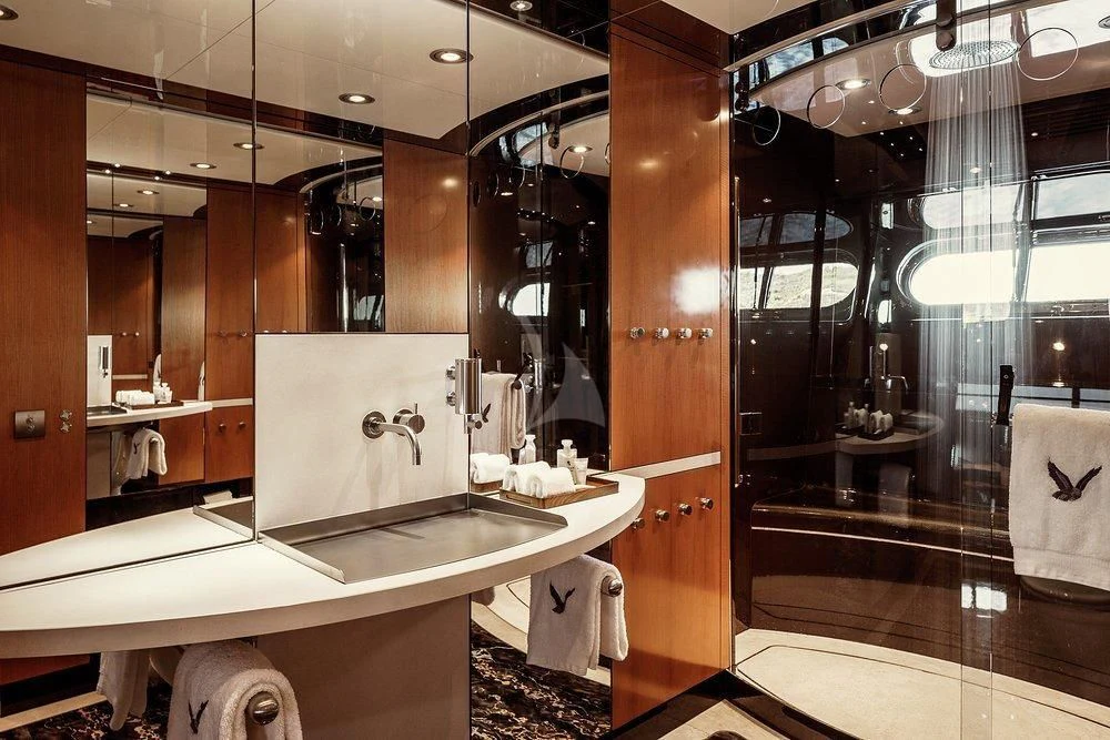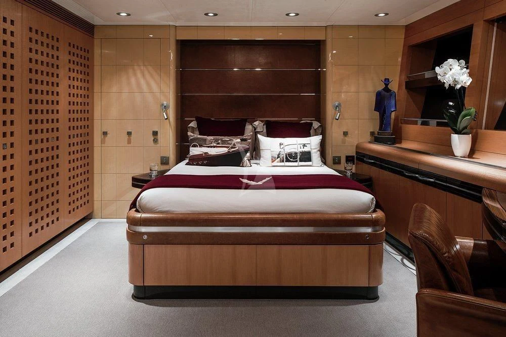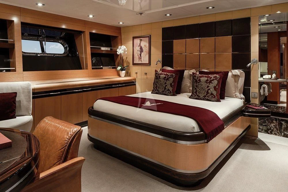 Step inside MALTESE FALCON's luxurious interior, where you'll find six opulent cabins meticulously designed to accommodate up to twelve guests comfortably. Each stateroom is imbued with unique design elements that reflect refined taste and understated elegance, complemented by a soothing color palette that enhances the overall ambiance within these private havens. The master stateroom stands out with its lavish furnishings and superior comforts—truly a sanctuary fit for royalty aboard this magnificent vessel.