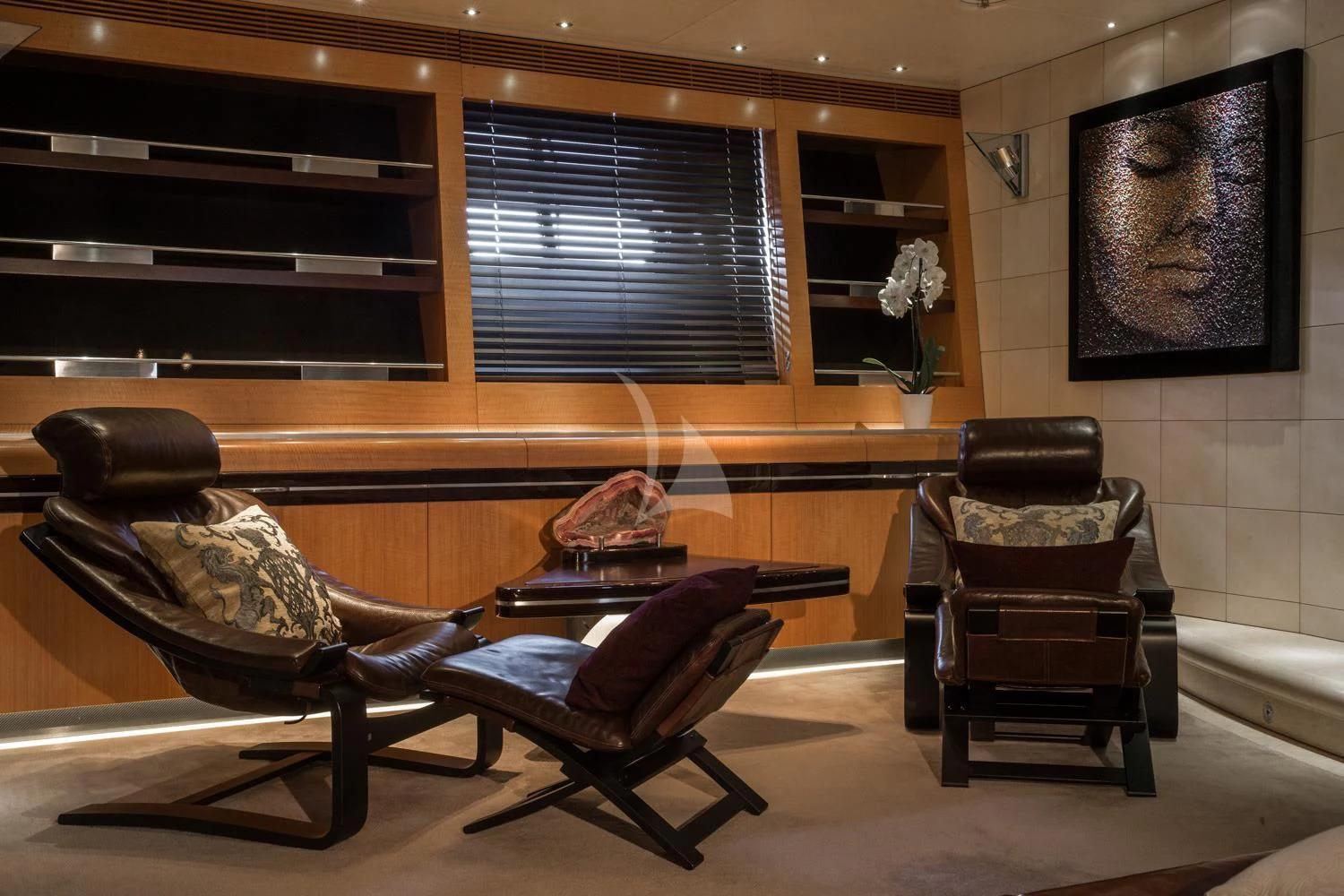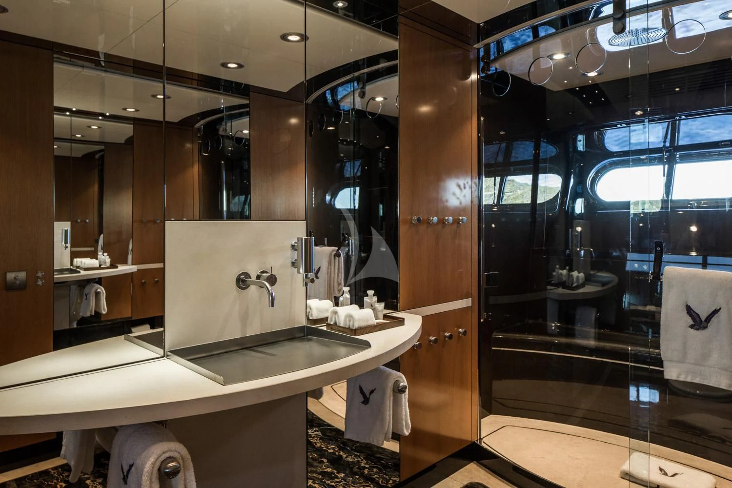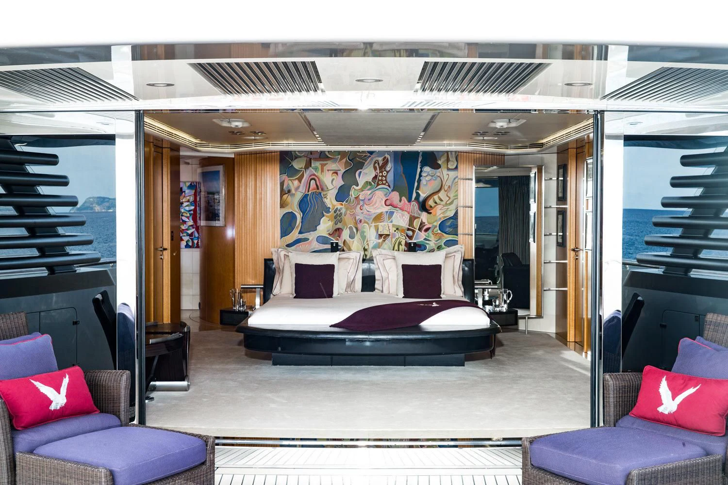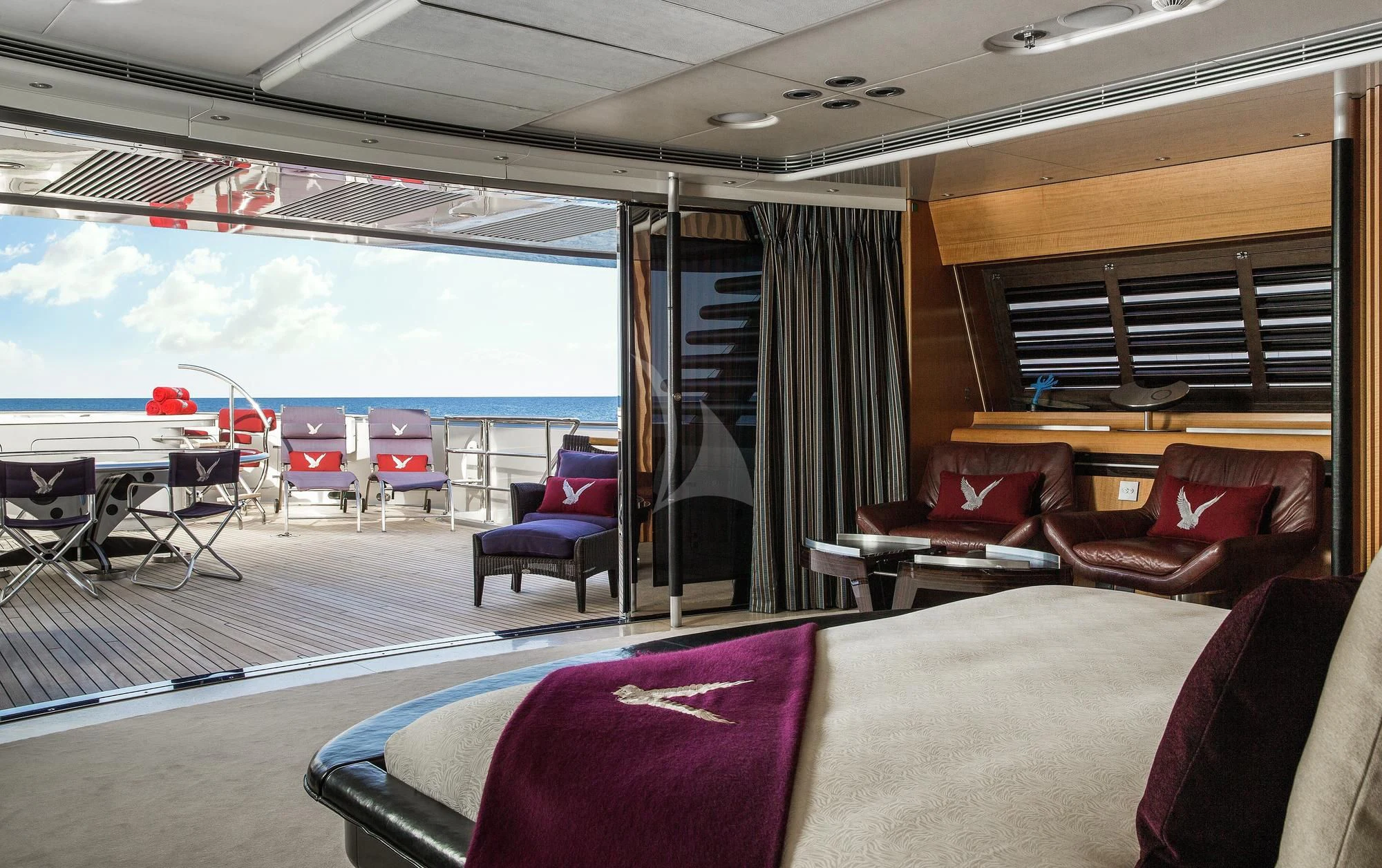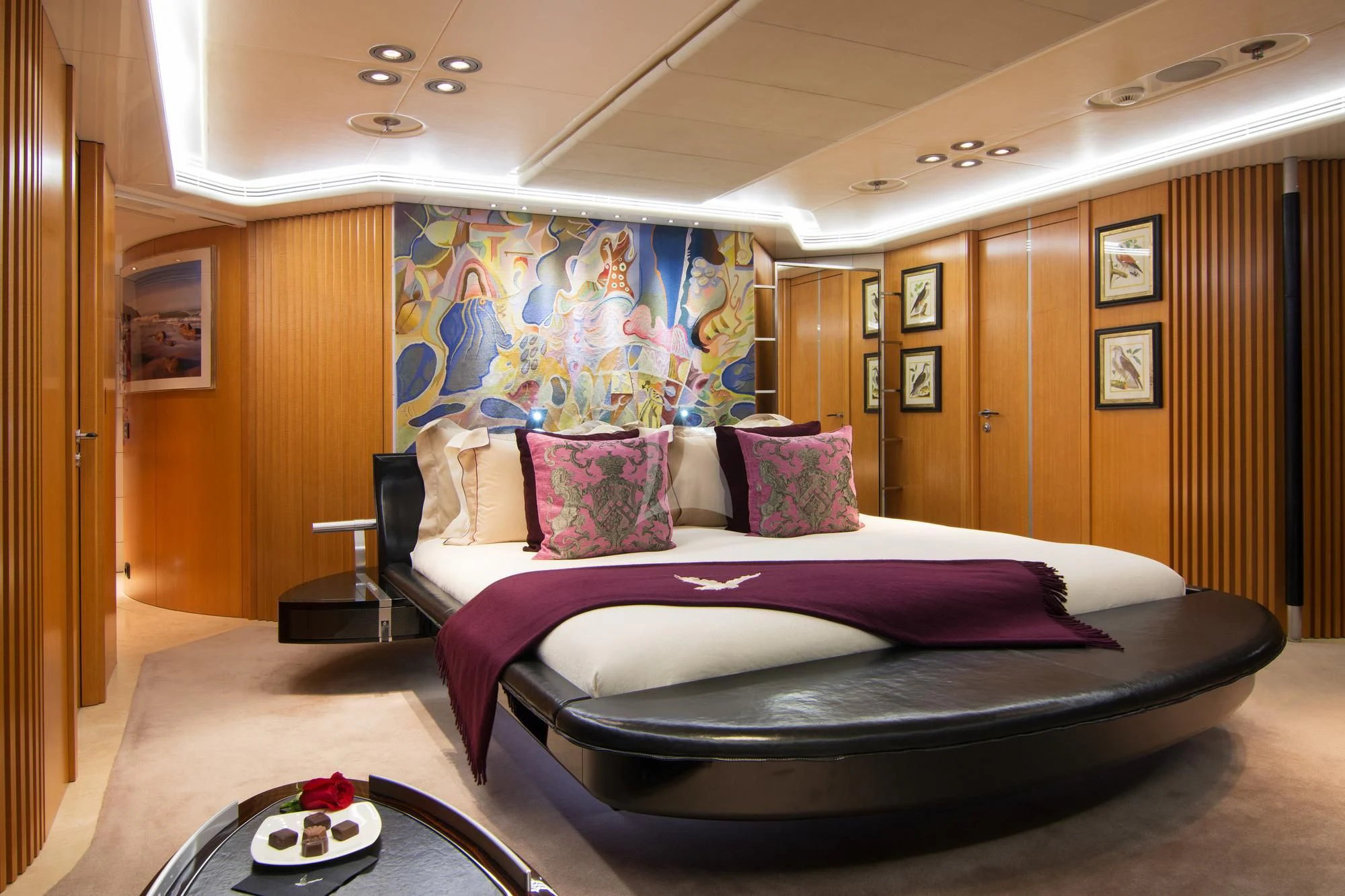 Step inside MALTESE FALCON's luxurious interior, where you'll find six opulent cabins meticulously designed to accommodate up to twelve guests comfortably. Each stateroom is imbued with unique design elements that reflect refined taste and understated elegance, complemented by a soothing color palette that enhances the overall ambiance within these private havens. The master stateroom stands out with its lavish furnishings and superior comforts—truly a sanctuary fit for royalty aboard this magnificent vessel.