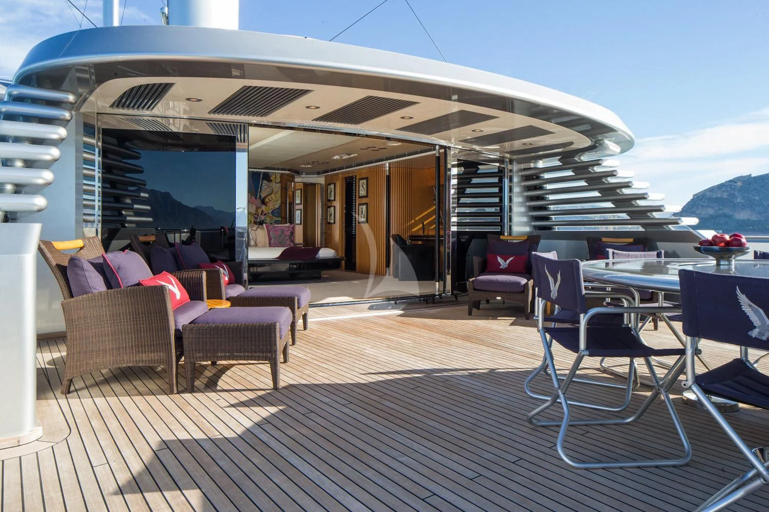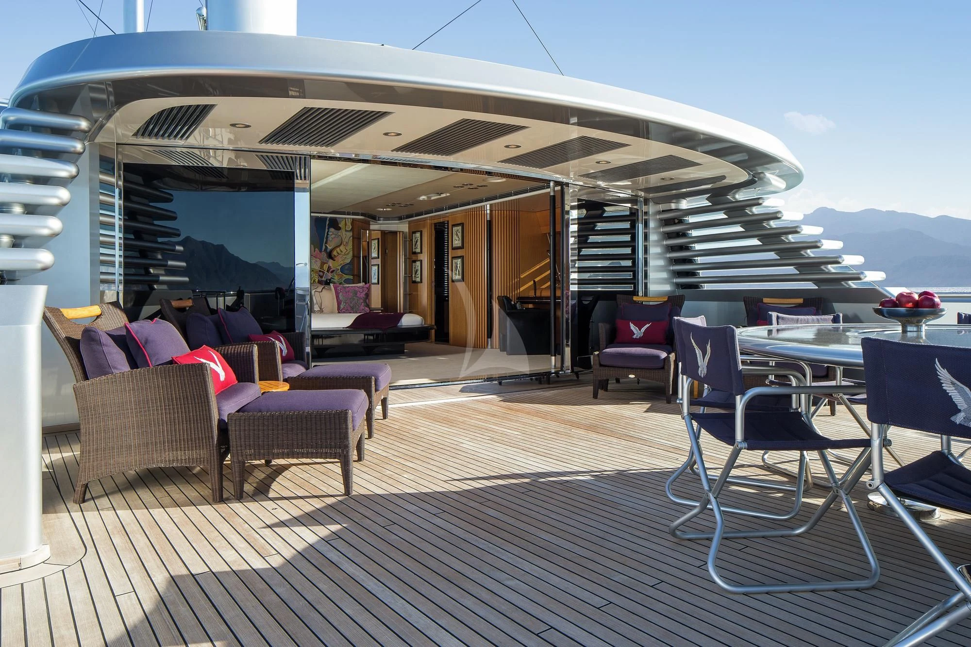 The exterior design of MALTESE FALCON is nothing short of breathtaking. Her steel hull material exudes strength and durability while maintaining an air of elegance and sophistication. Among her notable exterior features are spacious sundecks perfect for basking under the sun or engaging in alfresco dining against stunning oceanic backdrops. The lounging areas provide ample space for relaxation and socializing, setting the stage for unforgettable moments under open skies.