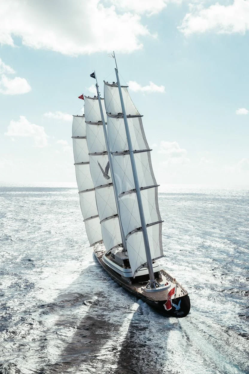 Despite her sizeable dimensions, it's worth noting that MALTESE FALCON does not have helicopter capabilities nor does she feature elevators—an intentional design choice aimed at preserving authentic seafaring experiences for guests who prefer traditional nautical adventures over modern conveniences.