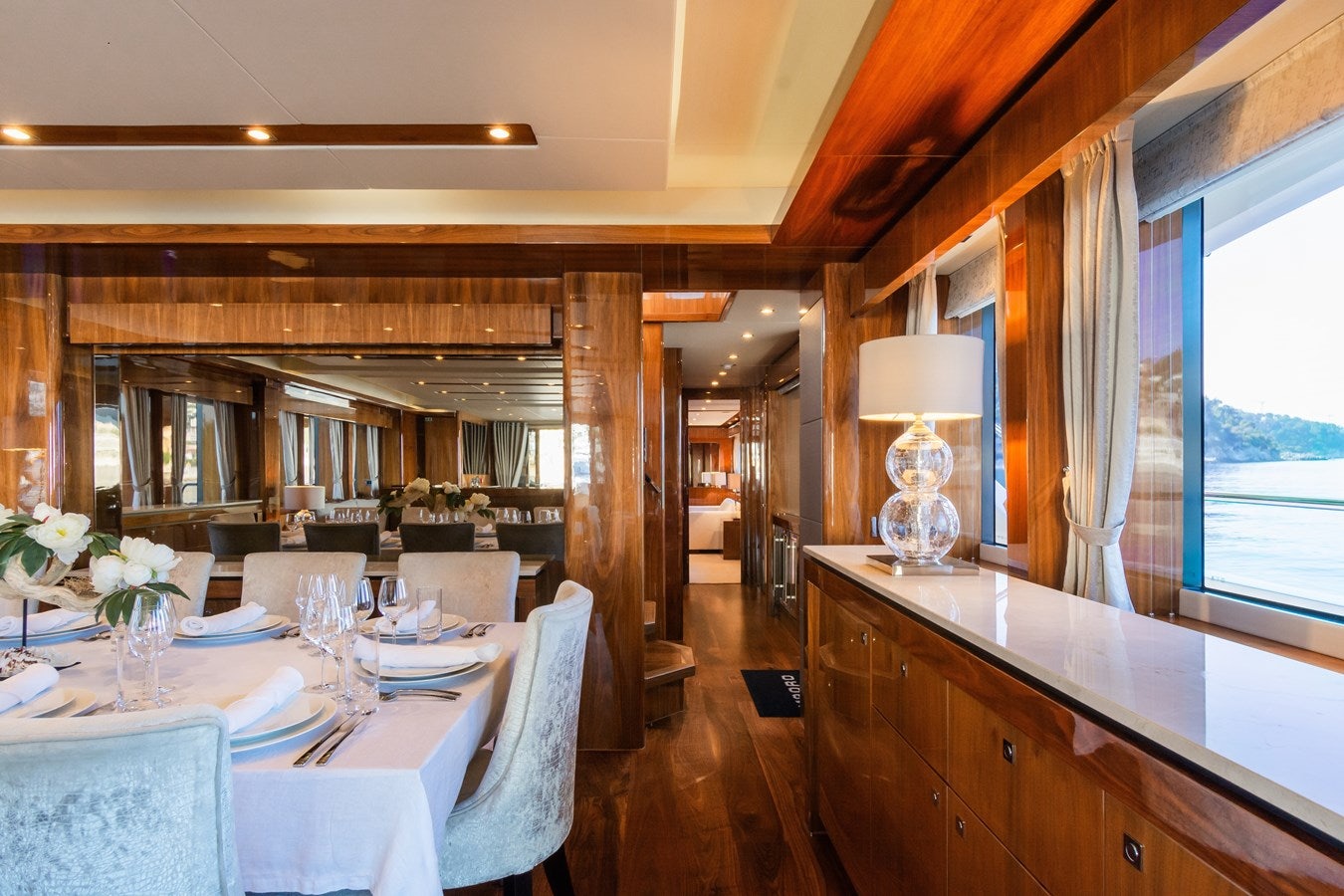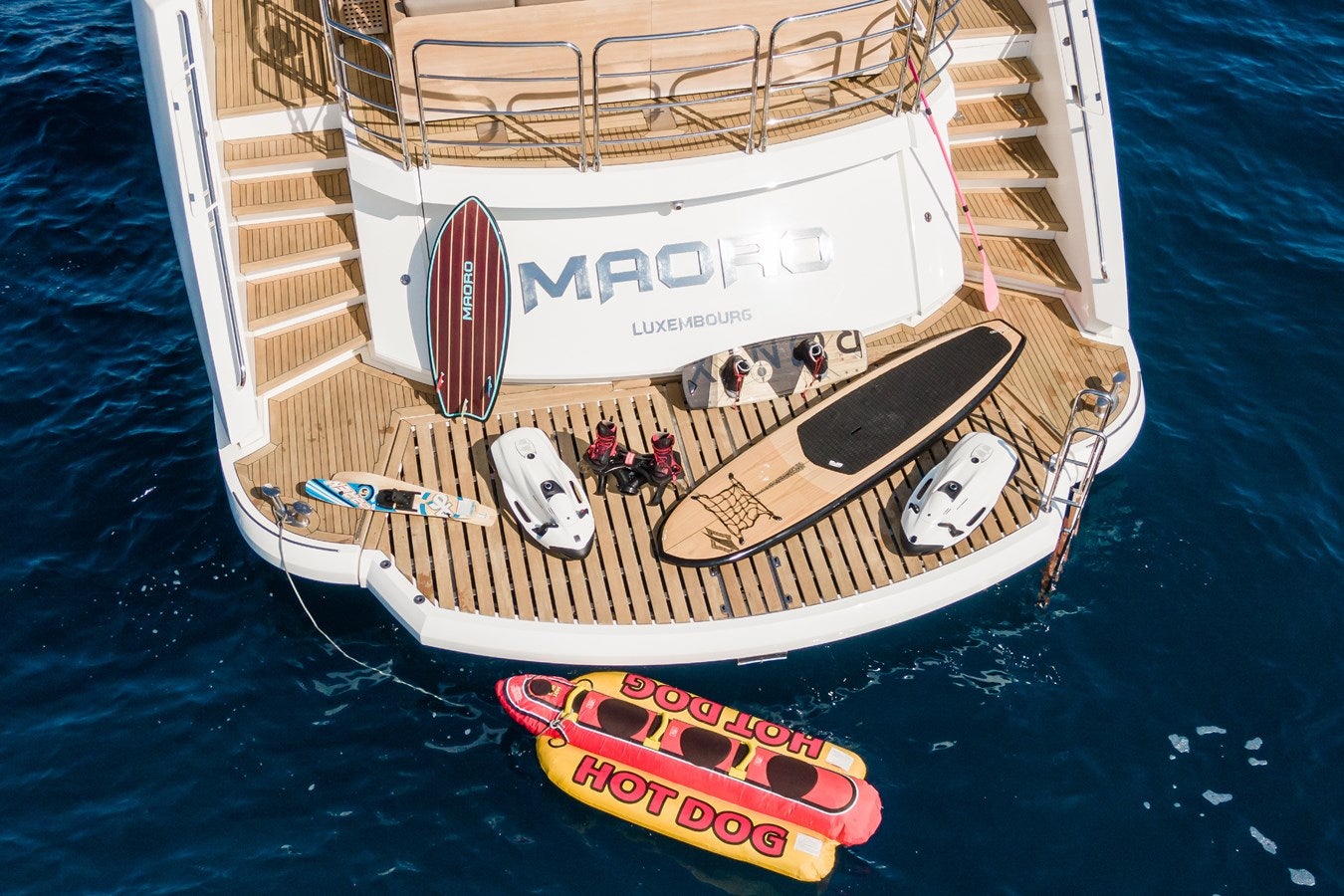 Entertainment options abound within this floating paradise – whether you wish to enjoy cocktails by sunset on one of her alfresco dining areas or indulge in gourmet meals prepared by skilled chefs in her formal dining area - every moment spent aboard MAORO promises delight.