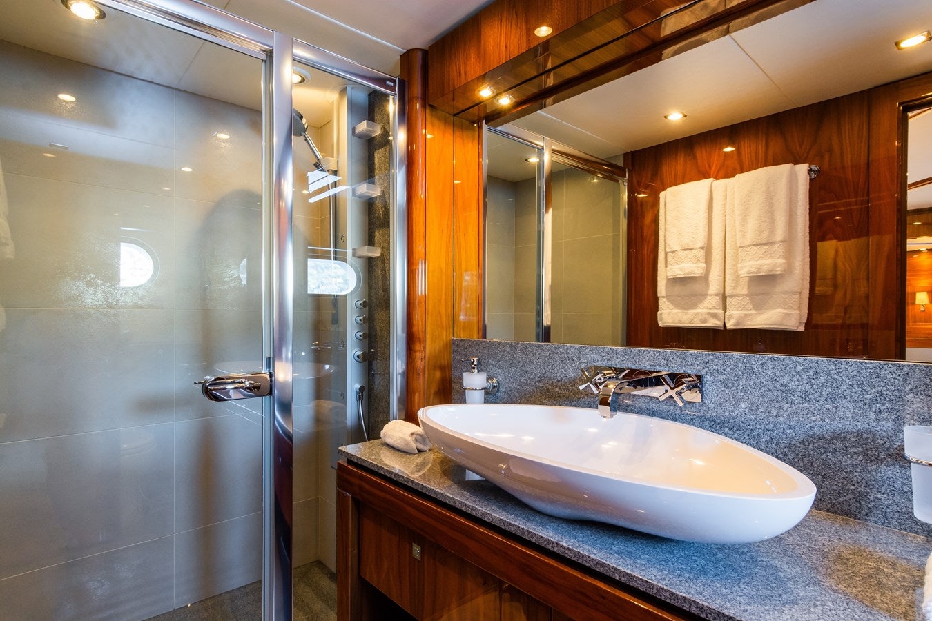 The master stateroom stands as a testament to opulence with its spacious layout featuring en-suite facilities complete with state-of-the-art fixtures. The additional staterooms are equally luxurious offering guests their private haven onboard MAORO.