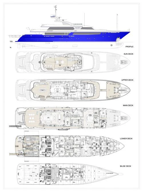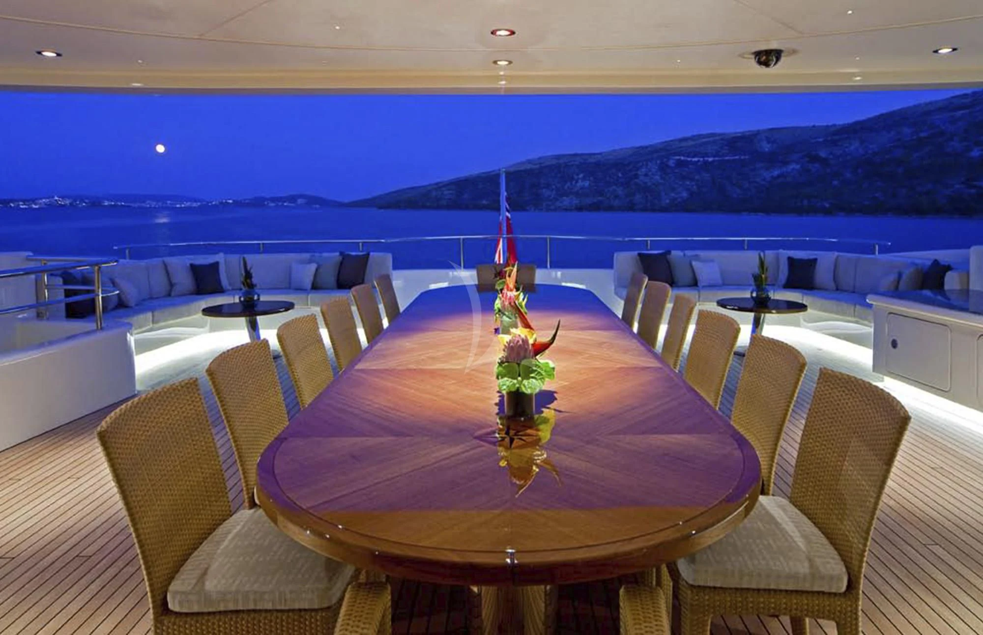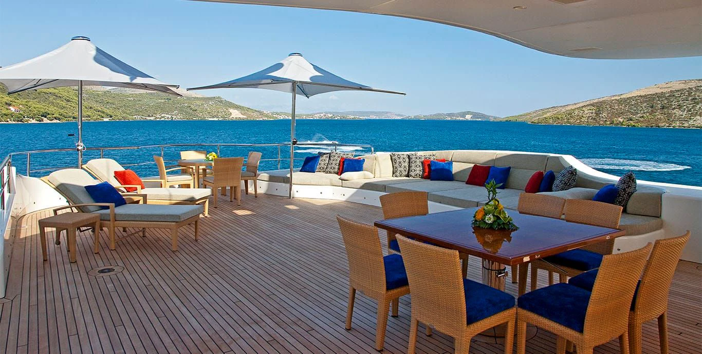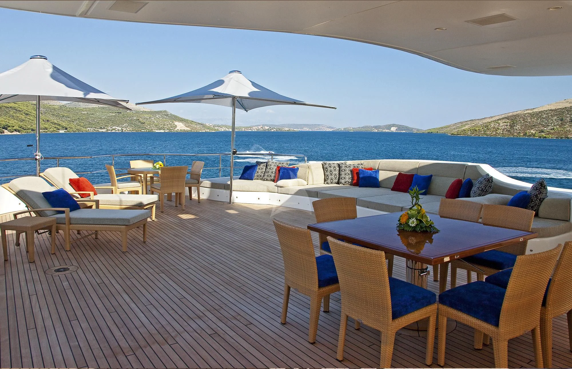MARY-JEAN II's exterior features are as striking as they are functional. The sundecks invite sunbathers to relax on plush loungers while taking in panoramic ocean views; alfresco dining areas set the scene for unforgettable meals under starlit skies; and a luxurious Jacuzzi provides the perfect spot for guests to unwind after a day of sea exploration. With a cruising speed of 14.5 knots and maximum speed of 16.5 knots, MARY-JEAN II effortlessly glides across the water while offering her guests unparalleled stability and comfort.