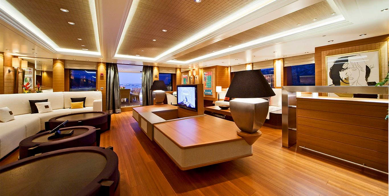 The amenities onboard MARY-JEAN II cater to every imaginable desire – whether it be maintaining fitness routines at sea in the state-of-the-art gym or indulging in movie nights within your very own onboard theater room - all covered by high-speed Wi-Fi connectivity throughout the yacht ensuring seamless digital communication if needed.