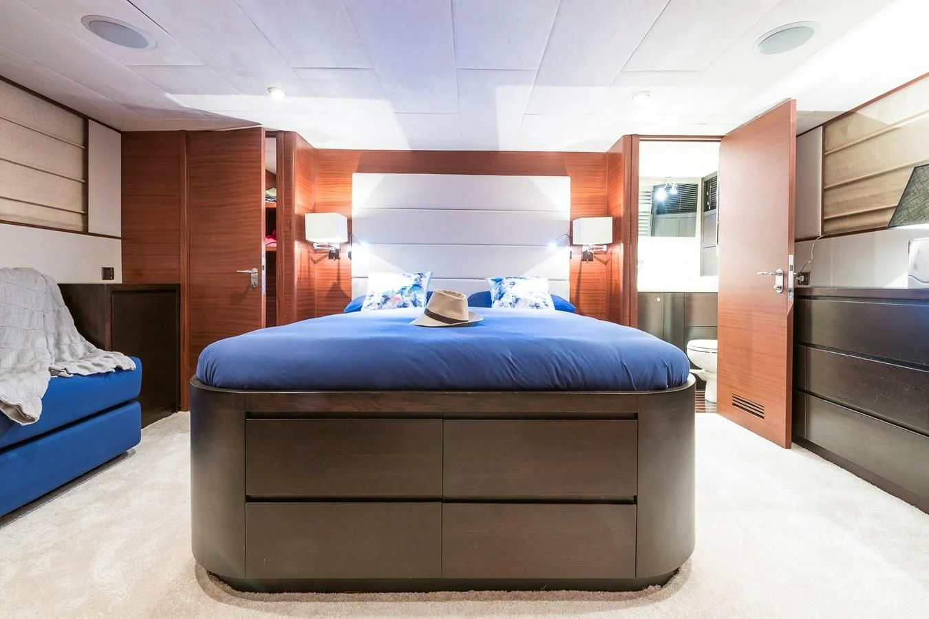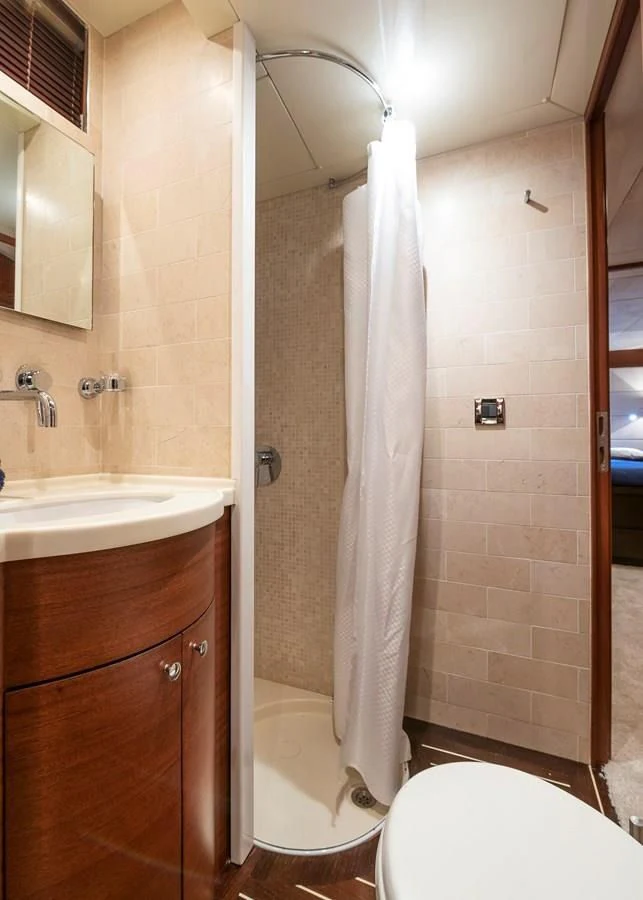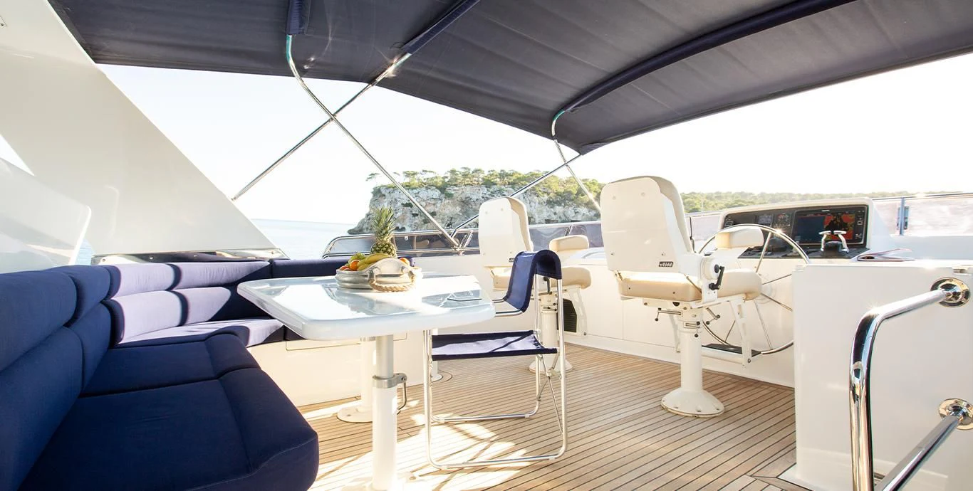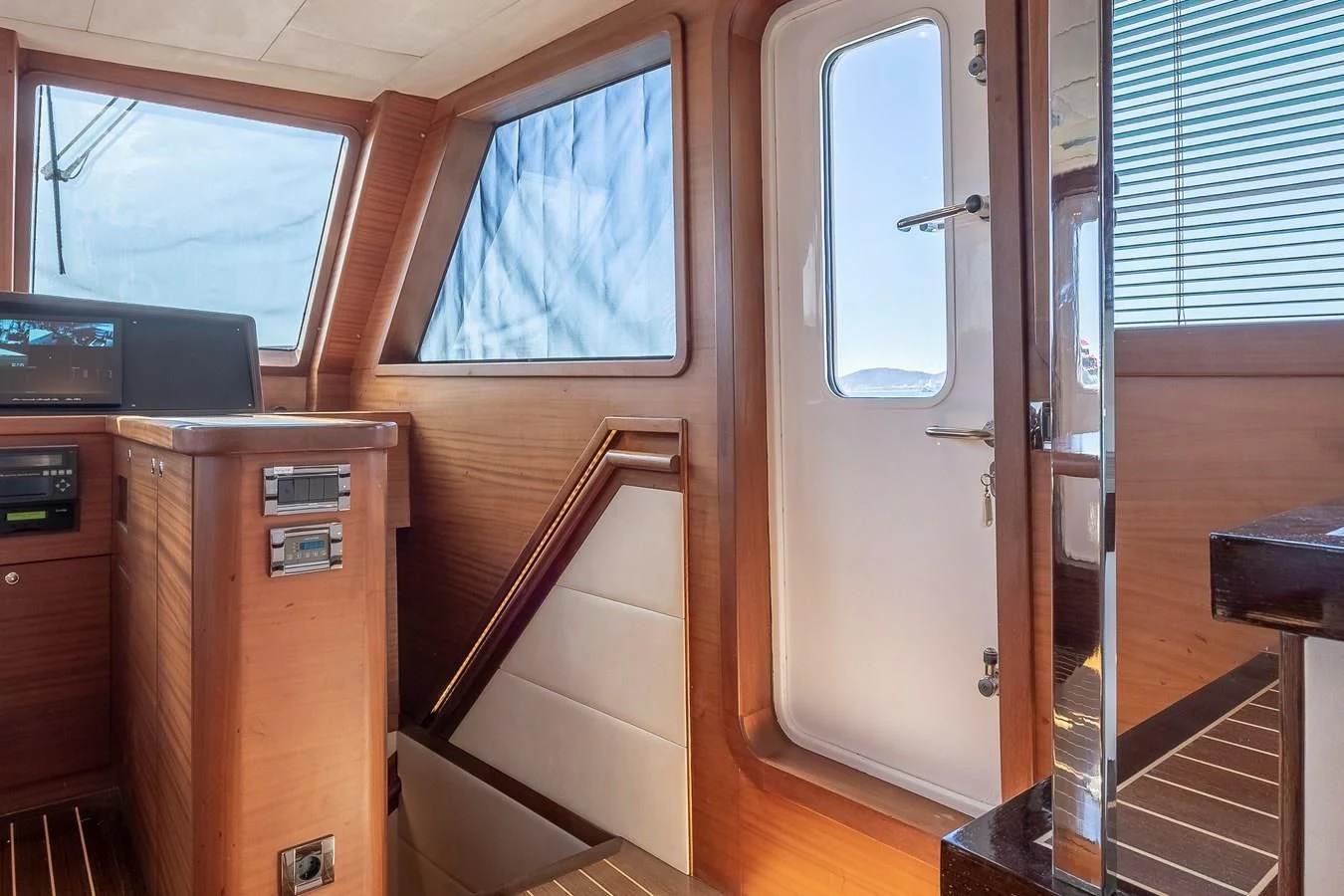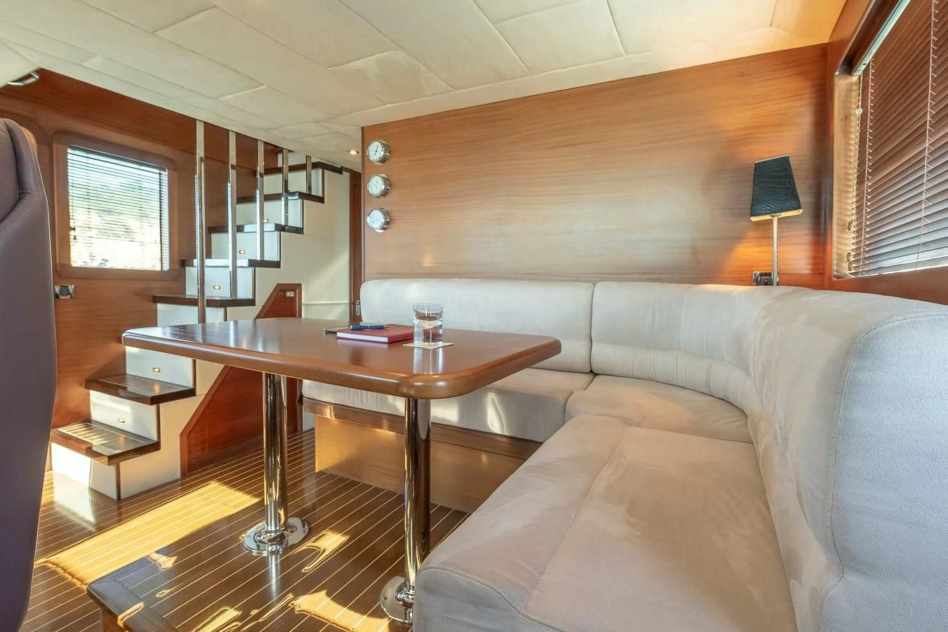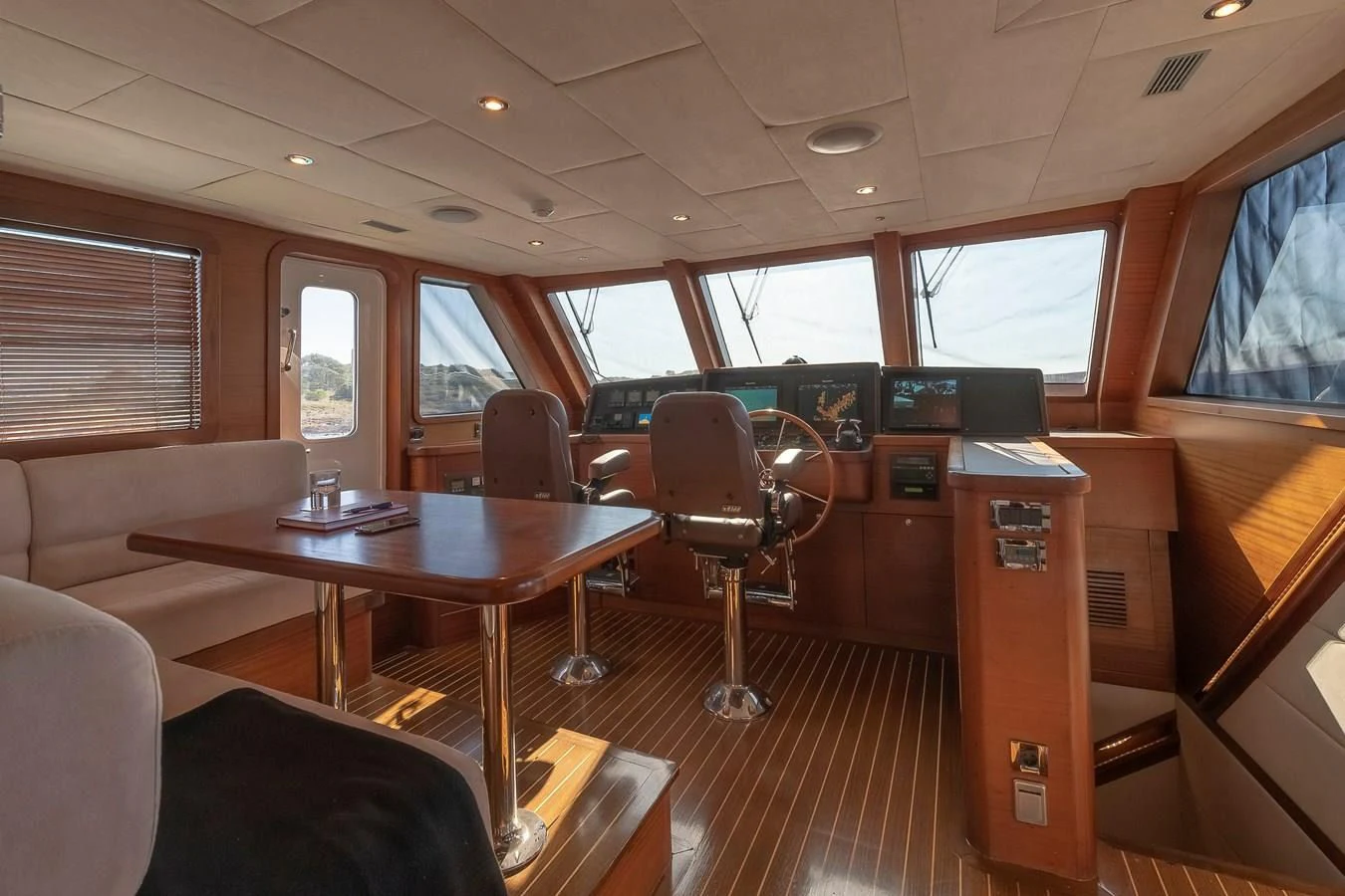 MAXMARA showcases an elegantly styled interior with nautical touches and is adorned with beautiful teak and Alcantara leather wall coverings and teak flooring. The yacht’s interior offers a warm, homelike ambiance featuring an abundance of natural light and plush furnishings. The motor yacht welcomes six guests in three nicely appointed staterooms. She features a master suite with a double bed, a VIP stateroom with a double bed and a twin-bed stateroom. Also, the yacht has one crew cabin.