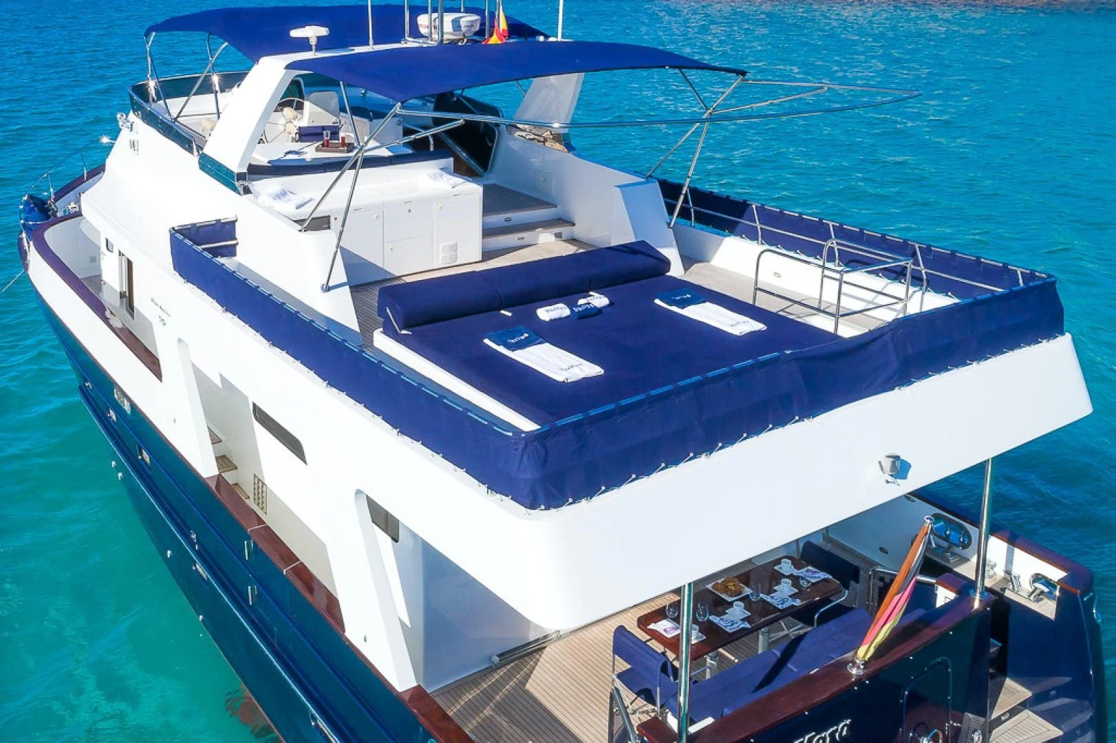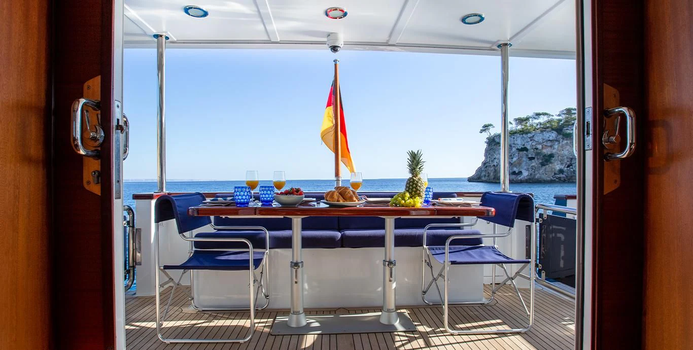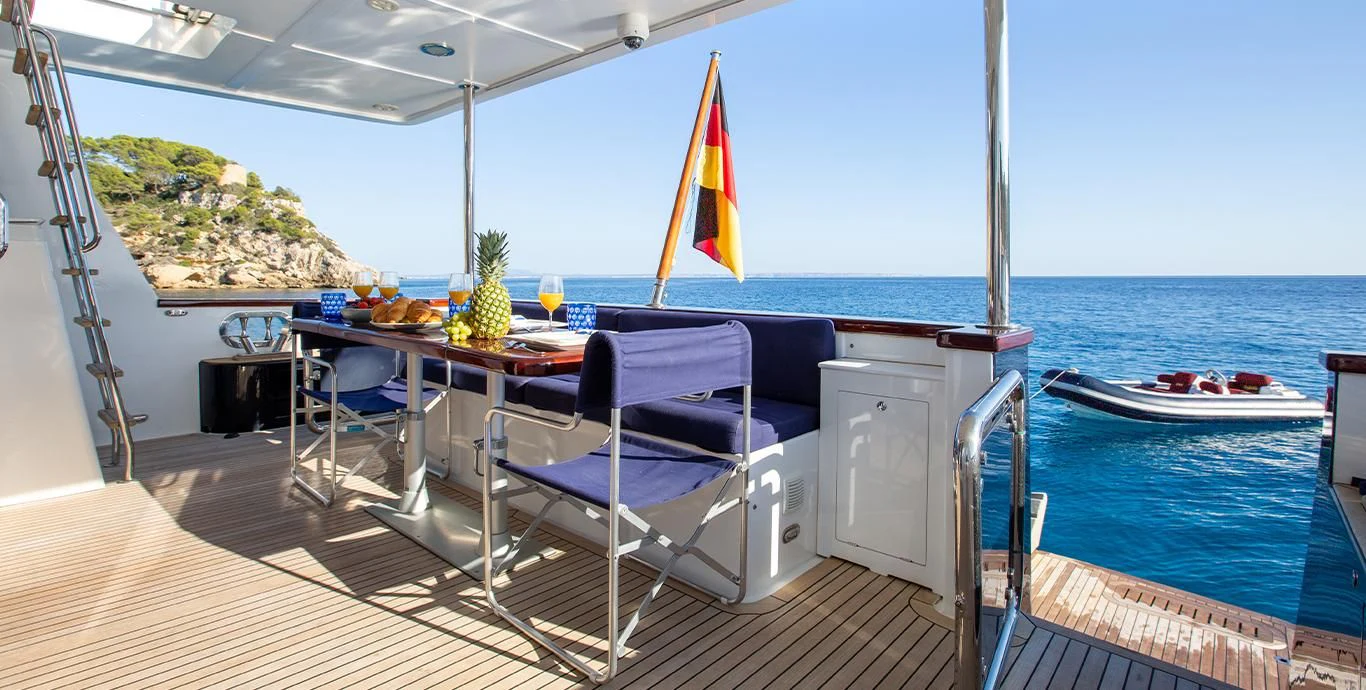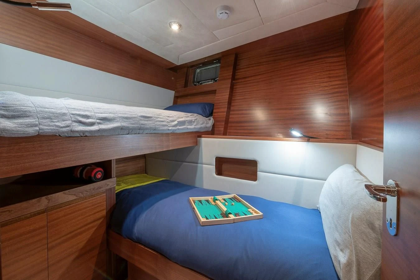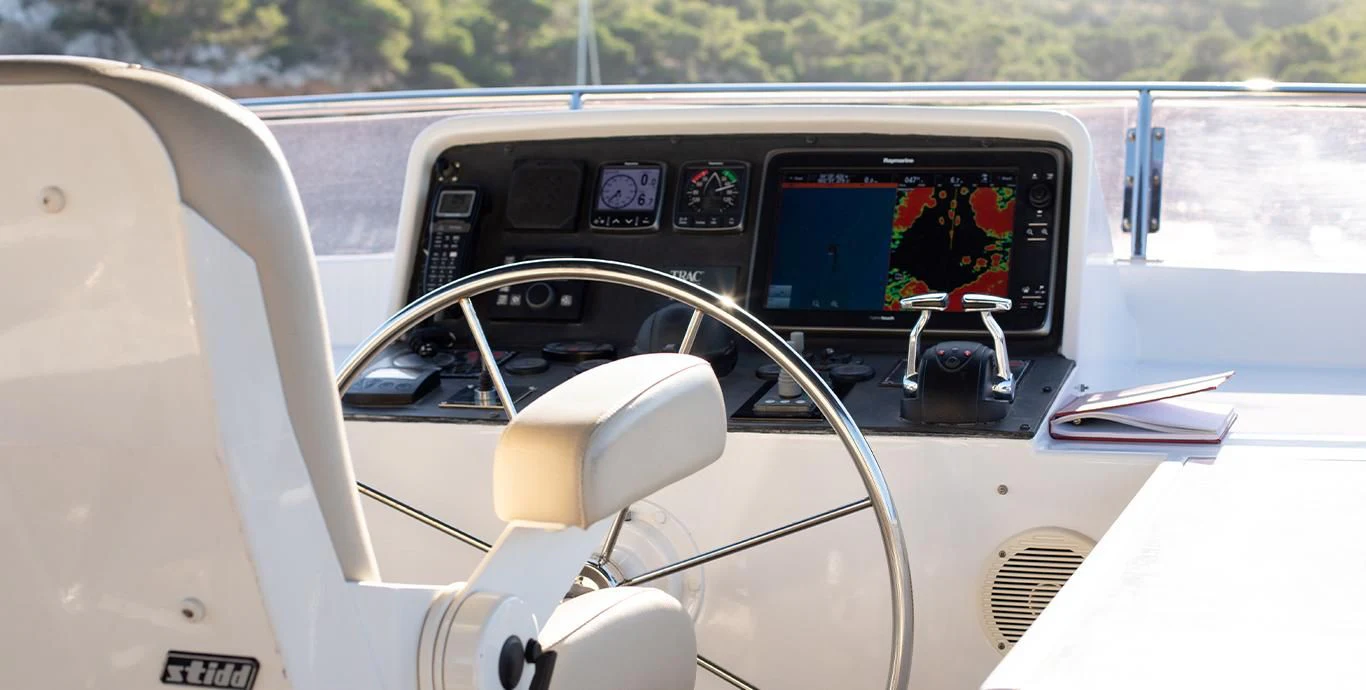 MAXMARA showcases an elegantly styled interior with nautical touches and is adorned with beautiful teak and Alcantara leather wall coverings and teak flooring. The yacht’s interior offers a warm, homelike ambiance featuring an abundance of natural light and plush furnishings. The motor yacht welcomes six guests in three nicely appointed staterooms. She features a master suite with a double bed, a VIP stateroom with a double bed and a twin-bed stateroom. Also, the yacht has one crew cabin.