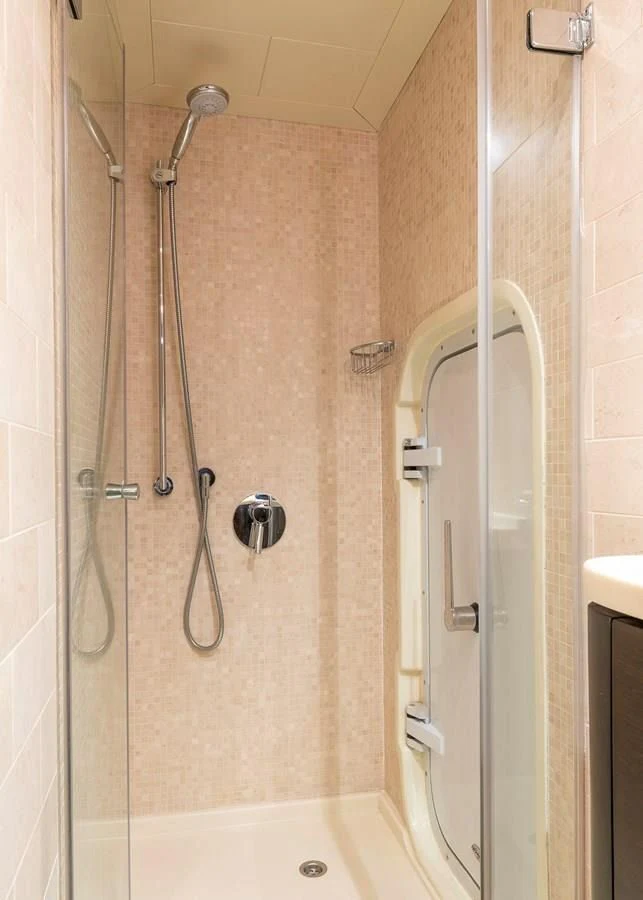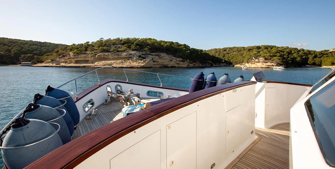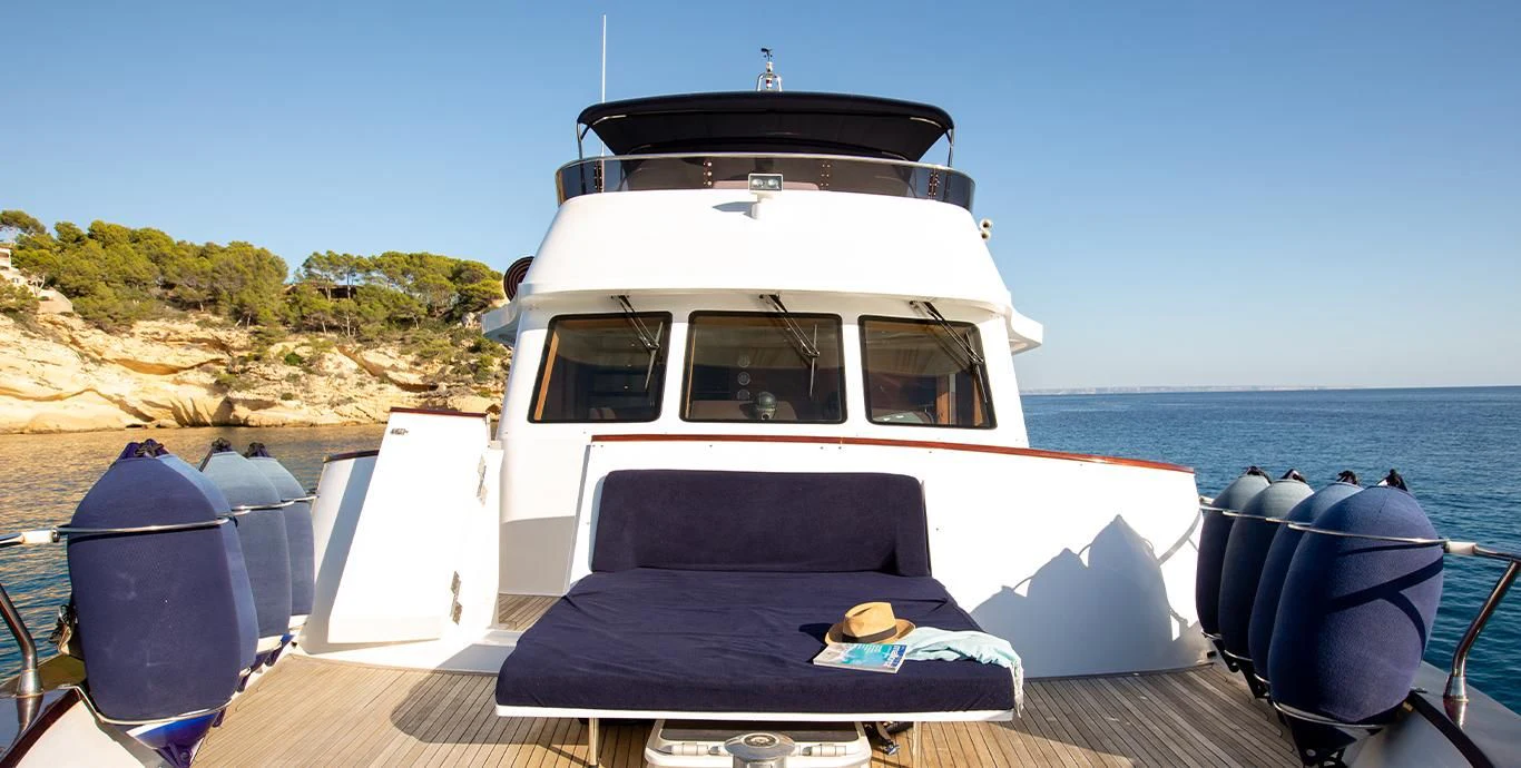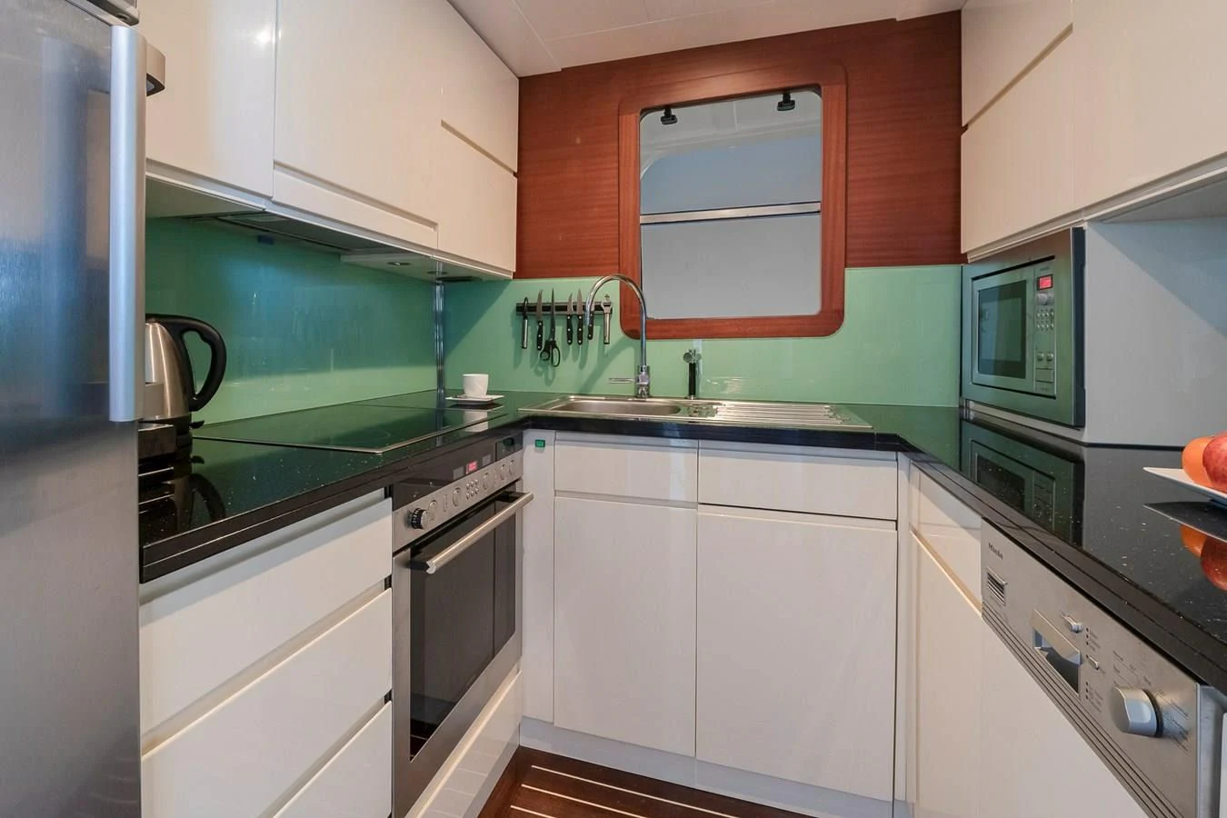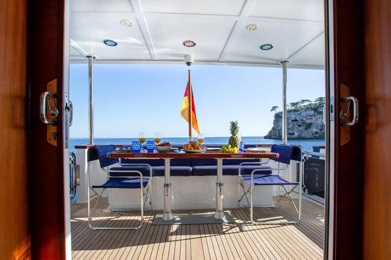 MAXMARA showcases an elegantly styled interior with nautical touches and is adorned with beautiful teak and Alcantara leather wall coverings and teak flooring. The yacht’s interior offers a warm, homelike ambiance featuring an abundance of natural light and plush furnishings. The motor yacht welcomes six guests in three nicely appointed staterooms. She features a master suite with a double bed, a VIP stateroom with a double bed and a twin-bed stateroom. Also, the yacht has one crew cabin.