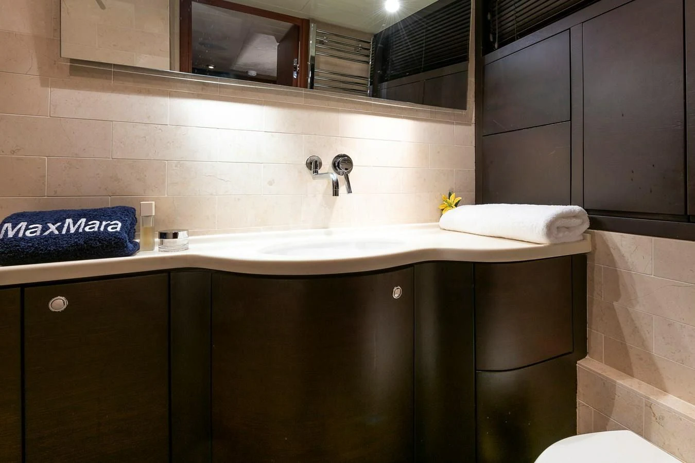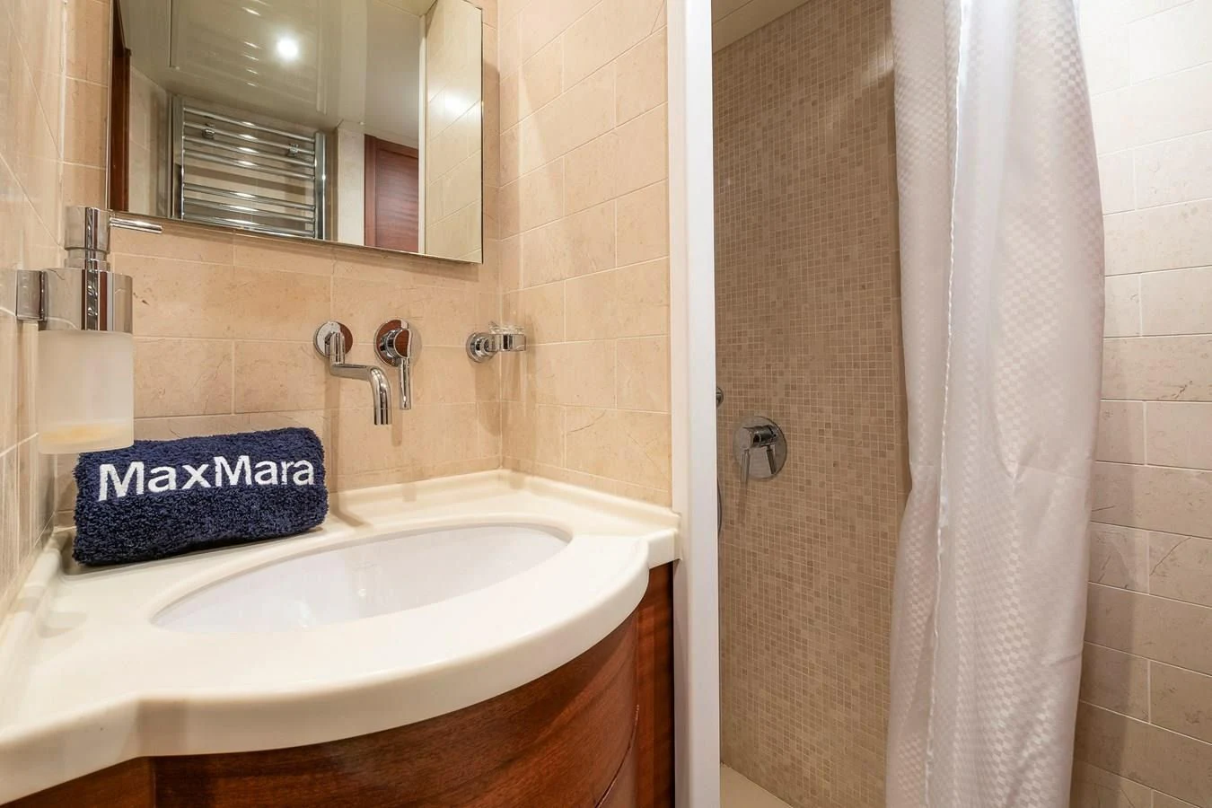The yacht’s wide beam gives her stability as well as enough deck space to not feel any restrictions or movements. In addition, MAXMARA is equipped with Zero-Speed stabilizers, which offer increased comfort to all aboard.