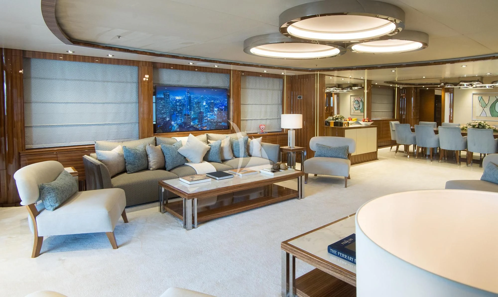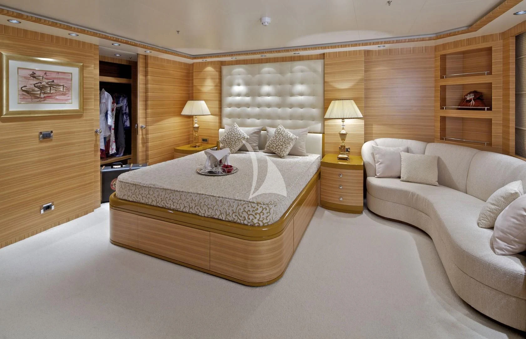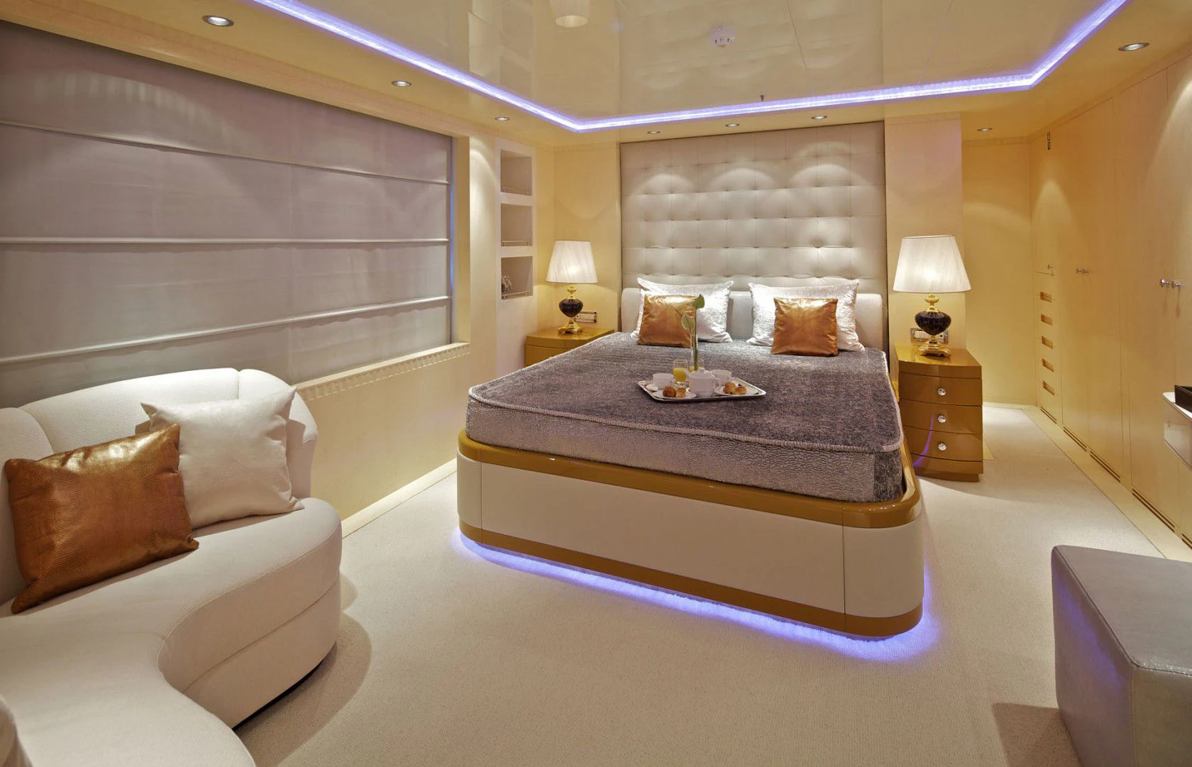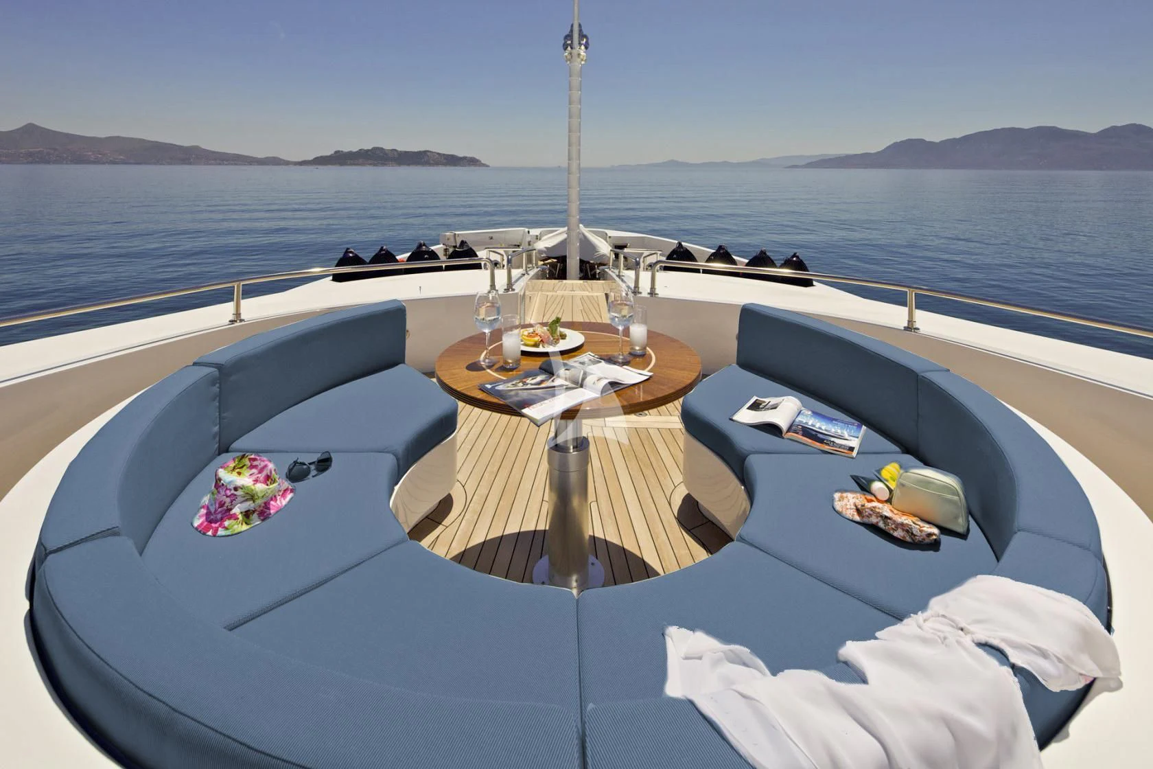 MIA RAMA accommodates up to 12 guests across 7 well-appointed cabins, including four doubles, two twins, and one convertible cabin, offering flexible arrangements for families or mixed charter groups. The interior is complemented by a professional crew of 12, ensuring attentive service and smooth operations.