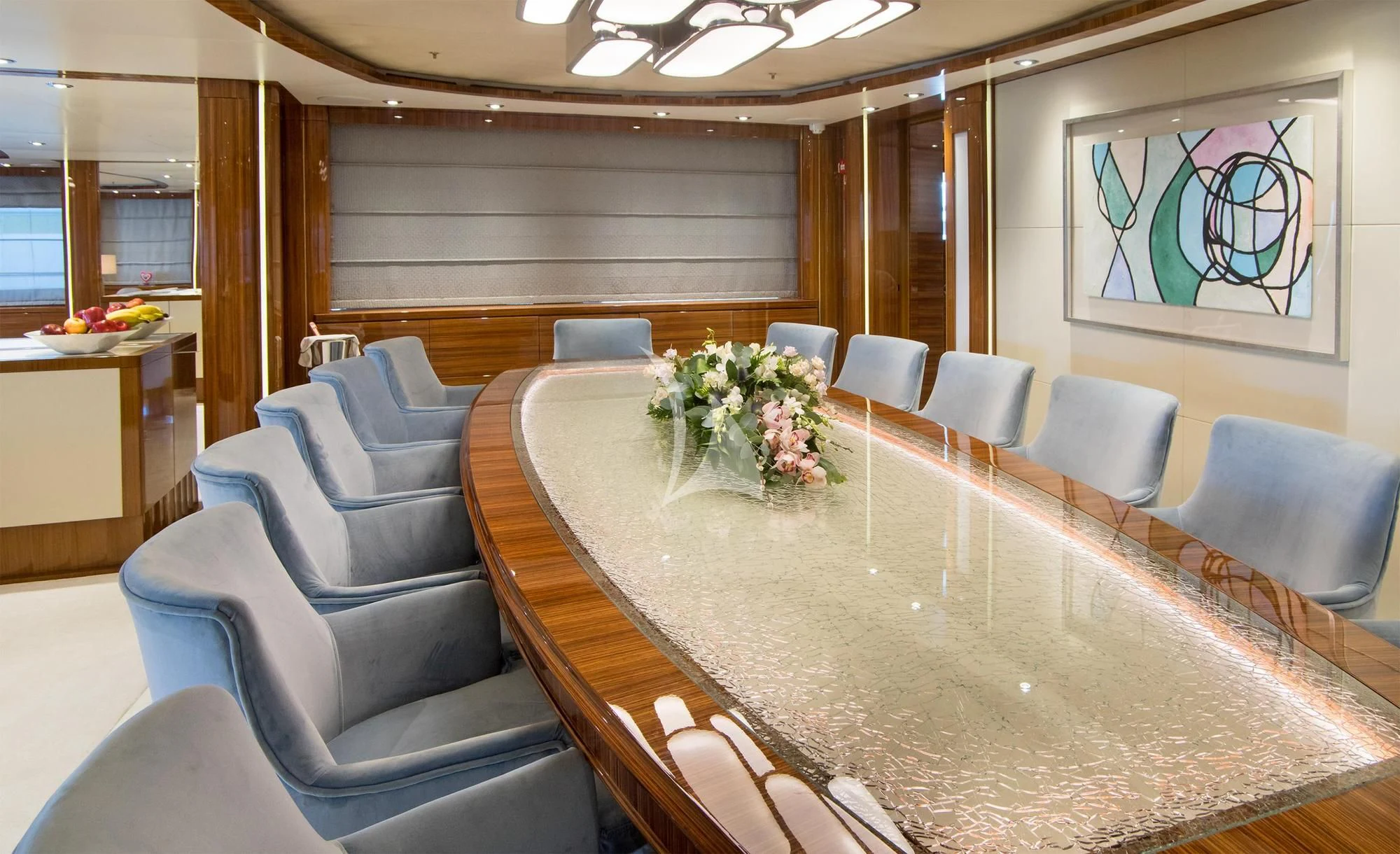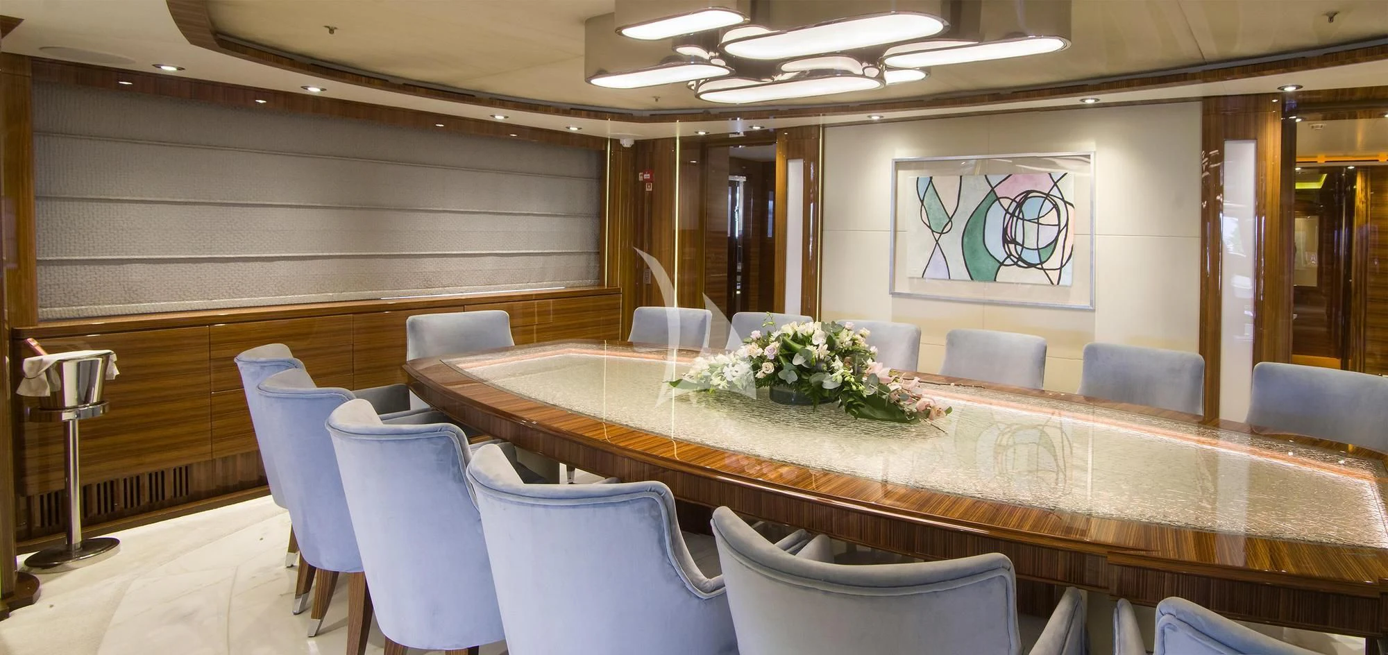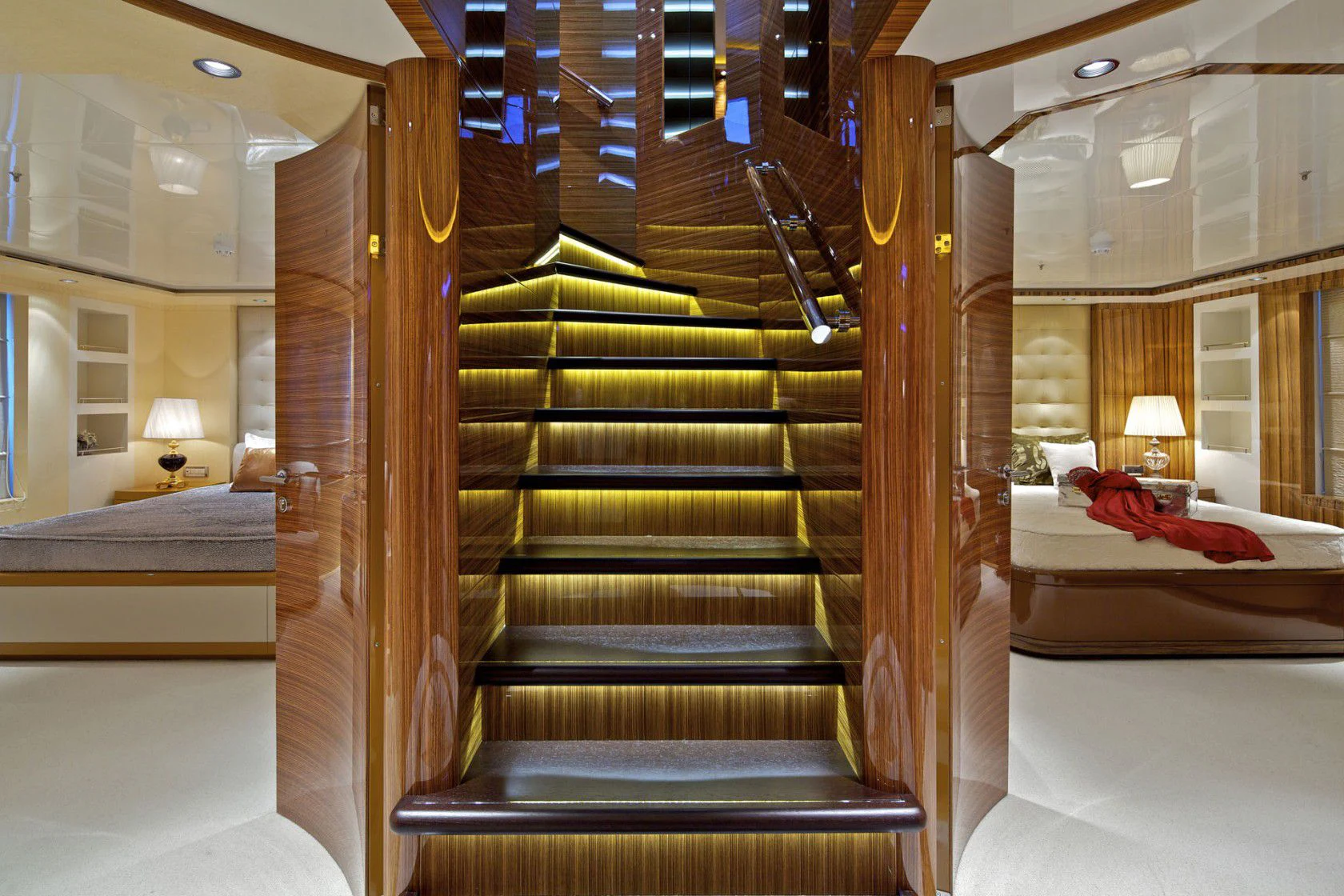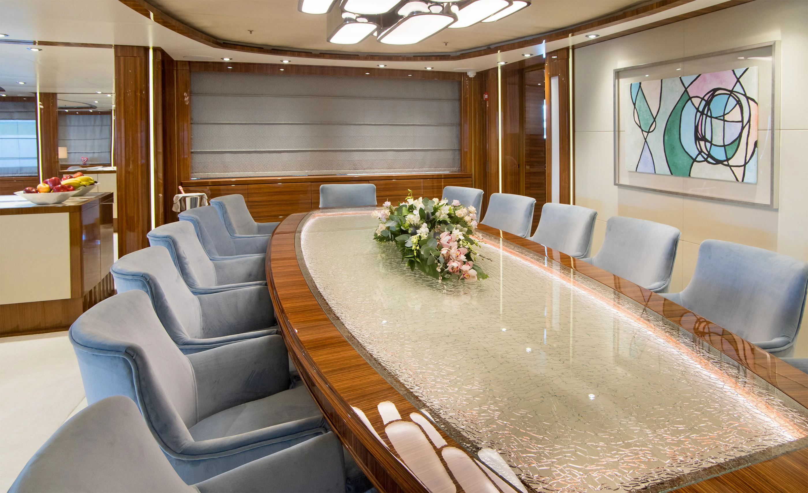 MIA RAMA accommodates up to 12 guests across 7 well-appointed cabins, including four doubles, two twins, and one convertible cabin, offering flexible arrangements for families or mixed charter groups. The interior is complemented by a professional crew of 12, ensuring attentive service and smooth operations.