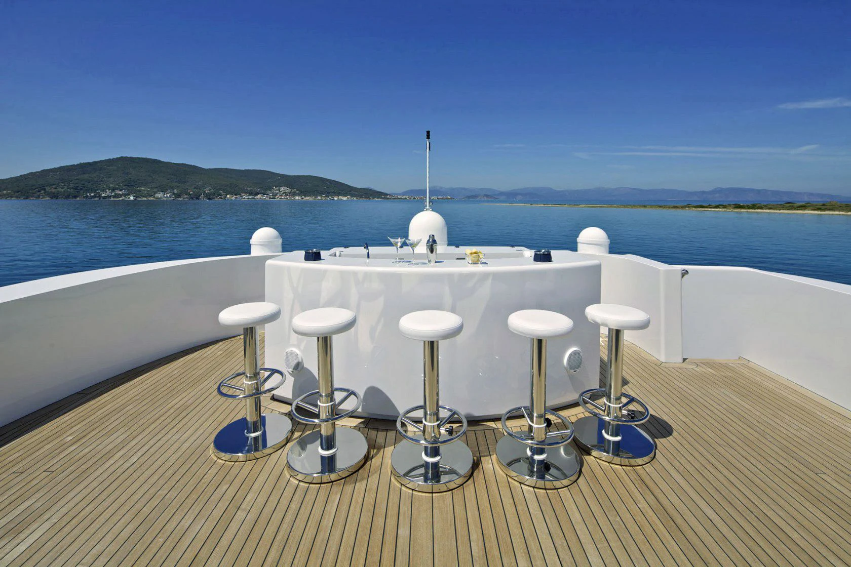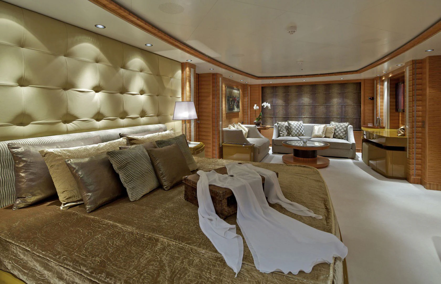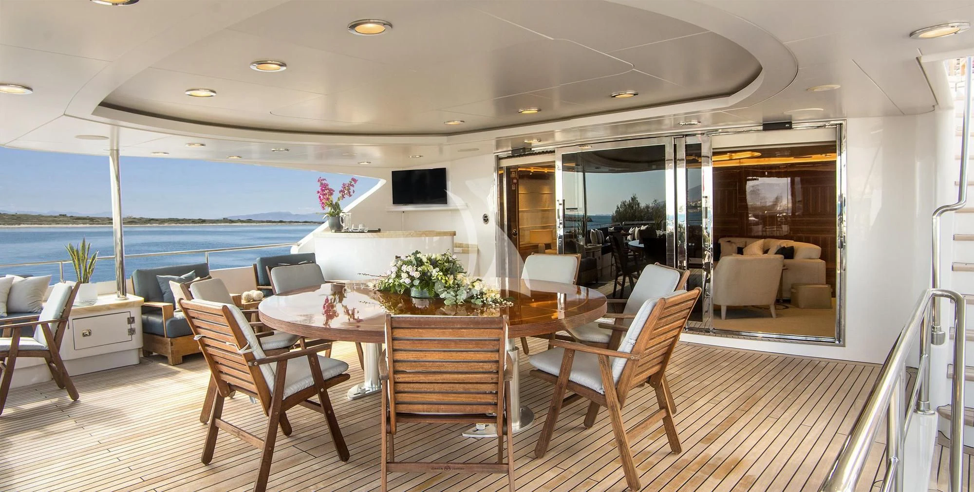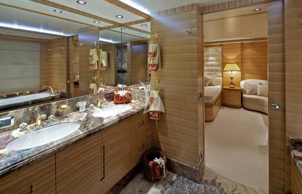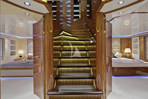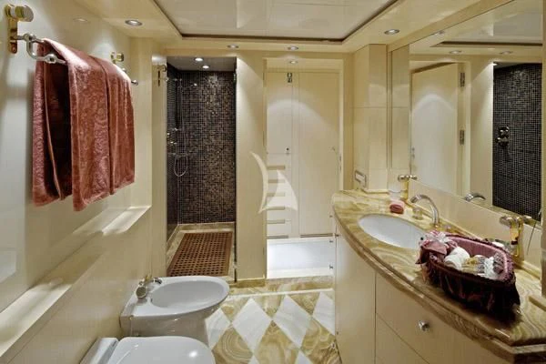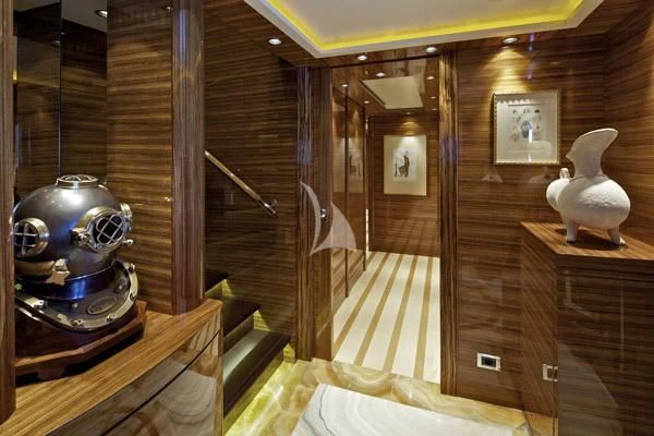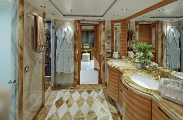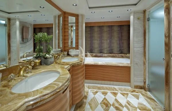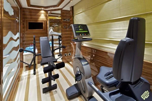 Outdoor living is a highlight, with expansive deck spaces, a deck jacuzzi, and multiple lounging and dining areas spread across her tri-deck layout. Comfort is further enhanced by air conditioning and stabilisers both underway and at anchor, delivering a smooth experience in a wide range of conditions. A dedicated gym/exercise area supports an active lifestyle onboard.