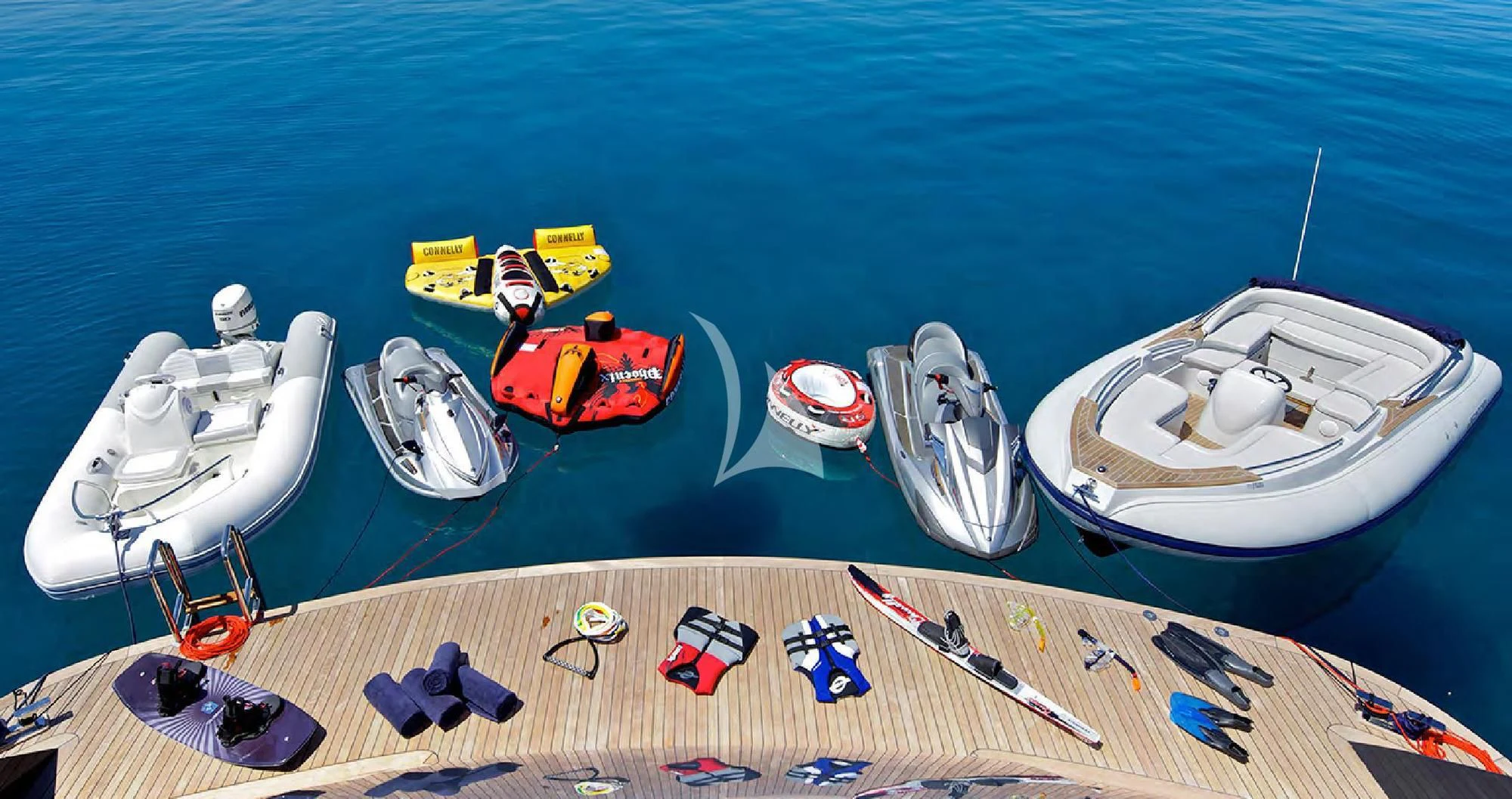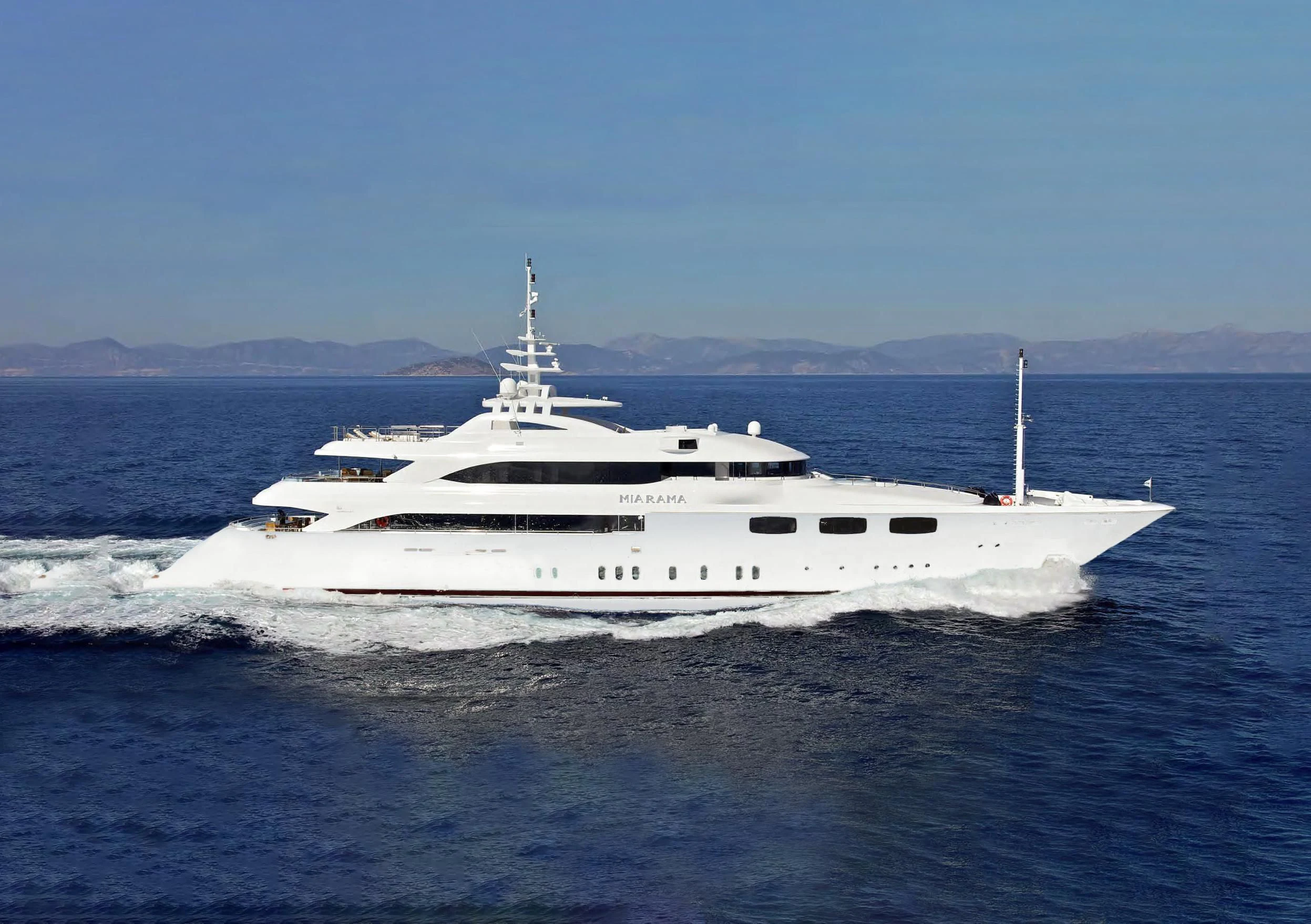 Powered by twin CAT 3512 B engines, MIA RAMA cruises comfortably at 14.5 knots, with an economical speed of 12.5 knots. A selection of tenders and water toys, including jet skis, completes her versatile and appealing profile.
