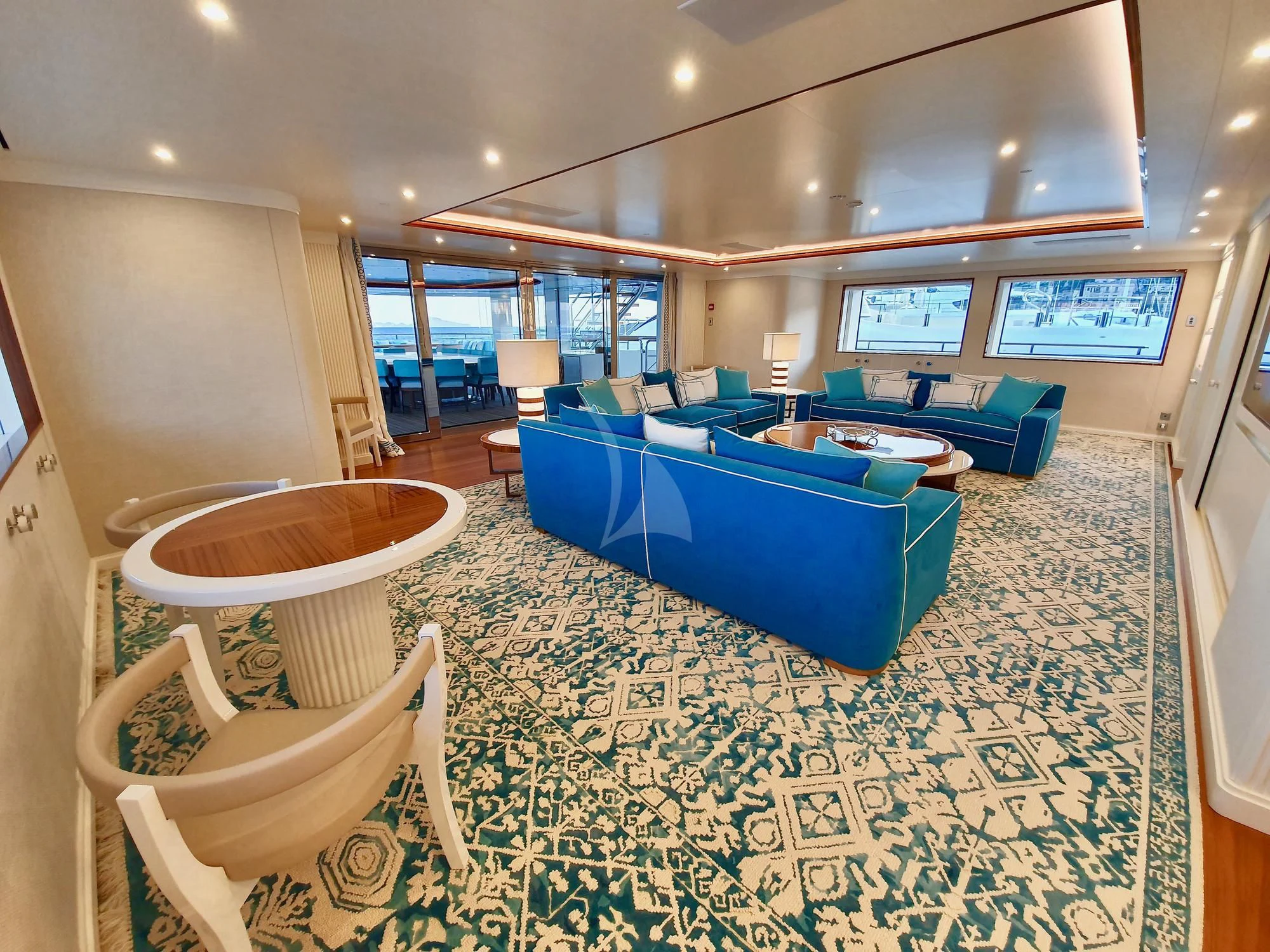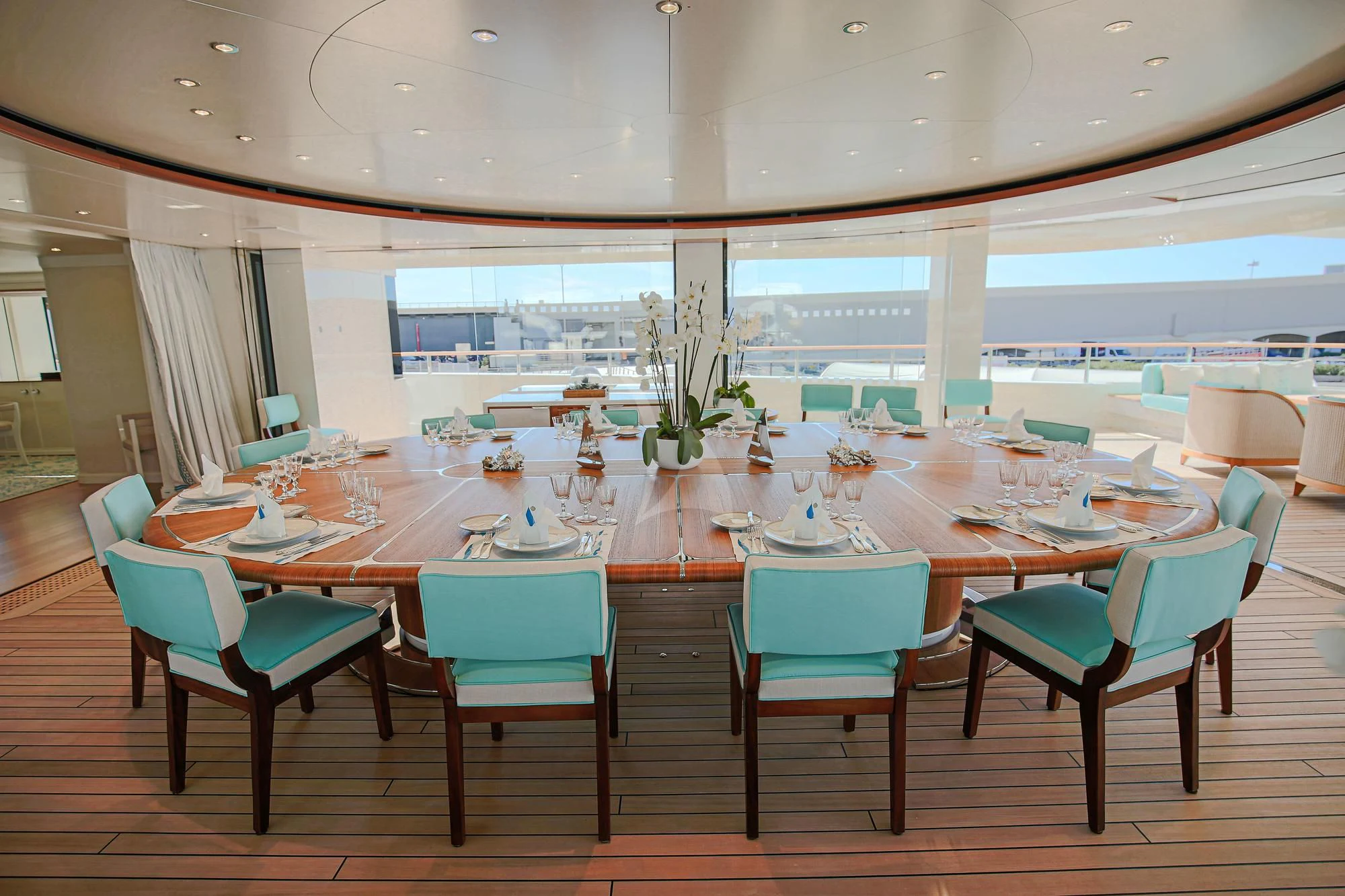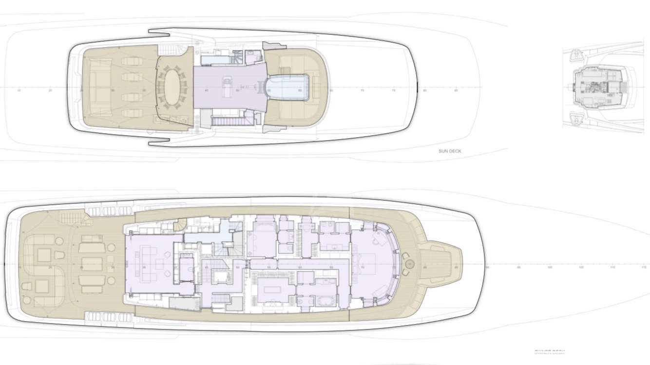 An absolute marvel in terms of exterior design, MIMTEE's broad beam stretches to an impressive 45 feet (13.5 meters), providing expansive deck areas for relaxation and entertainment. The sundeck beckons with its sun-drenched lounging spaces where guests can bask in luxury while taking in the panoramic views of the seascape. Alfresco dining areas are seamlessly integrated into her layout, offering divine gastronomic experiences under starlit skies or warm sunshine.