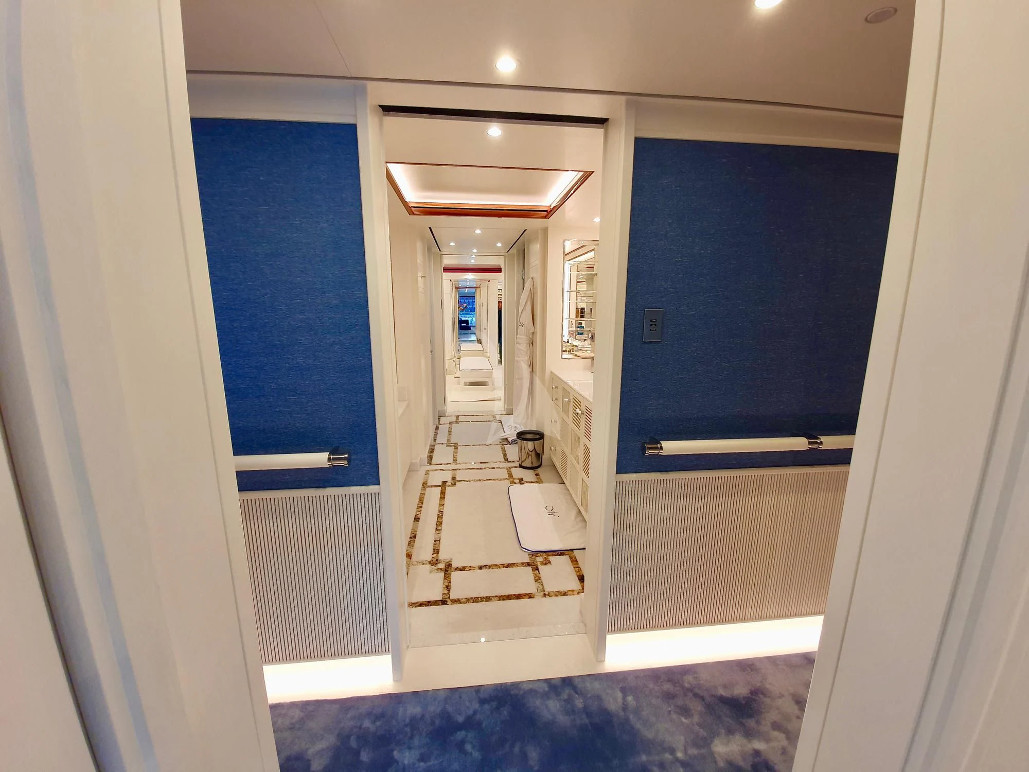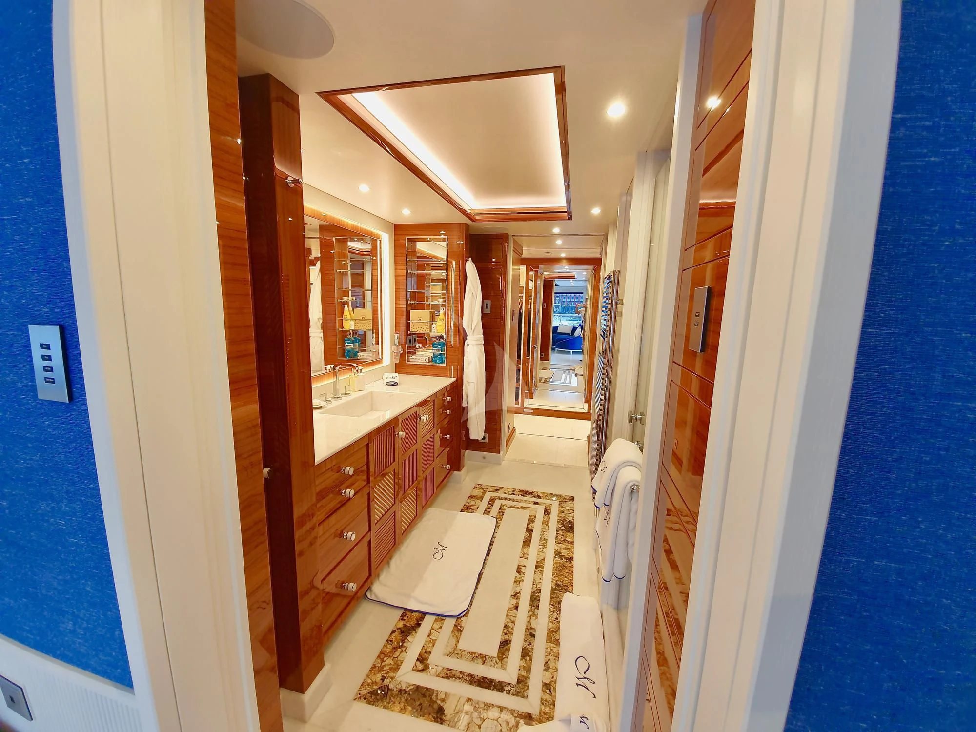 Stepping inside MIMTEE is akin to entering a realm of pure opulence designed by some of the finest interior designers in the industry. Her interiors are characterized by an elegant color palette complemented by unique design elements that exude refined taste and luxury at every turn. This floating palace accommodates up to 12 privileged guests within six sumptuous cabins – each one meticulously crafted to provide unparalleled comfort and tranquility.