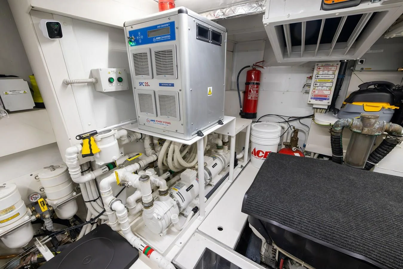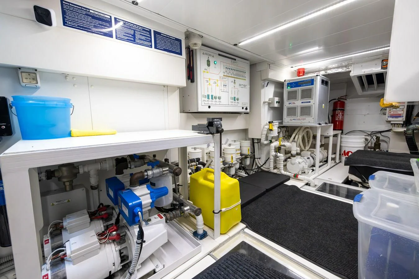 Equipped with Seakeeper, tender garage, hydraulic platform and many other accessories.
