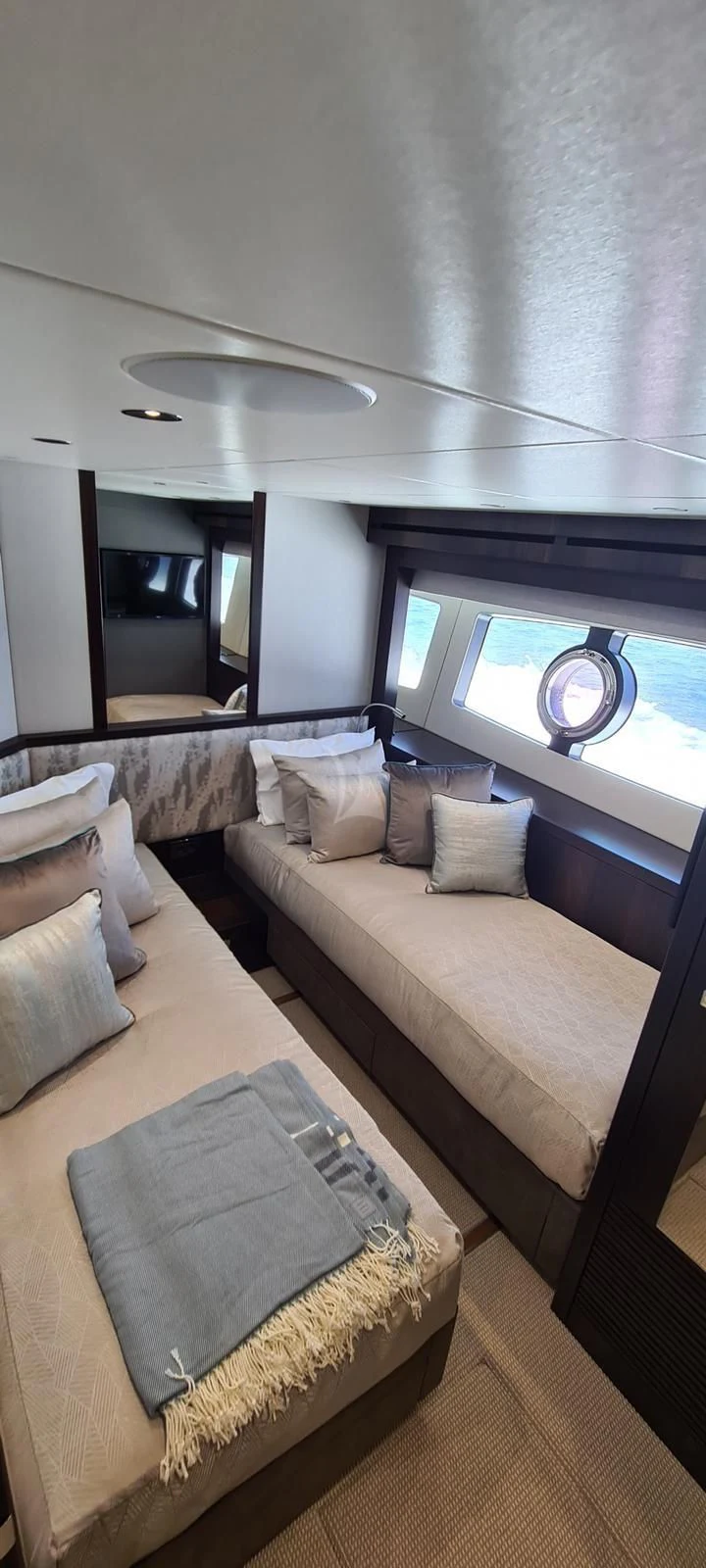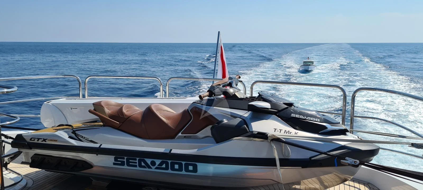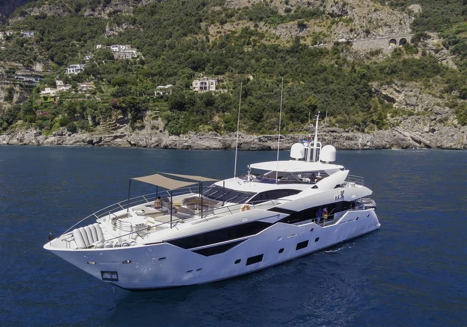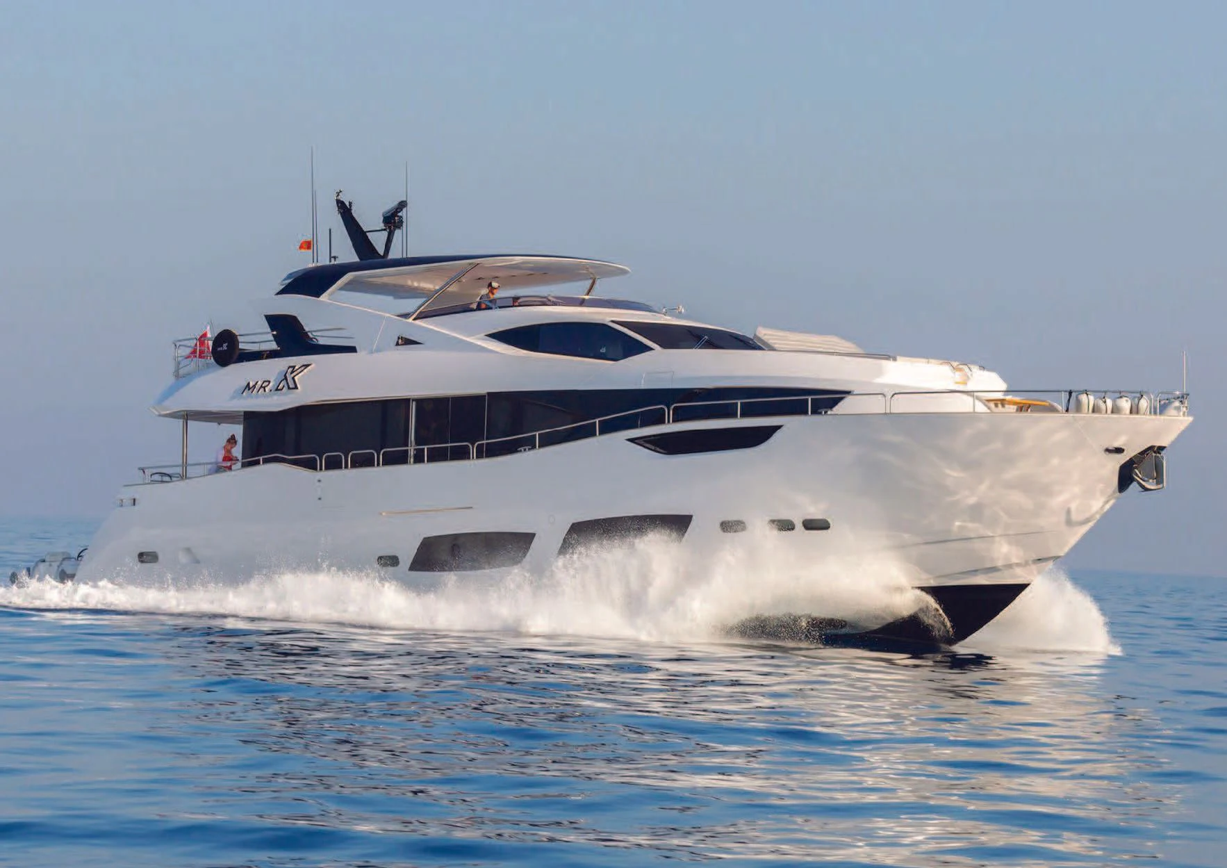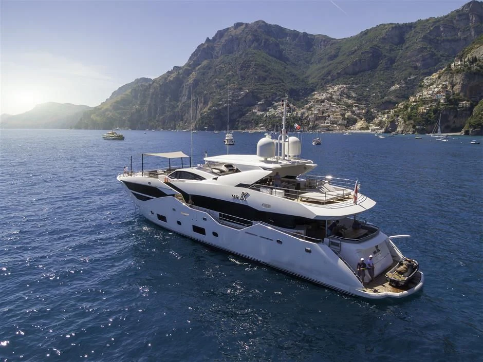 MR. K IRISTON is a 2021 Sunseeker 95, delivered in turnkey condition and commercially compliant for charter or private use. With 5 staterooms, including a full-beam master, she accommodates 10 guests and 4 crew. Offering a cruising speed of 24 knots and a top speed of 26 knots, she features large windows and an opening balcony for a luxurious experience.