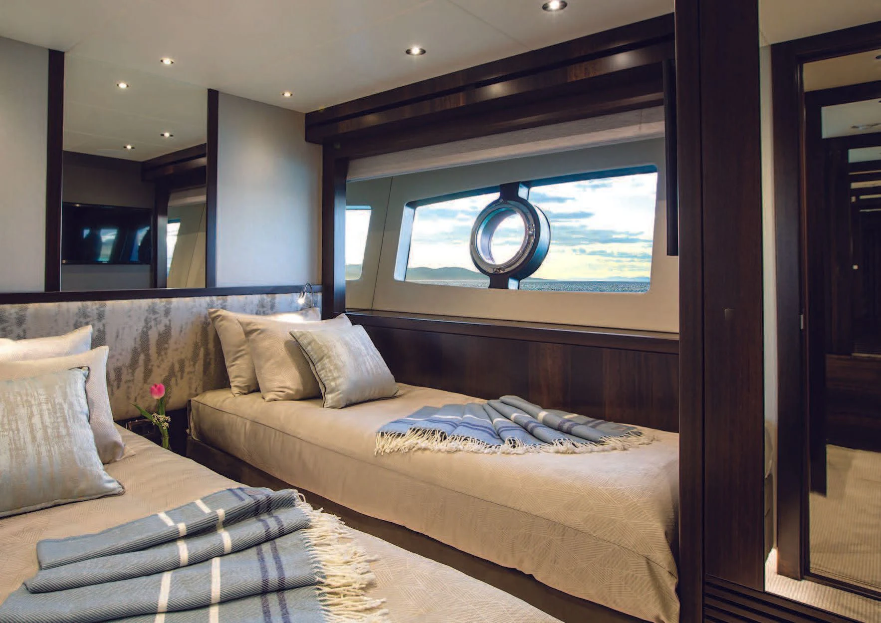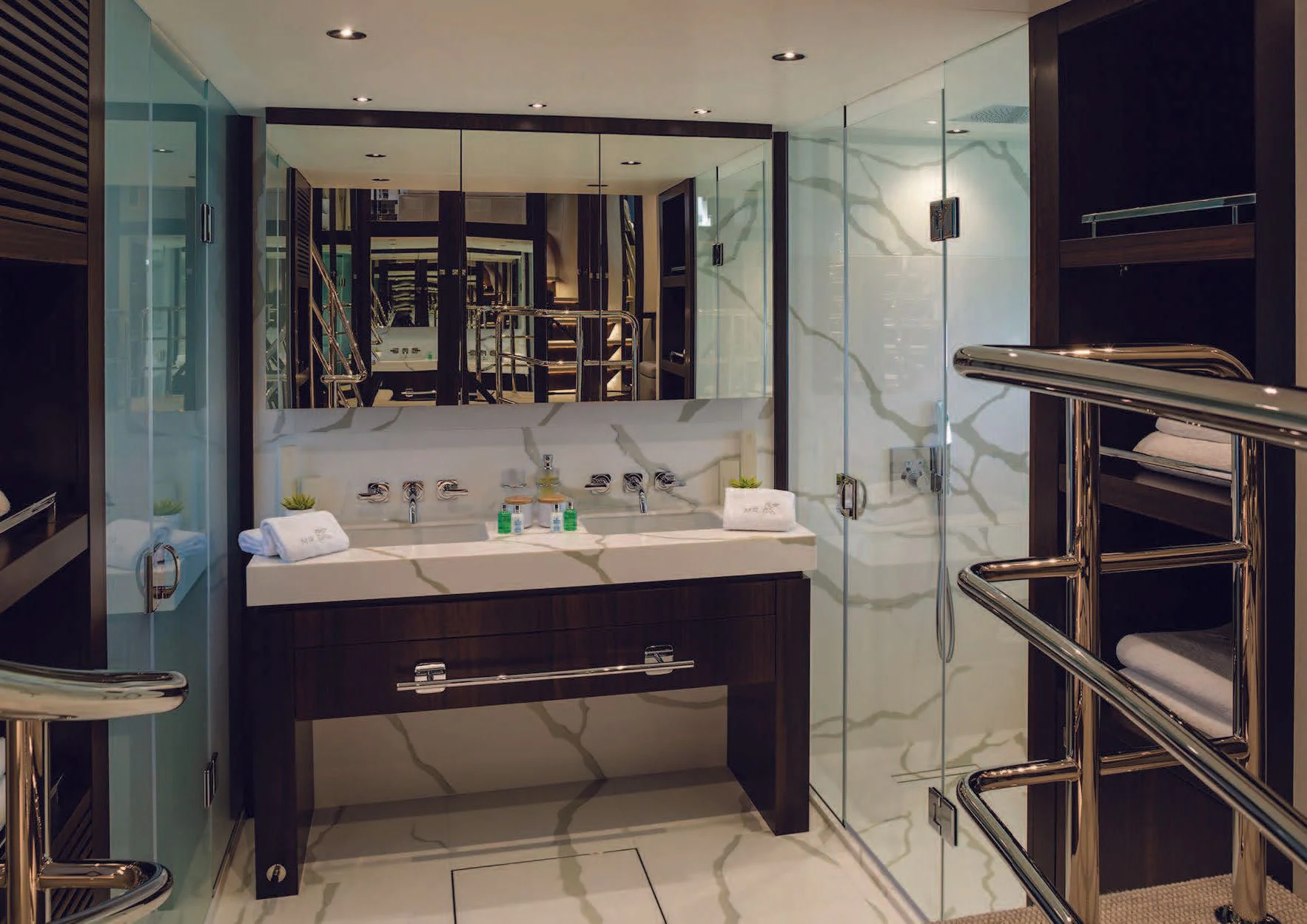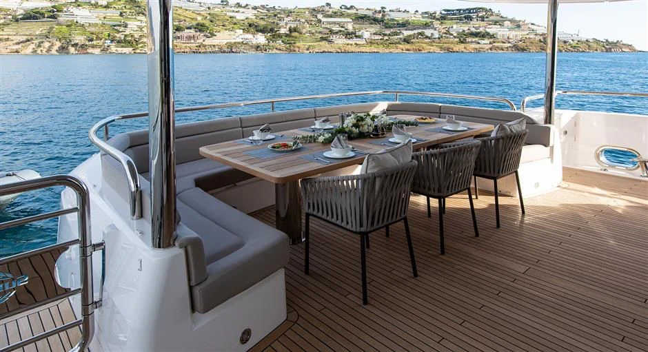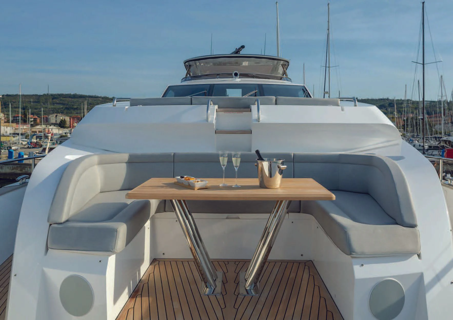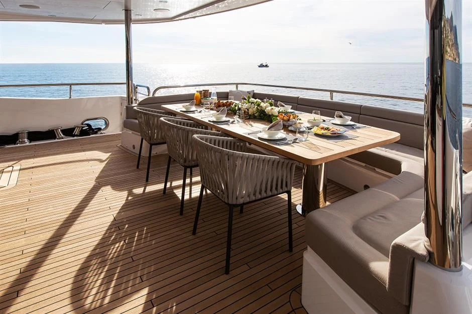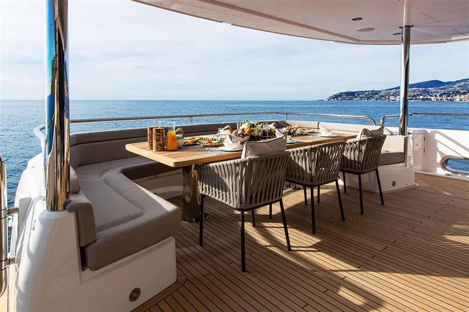 MR. K IRISTON is a 2021 Sunseeker 95, delivered in turnkey condition and commercially compliant for charter or private use. With 5 staterooms, including a full-beam master, she accommodates 10 guests and 4 crew. Offering a cruising speed of 24 knots and a top speed of 26 knots, she features large windows and an opening balcony for a luxurious experience.