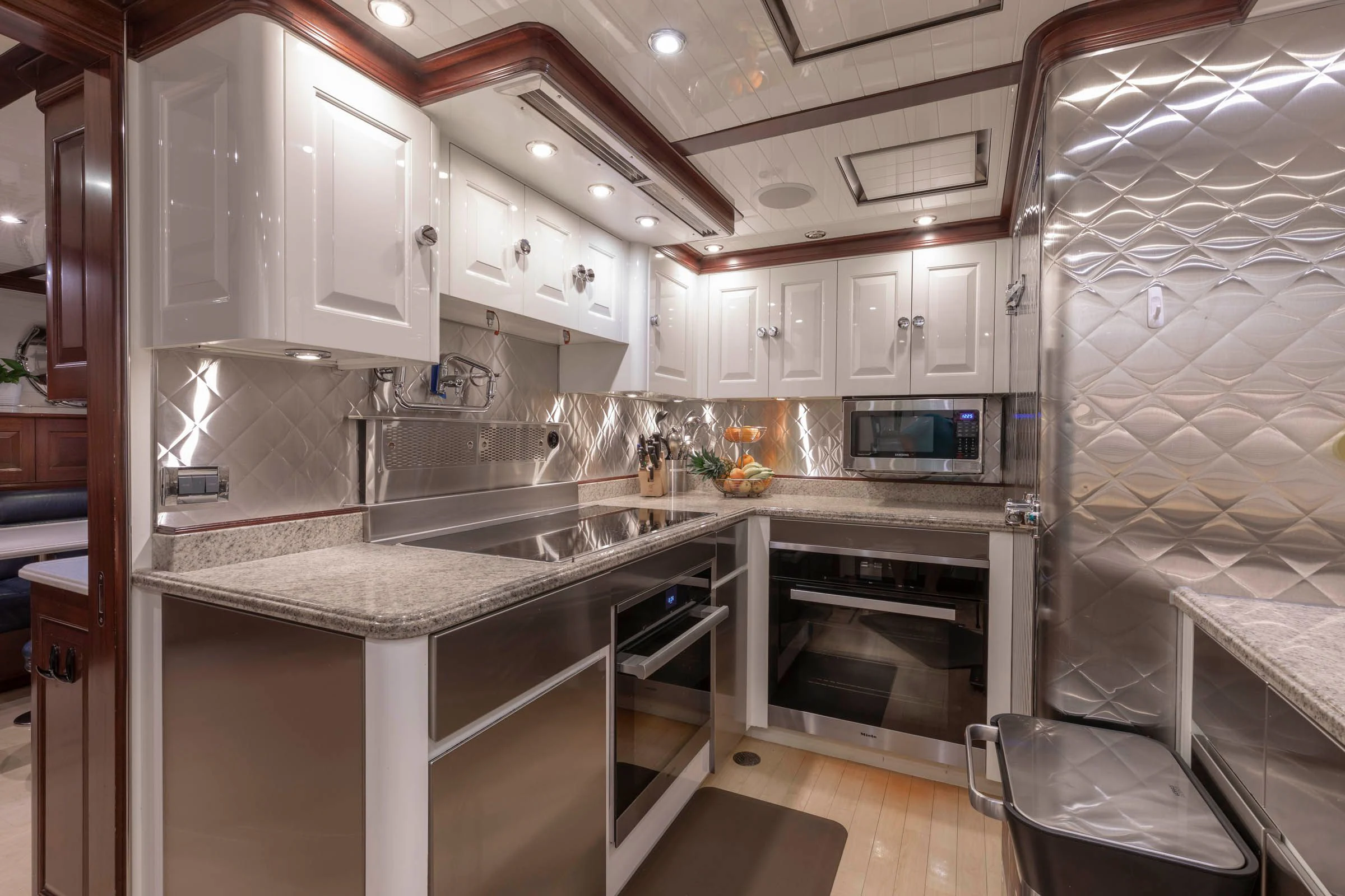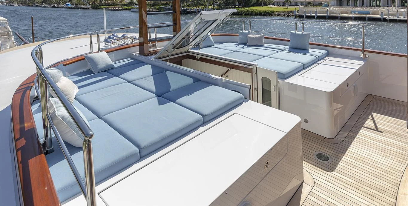 The exterior spaces of NADAN are designed for ultimate relaxation and socializing under the sun or stars. A spacious sundeck invites guests to bask in luxurious comfort, while alfresco dining areas offer exquisite culinary experiences with panoramic views of the surrounding seascape. Notable exterior features include underwater lights that create a mesmerizing nighttime spectacle, as well as a deck Jacuzzi for indulgent soaks with breathtaking vistas.