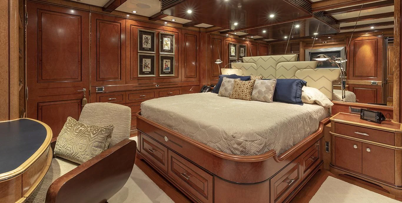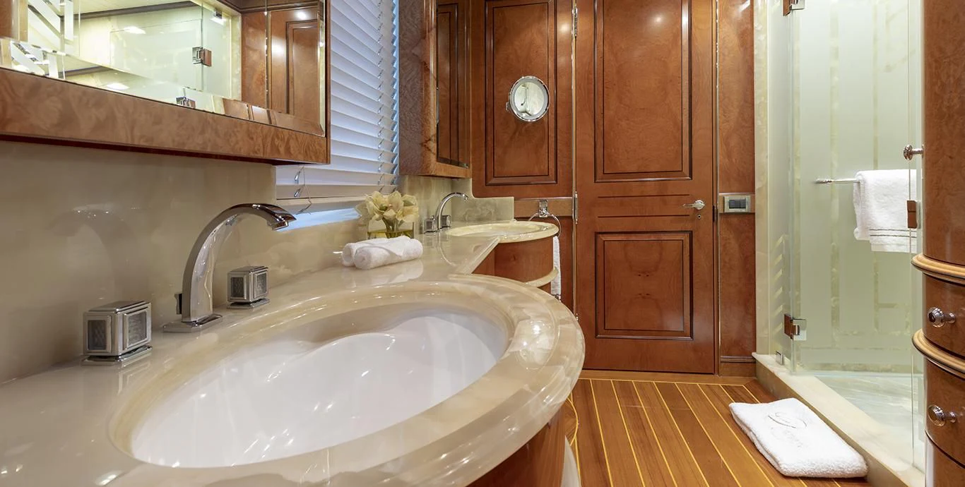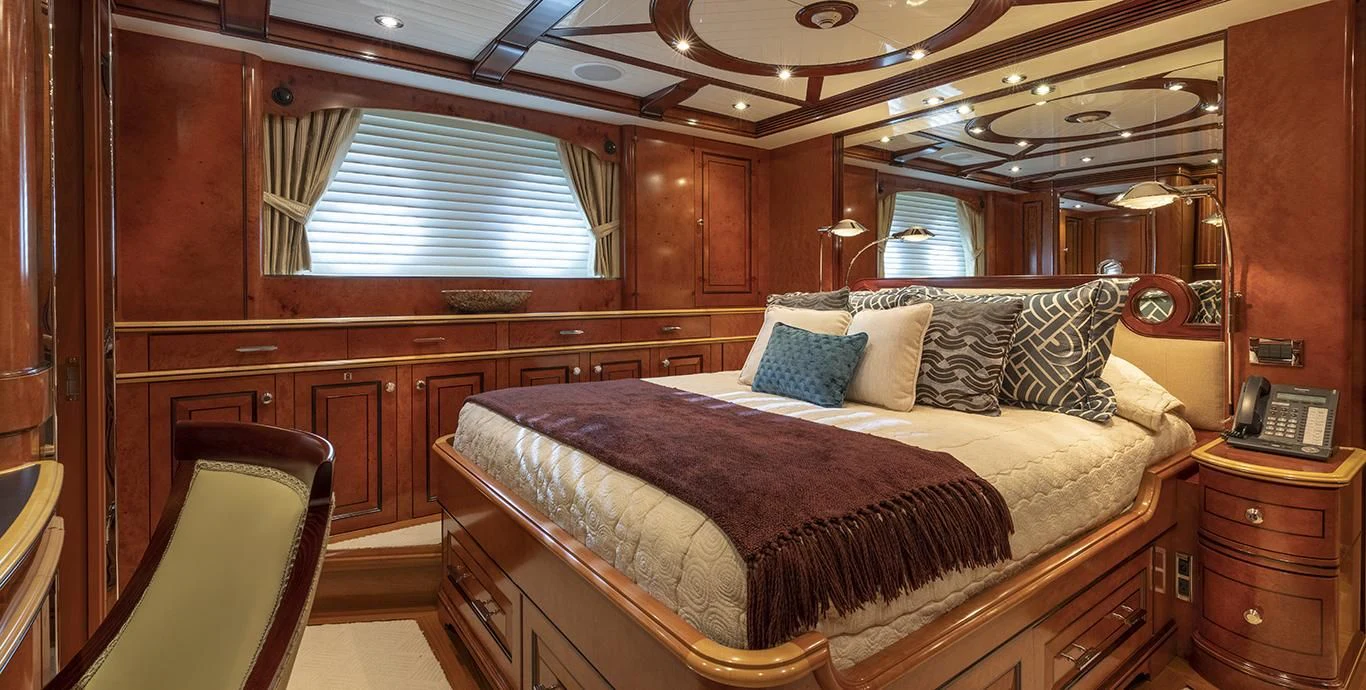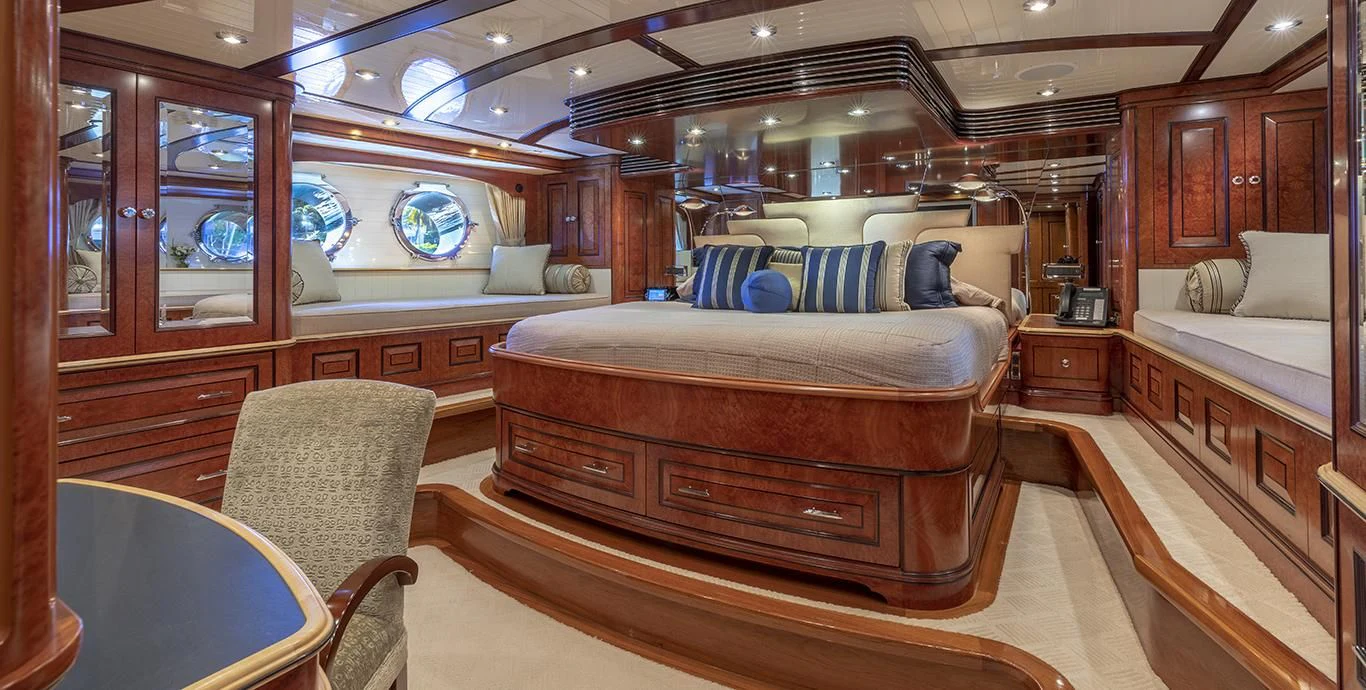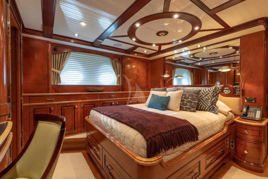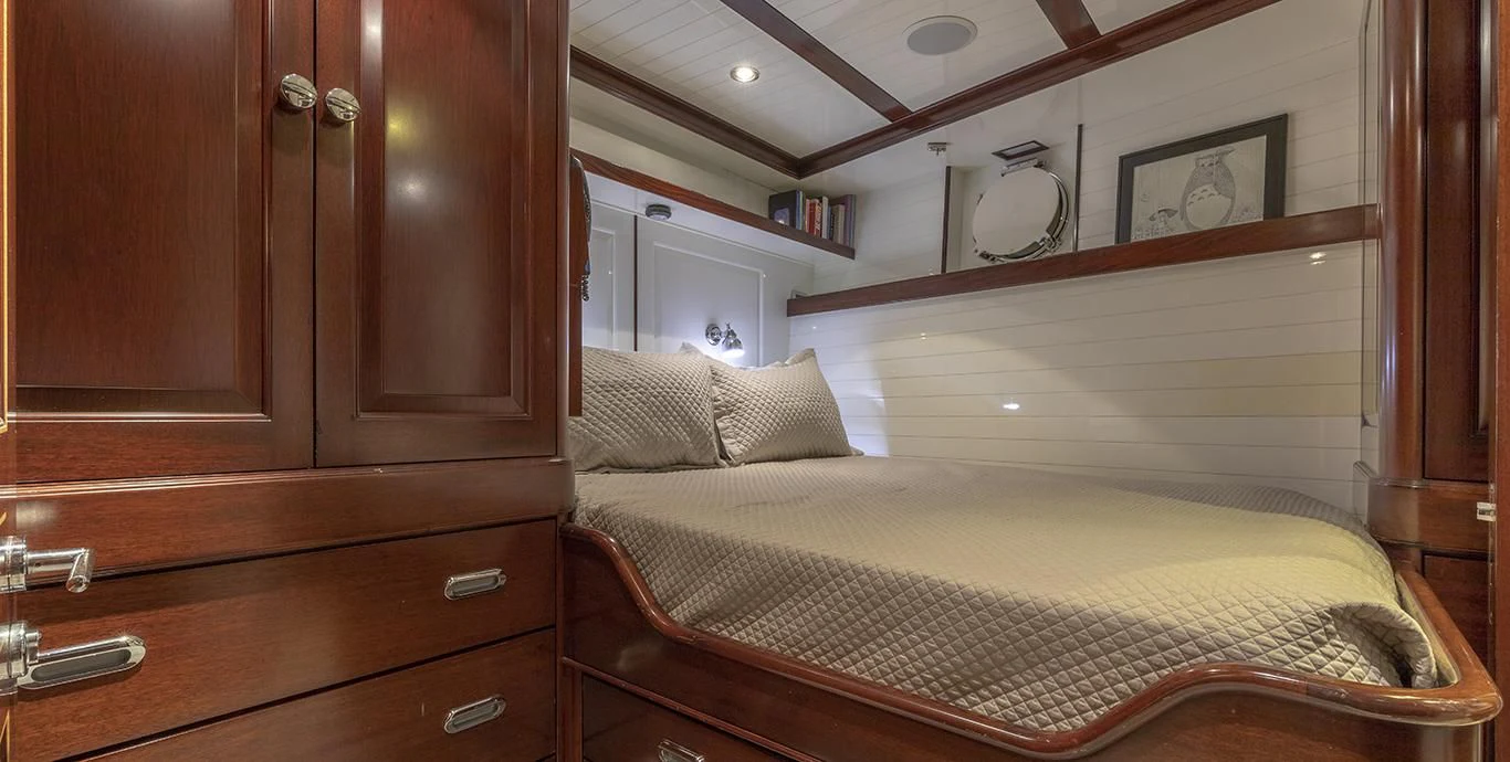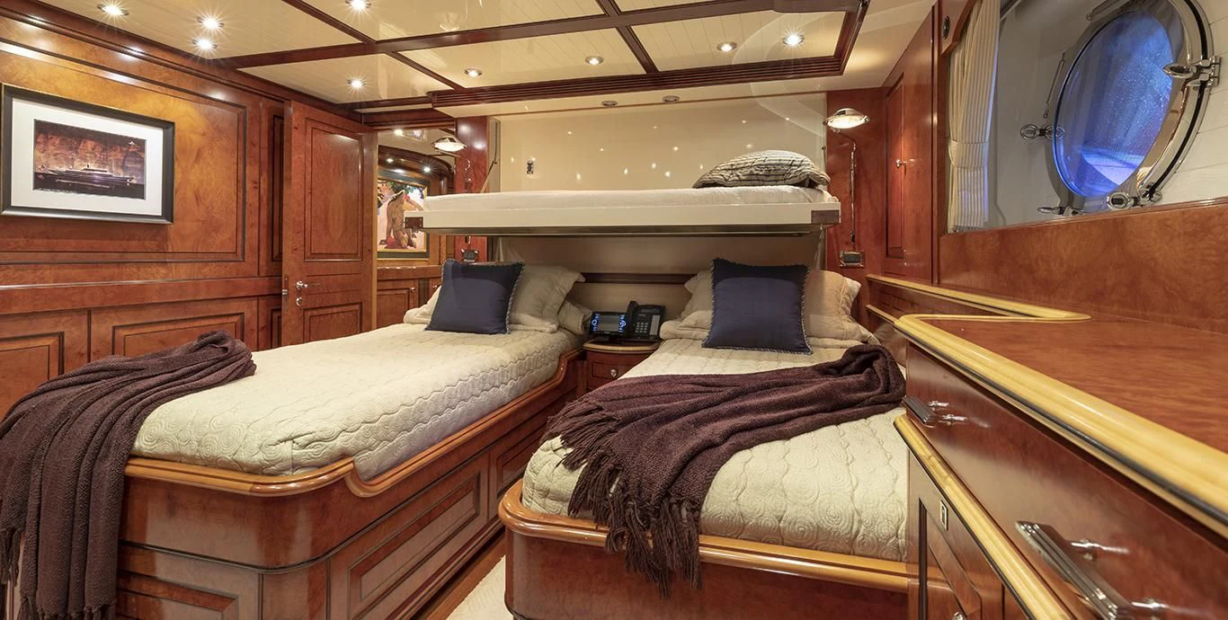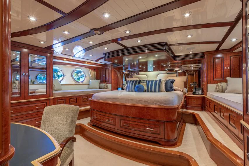 Step inside NADAN and you're welcomed by an interior that exudes refined sophistication. The custom model design integrates style and practicality seamlessly across four cabins that can comfortably accommodate nine guests and seven crew members. Each cabin showcases unique design elements that amplify comfort while retaining an air of understated elegance.
