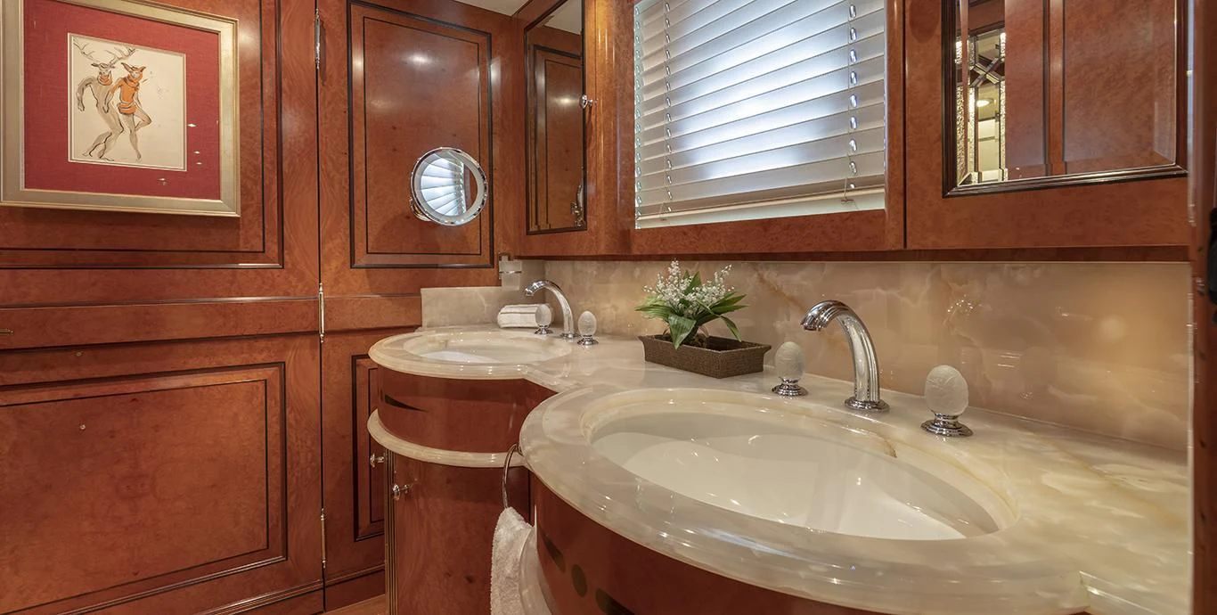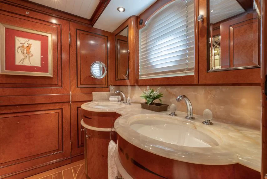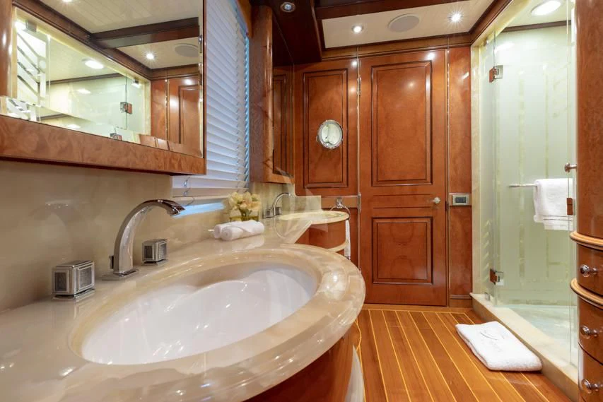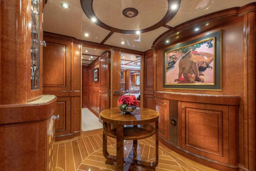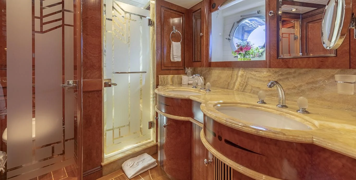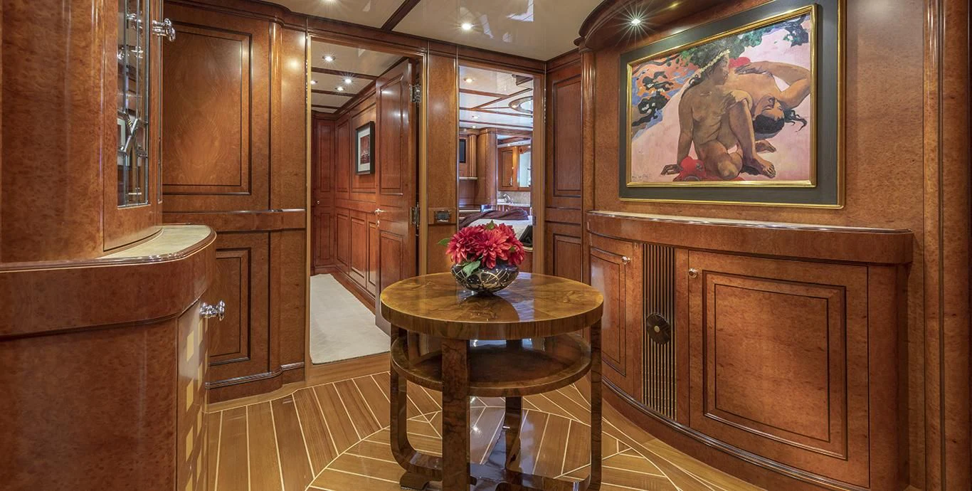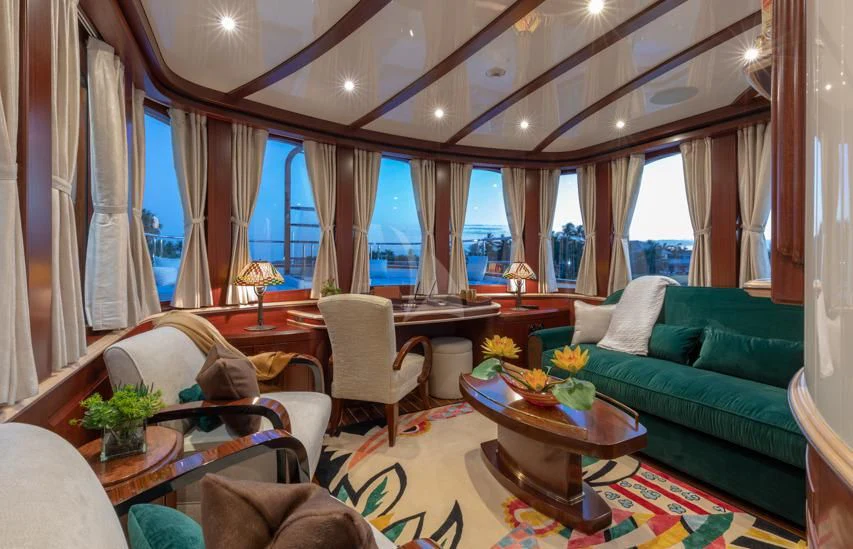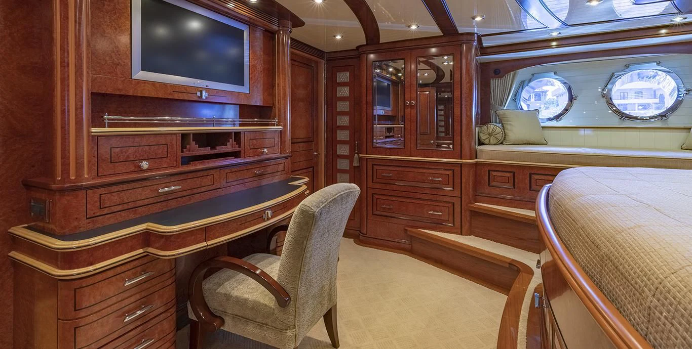 Step inside NADAN and you're welcomed by an interior that exudes refined sophistication. The custom model design integrates style and practicality seamlessly across four cabins that can comfortably accommodate nine guests and seven crew members. Each cabin showcases unique design elements that amplify comfort while retaining an air of understated elegance.