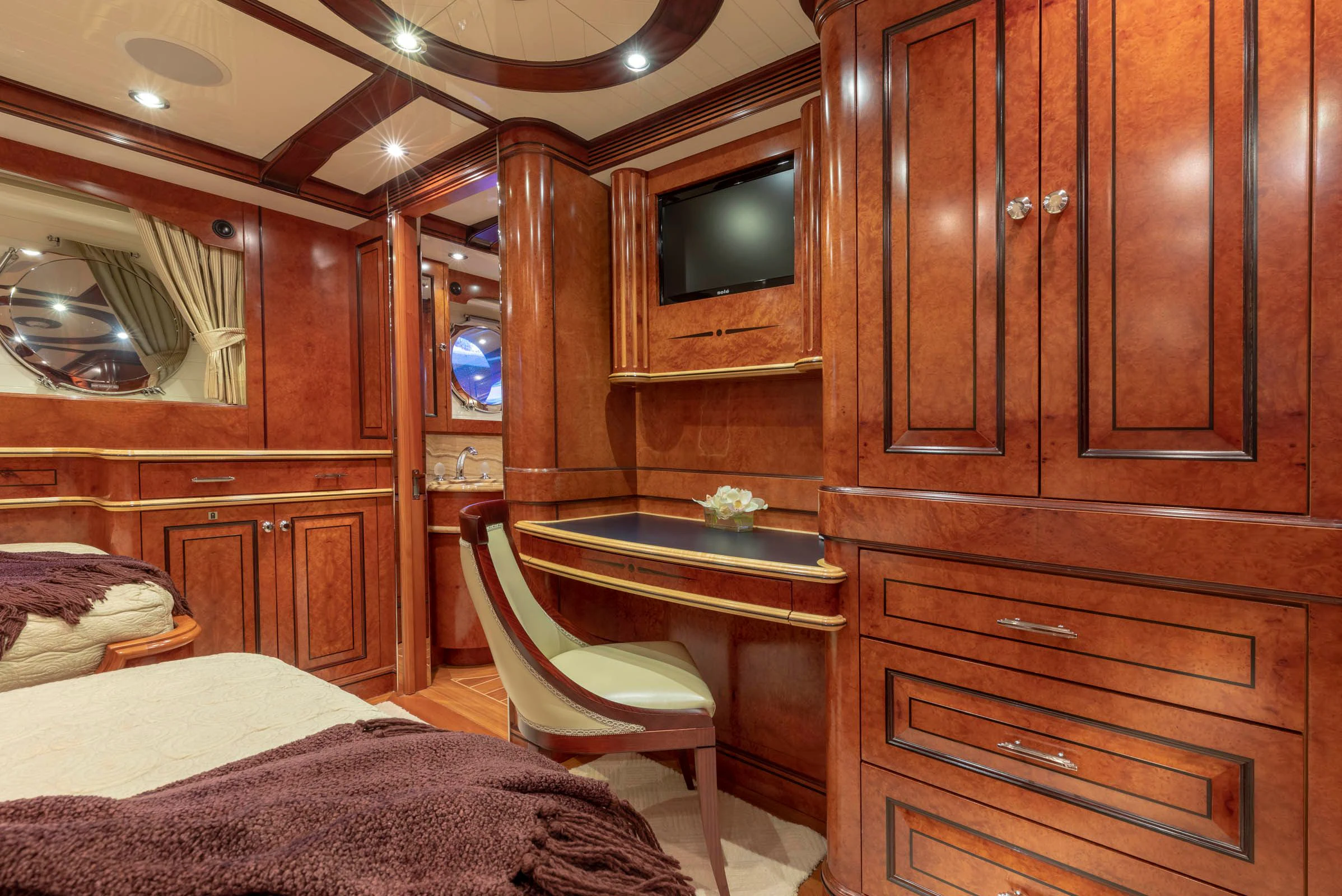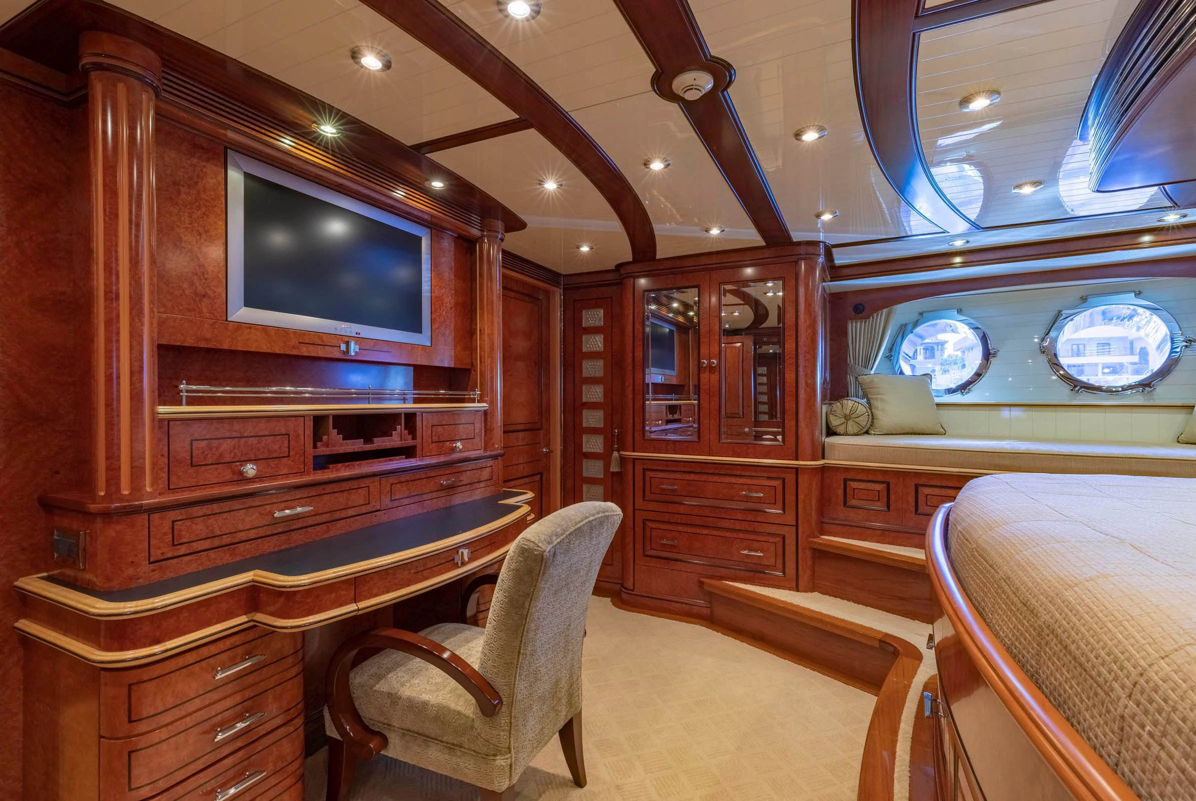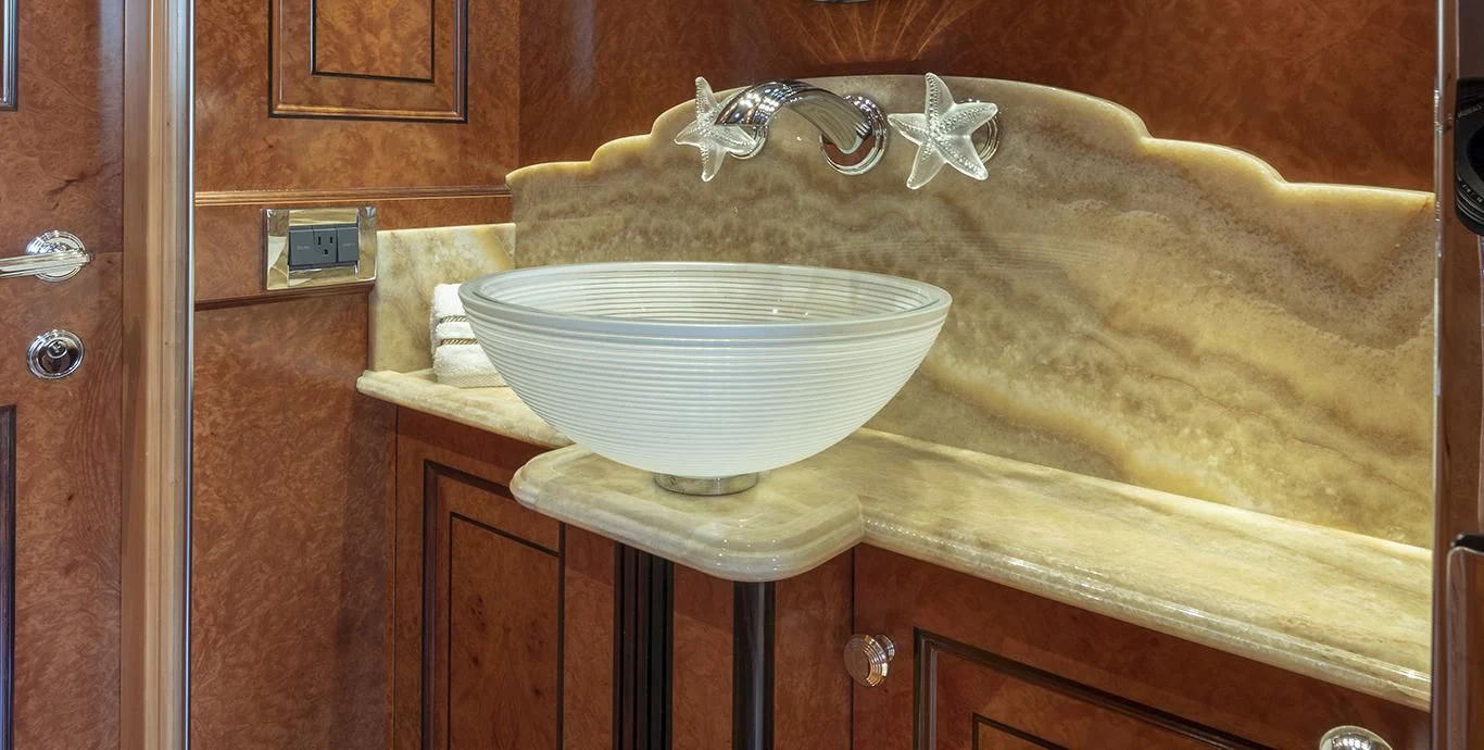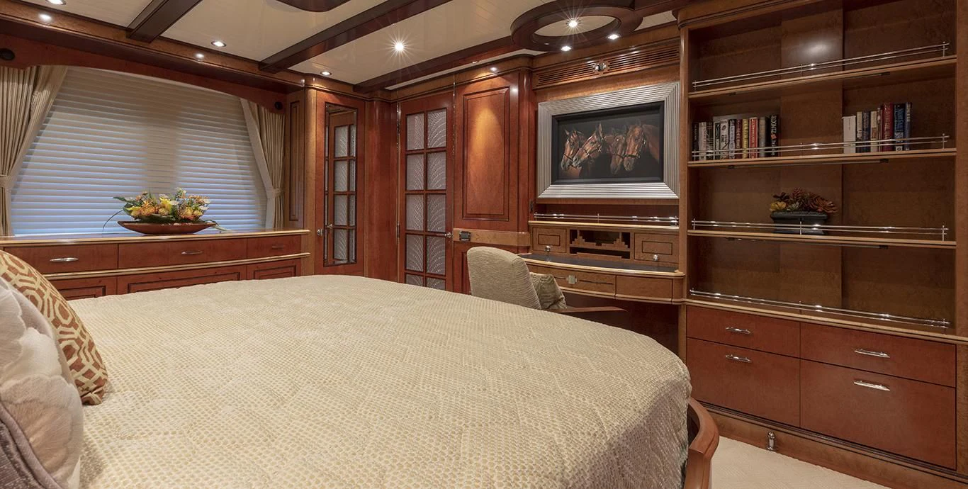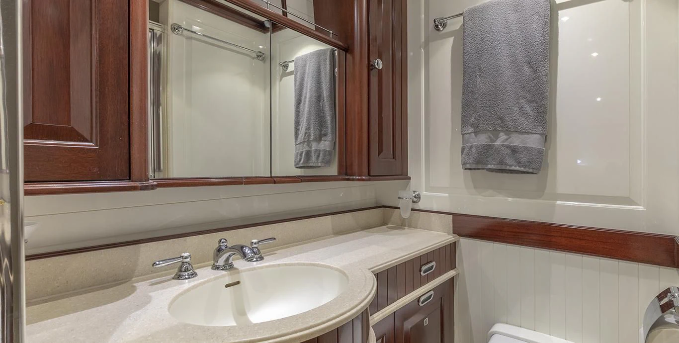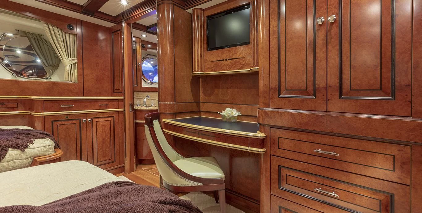 Step inside NADAN and you're welcomed by an interior that exudes refined sophistication. The custom model design integrates style and practicality seamlessly across four cabins that can comfortably accommodate nine guests and seven crew members. Each cabin showcases unique design elements that amplify comfort while retaining an air of understated elegance.