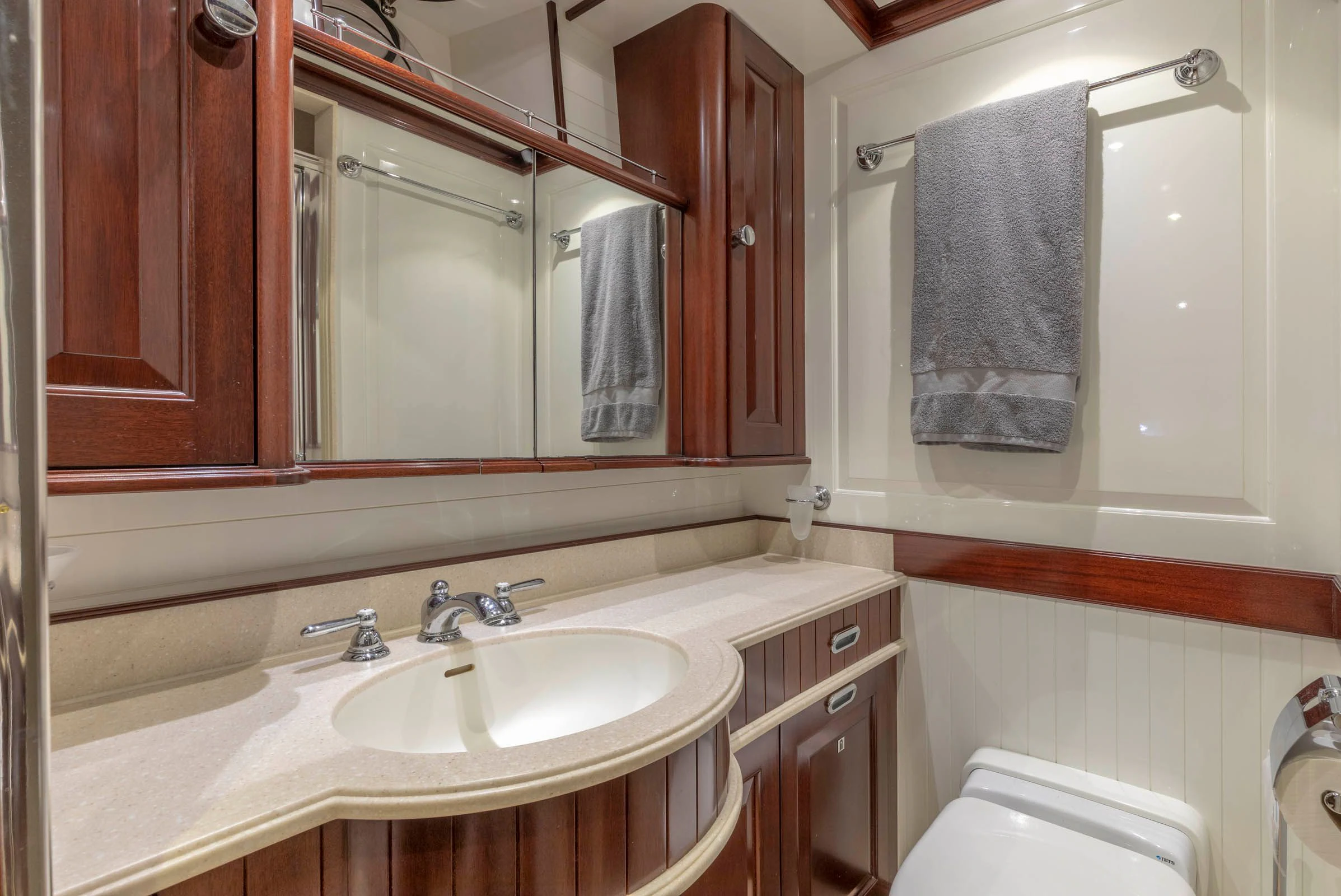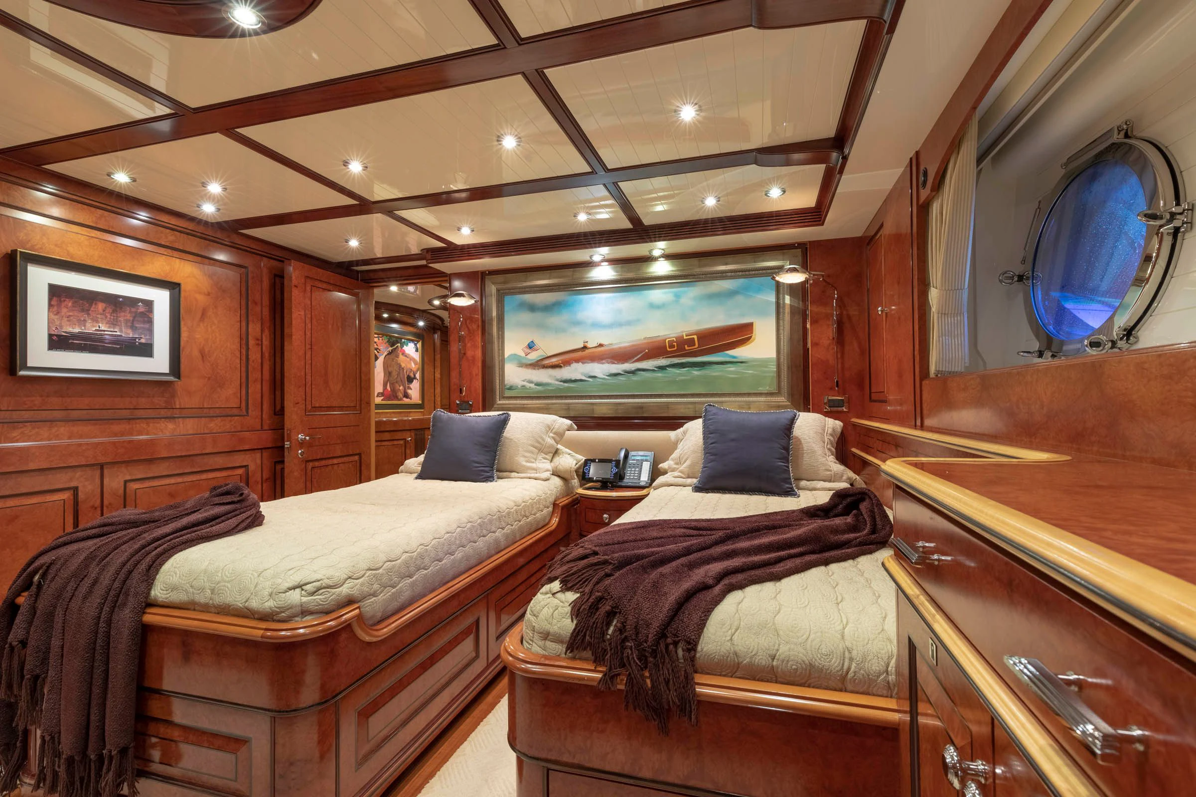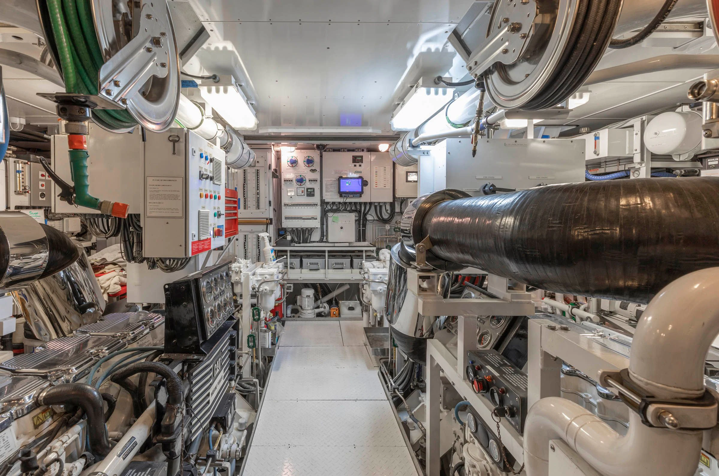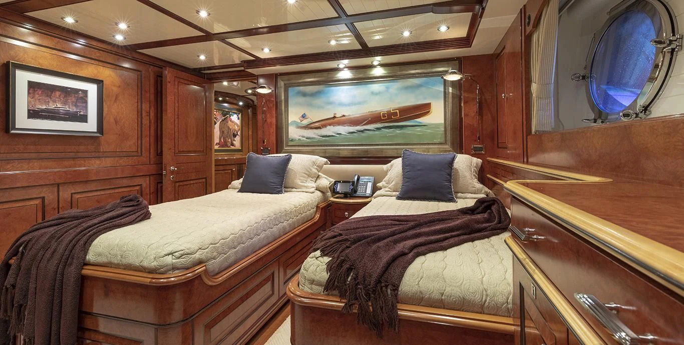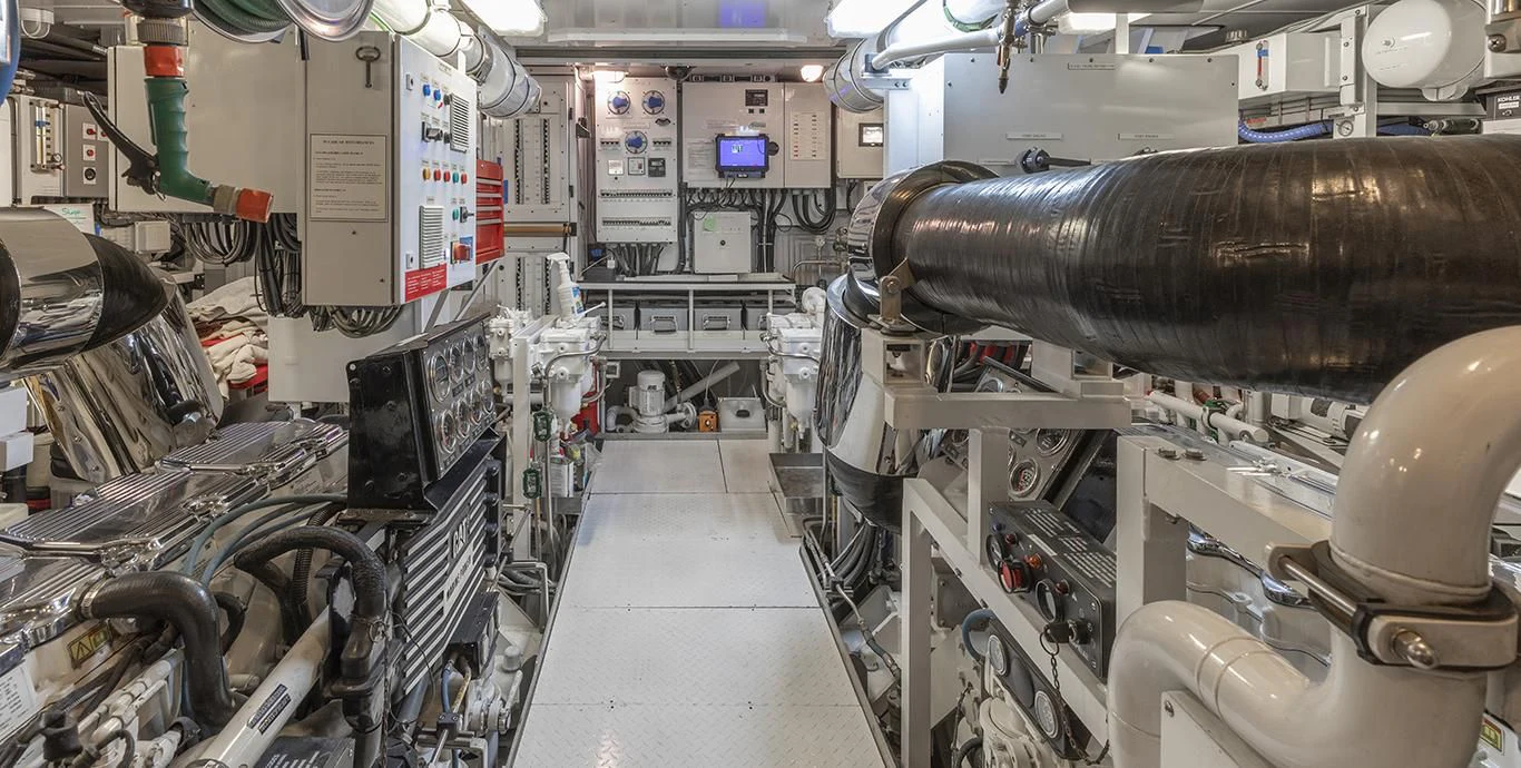 NADAN's engine room houses two Caterpillar C18 engines each delivering power output of 601 hp / 448 kW; ensuring reliable performance during voyages long or short. This yacht also boasts Jastram hydraulic power steering system offering precise navigation control at all times.