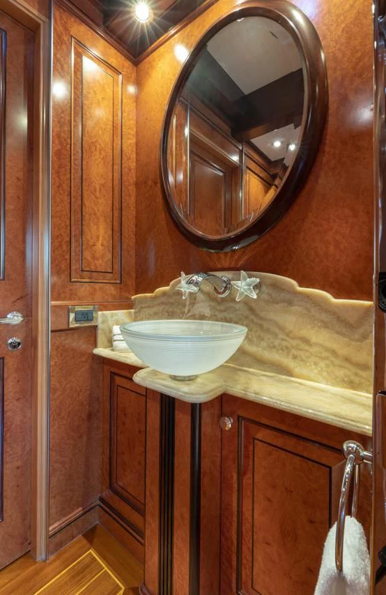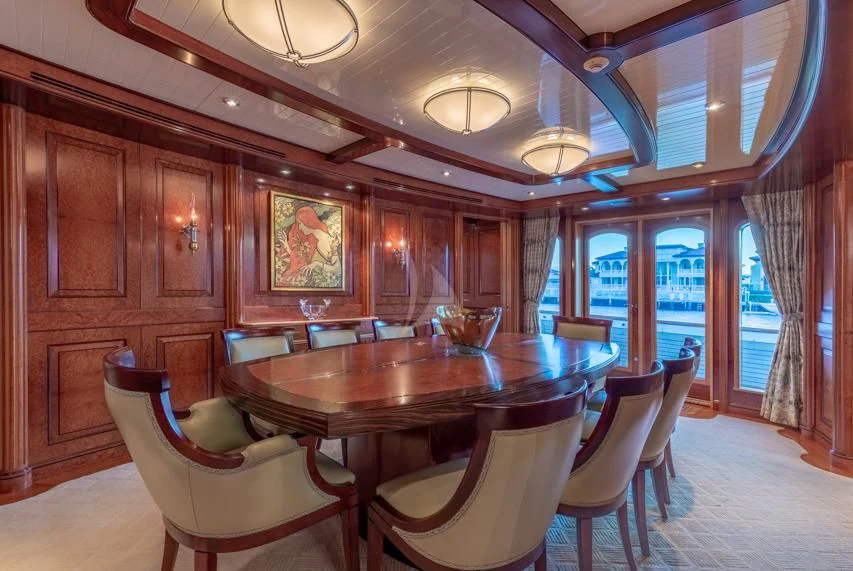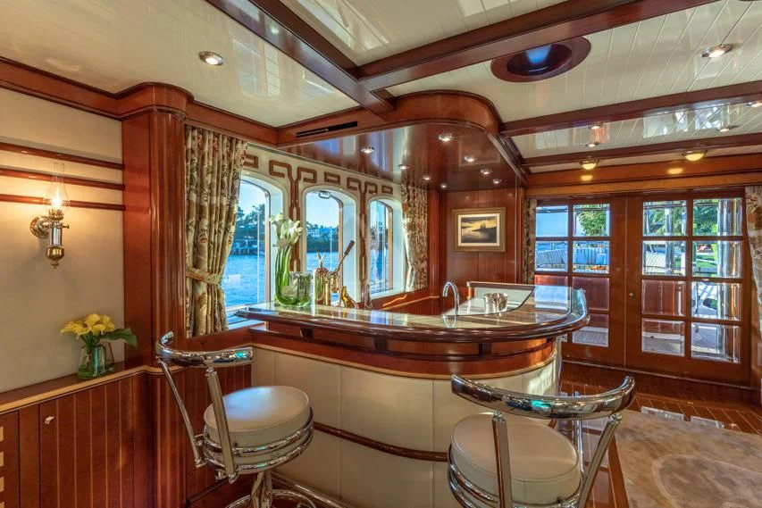 Introducing the epitome of luxury and craftsmanship, NADAN. Built by the renowned Burger Boat Company in 2009 and refurbished to perfection in 2019, this motor yacht is a testament to the art of naval architecture. With a length overall (LOA) of 151 feet or 46.1 meters, NADAN is an impressive sight on the water. Her displacement hull made from robust aluminum ensures smooth cruising at speeds up to 14 knots. The elegance of her exterior design is matched only by her remarkable functionality.