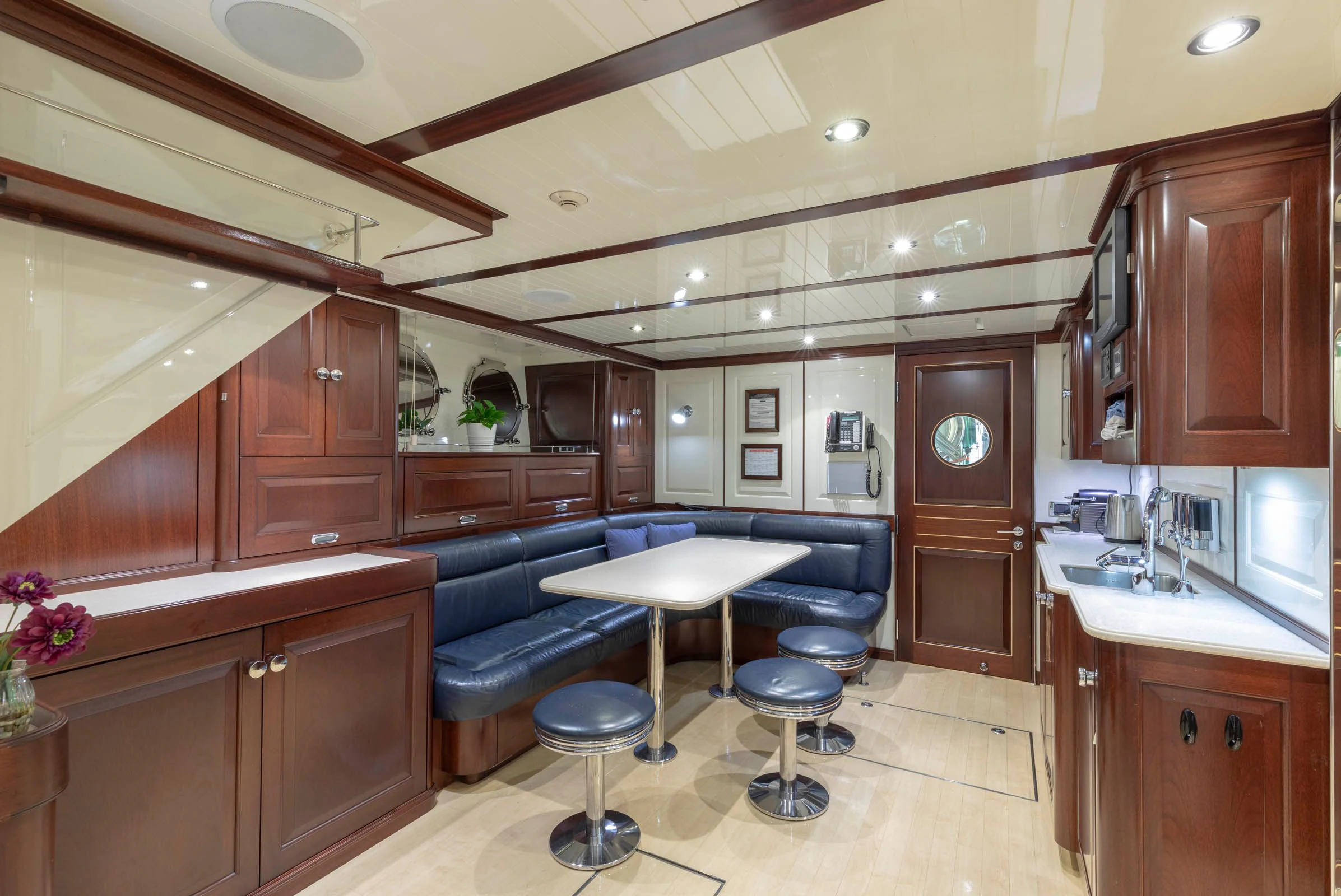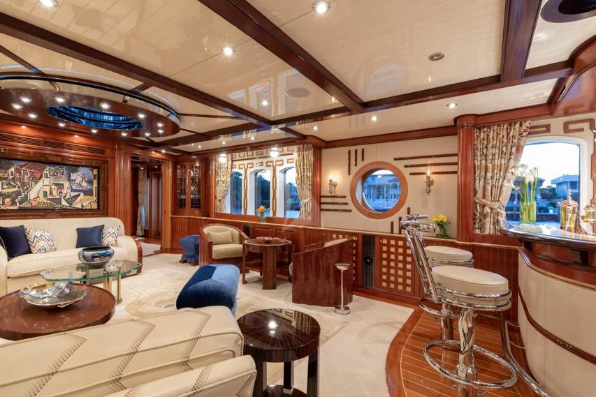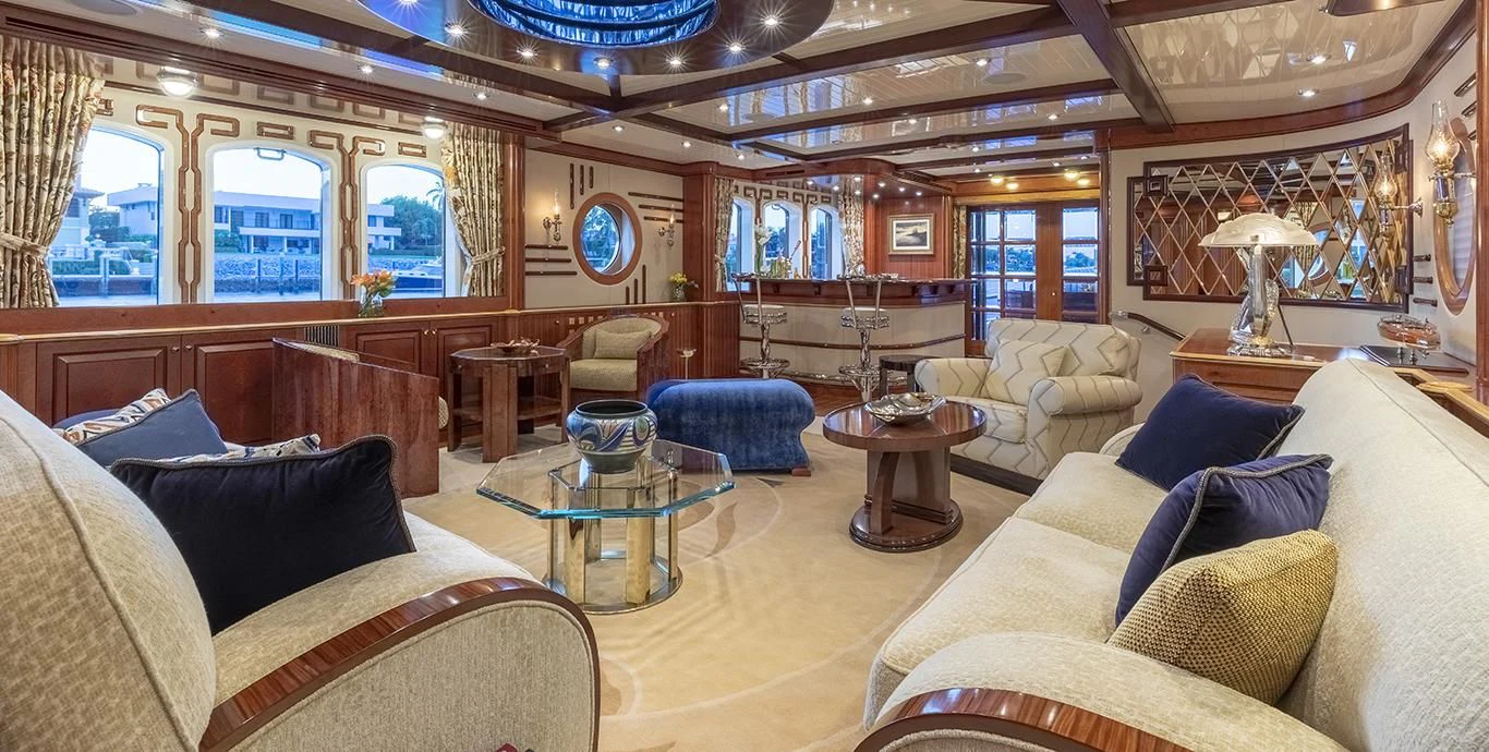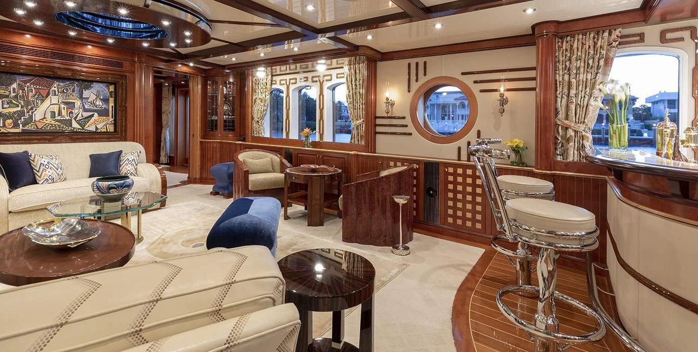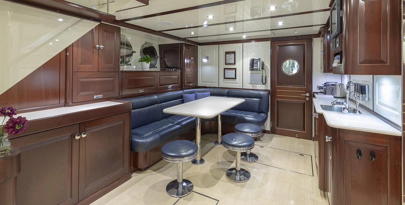 The main salon serves as a vibrant hub for entertainment and leisure, featuring state-of-the-art amenities including Wi-Fi connectivity for those who wish to stay connected even while at sea. For wellness enthusiasts, there's no better place than the onboard gym equipped with top-tier fitness equipment - perfect for maintaining workout routines amidst your seafaring adventures.