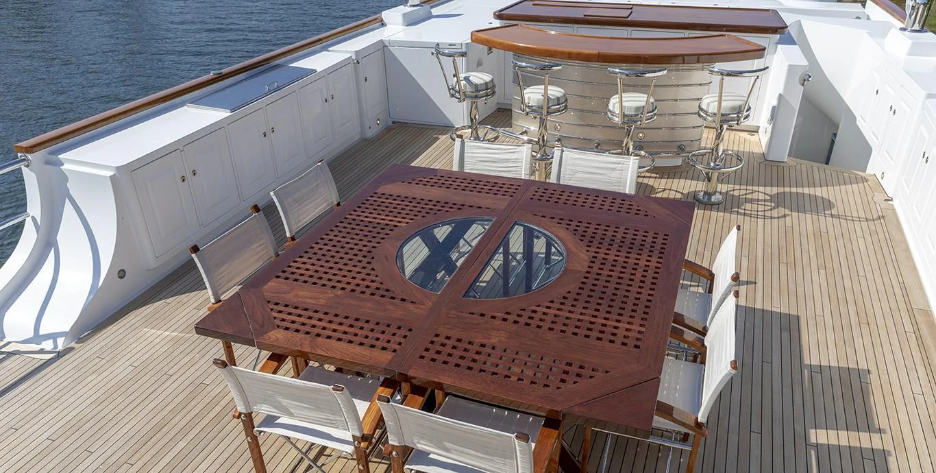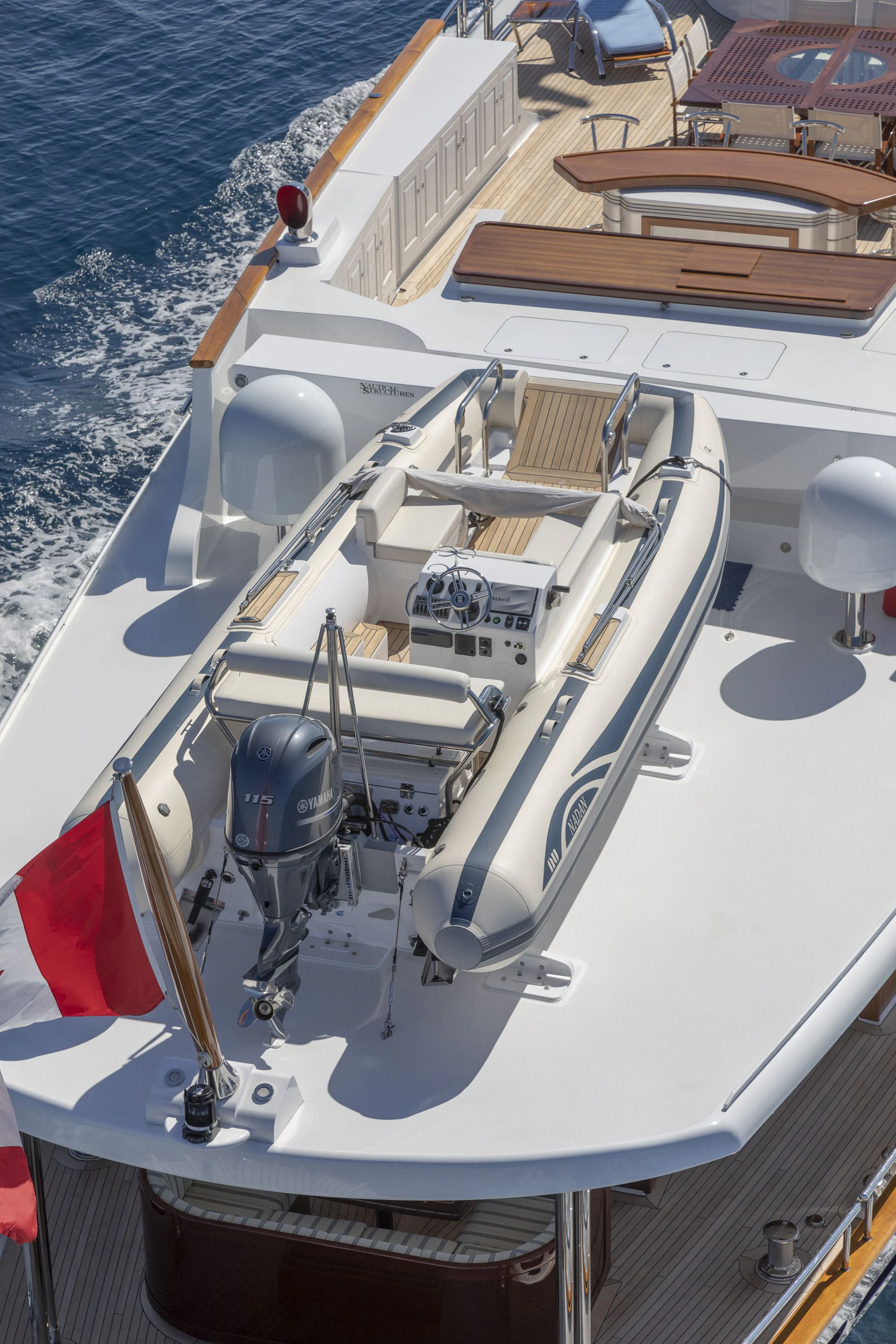 For those seeking aquatic fun beyond lounging on deck or swimming in open waters, NADAN comes equipped with passarelle allowing easy access into water from yacht’s rear platform – making it ideal platform for various water sports activities!