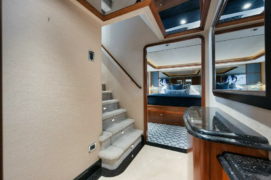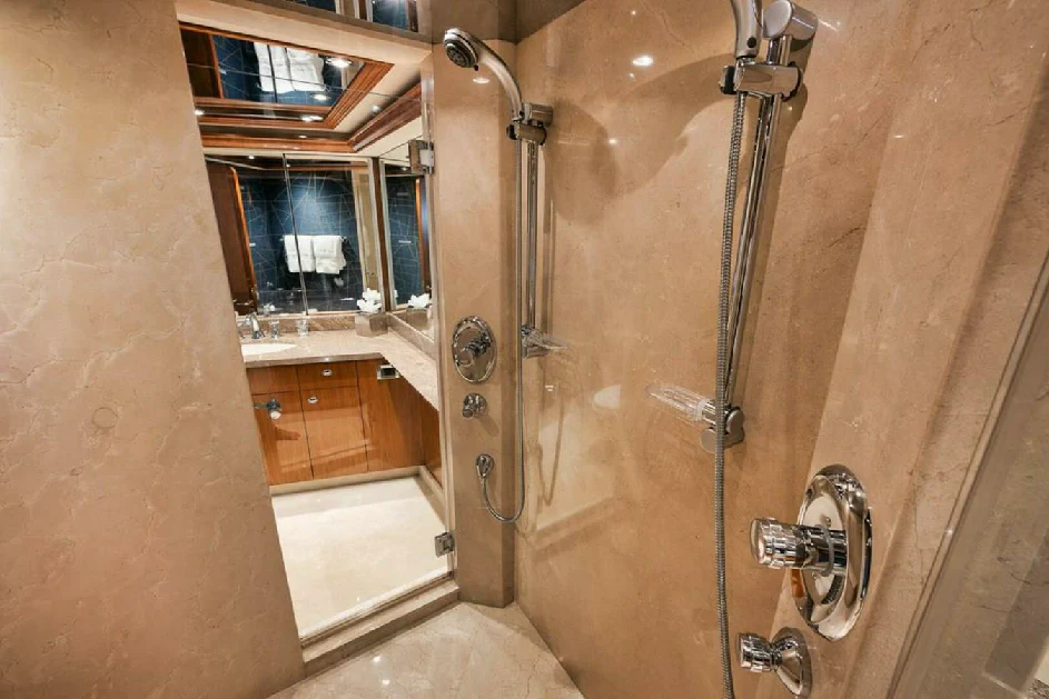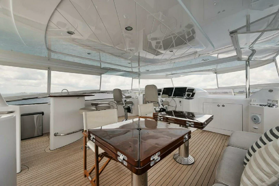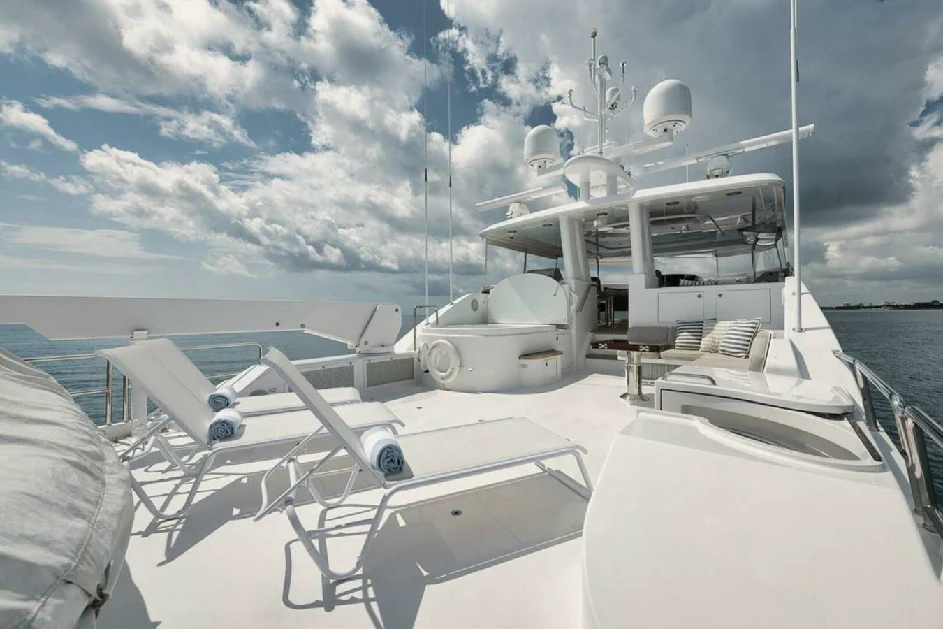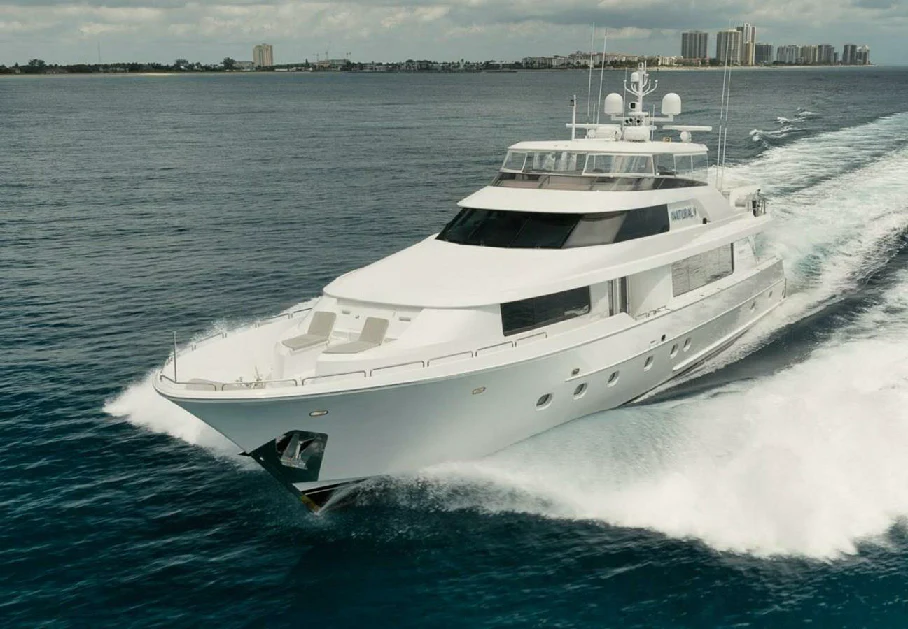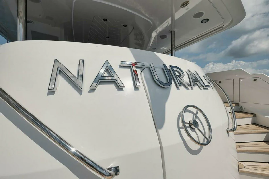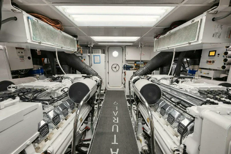 Onboard NATURAL 9, every journey becomes a celebration of life's finest pleasures. From its Wi-Fi enabled spaces perfect for staying connected or streaming your favorite movie, this yacht ensures your every need is catered for during your voyage across the seas. Powered by twin MTU engines delivering an impressive output of nearly 2000 hp each, she guarantees smooth sailing while ensuring optimal fuel efficiency from her sizable capacity tank holding up to 5500 gallons.