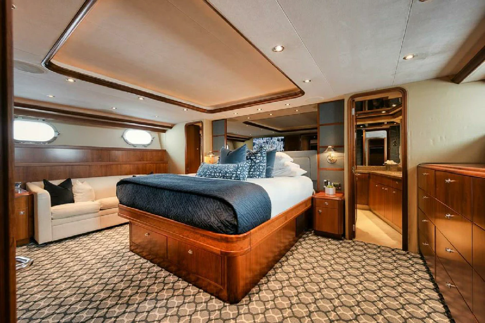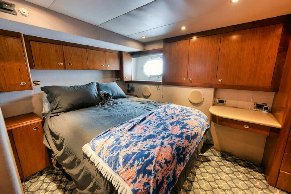 Step inside NATURAL 9, and you will be greeted by an interior that exudes sophistication and comfort. Every detail has been meticulously curated to offer a luxurious retreat on the sea. Four exquisite cabins accommodate up to eight guests, offering privacy and tranquility after a day filled with adventure. Each stateroom stands out for its unique charm, with the master suite offering unrivaled opulence complete with lavish furnishings and state-of-the-art amenities.